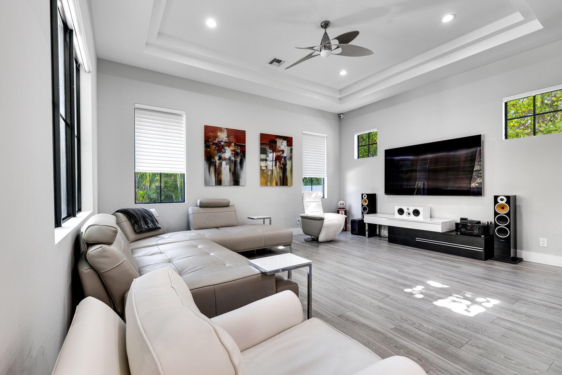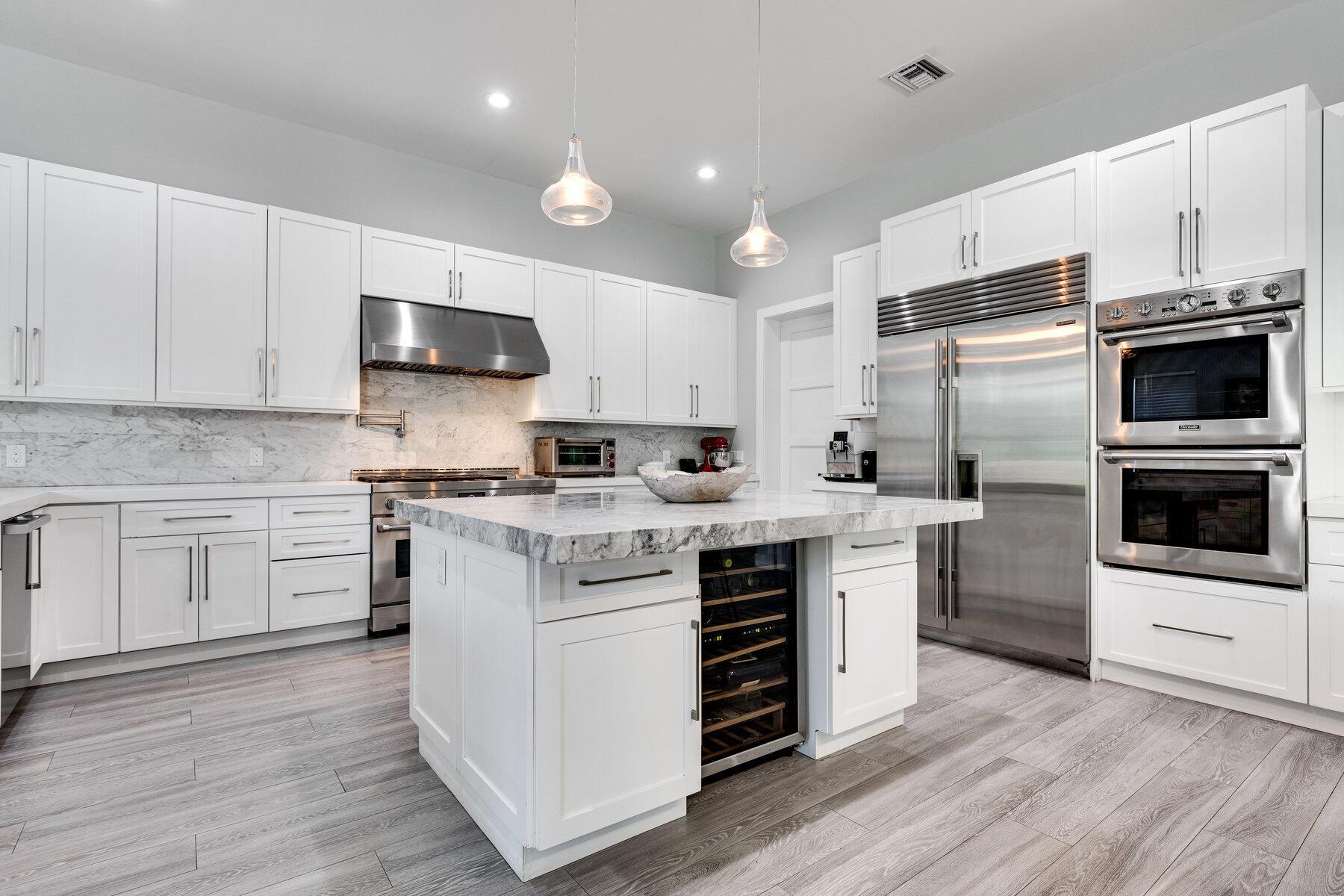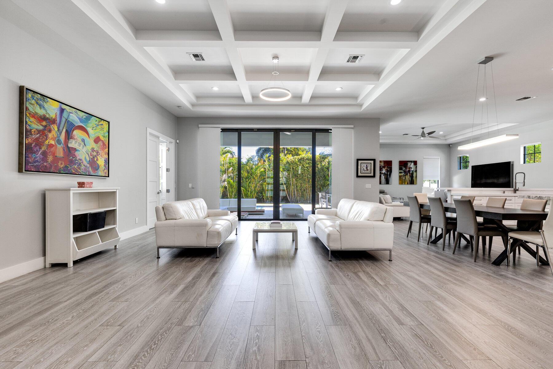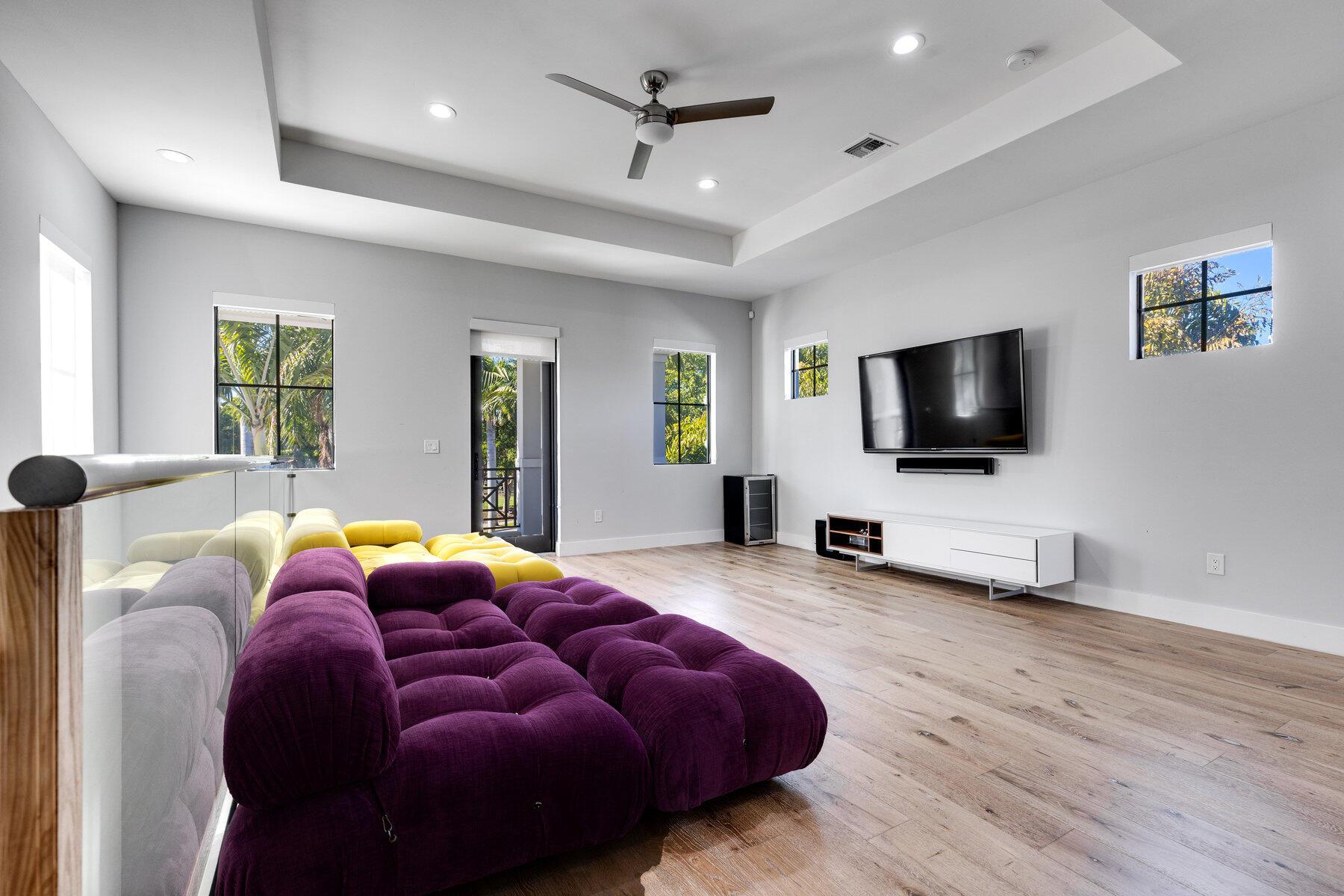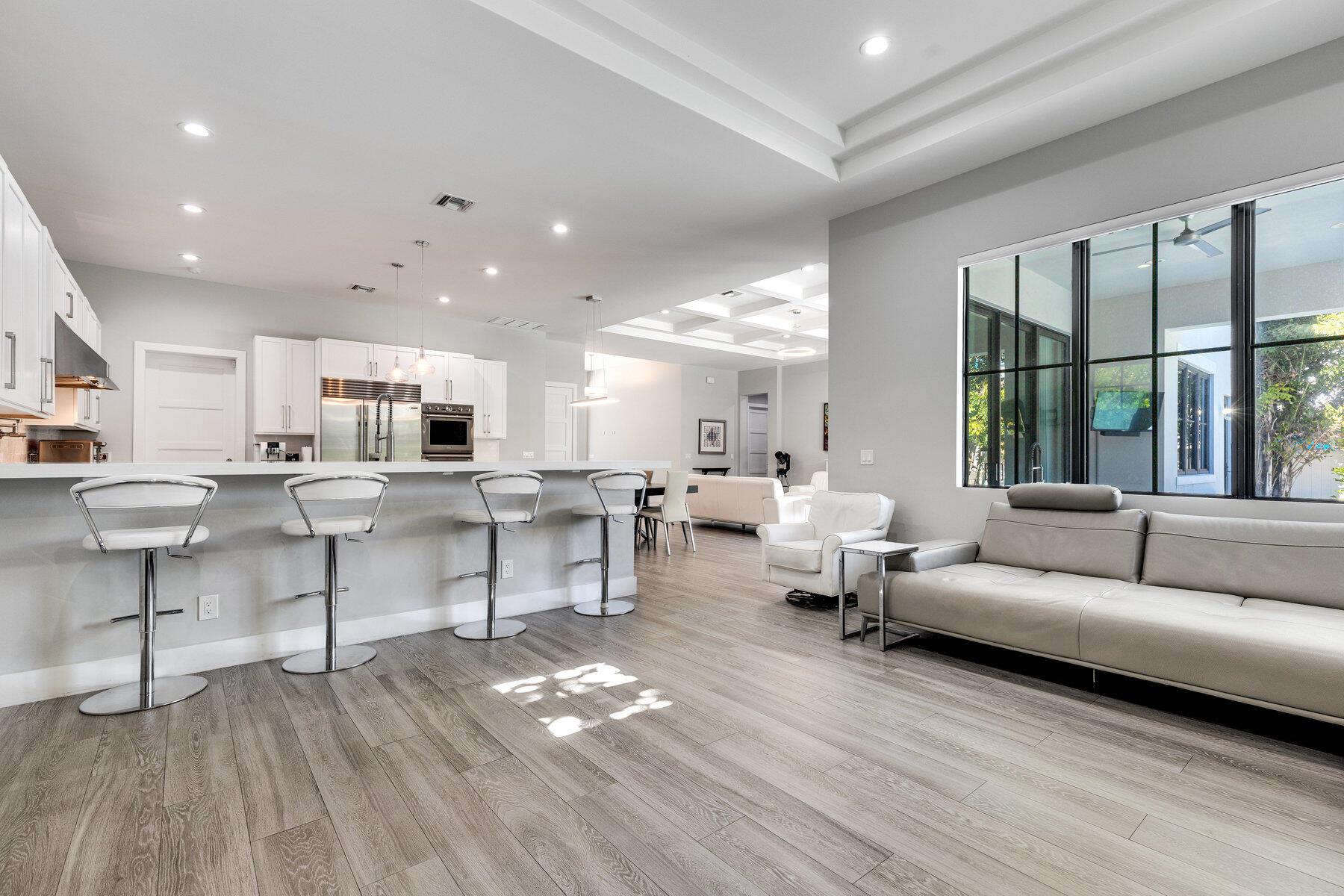 550 NE Mizner Boulevard is the closest home to Mizner Park and the Mizner Park Amphitheater, offering unmatched access to Boca’s premier shopping, dining, and entertainment. Nestled in the coveted Boca Villas neighborhood within the prestigious Golden Triangle, this stunning 6-bedroom, 5-bathroom residence offers unparalleled luxury and convenience. Built in 2017, this light-filled home boasts an expansive layout, featuring both upstairs and downstairs primary suites–an exceptional rarity that ensures ultimate flexibility and comfort.The main floor showcases matte porcelain flooring, while engineered wood flooring lends warmth to the second floor. The open-concept design is highlighted by 10-foot glass sliding doors, seamlessly connecting the indoor and outdoor living spaces. The