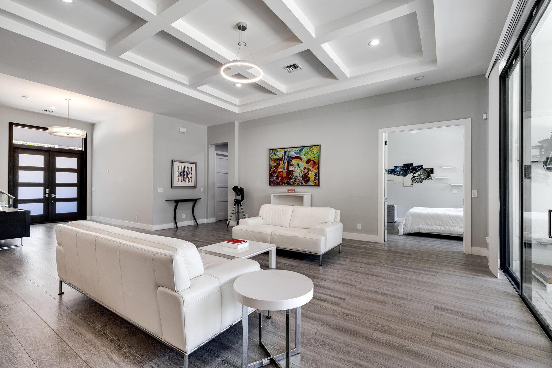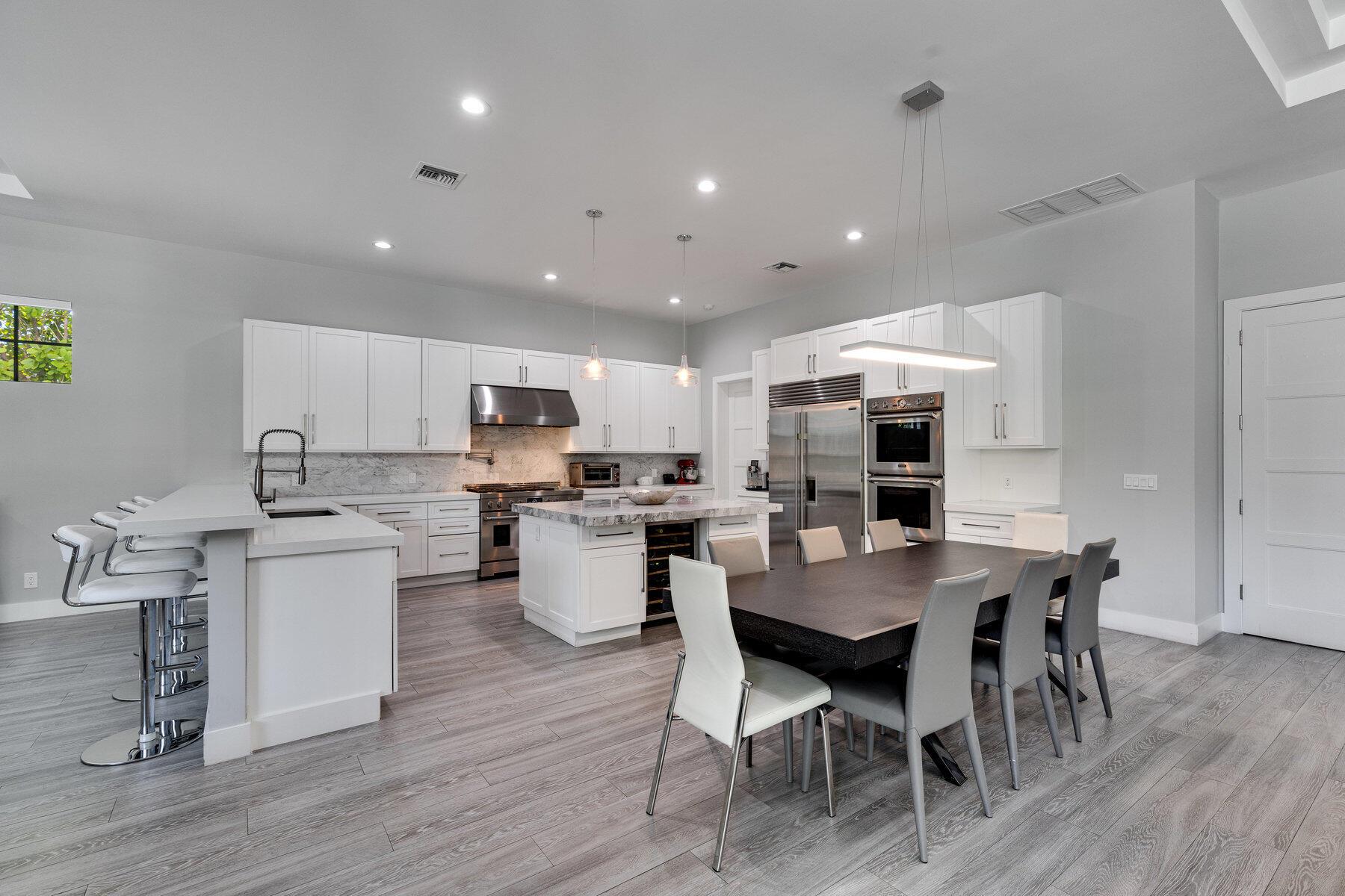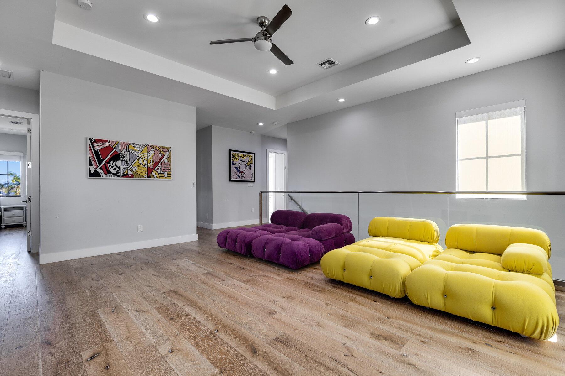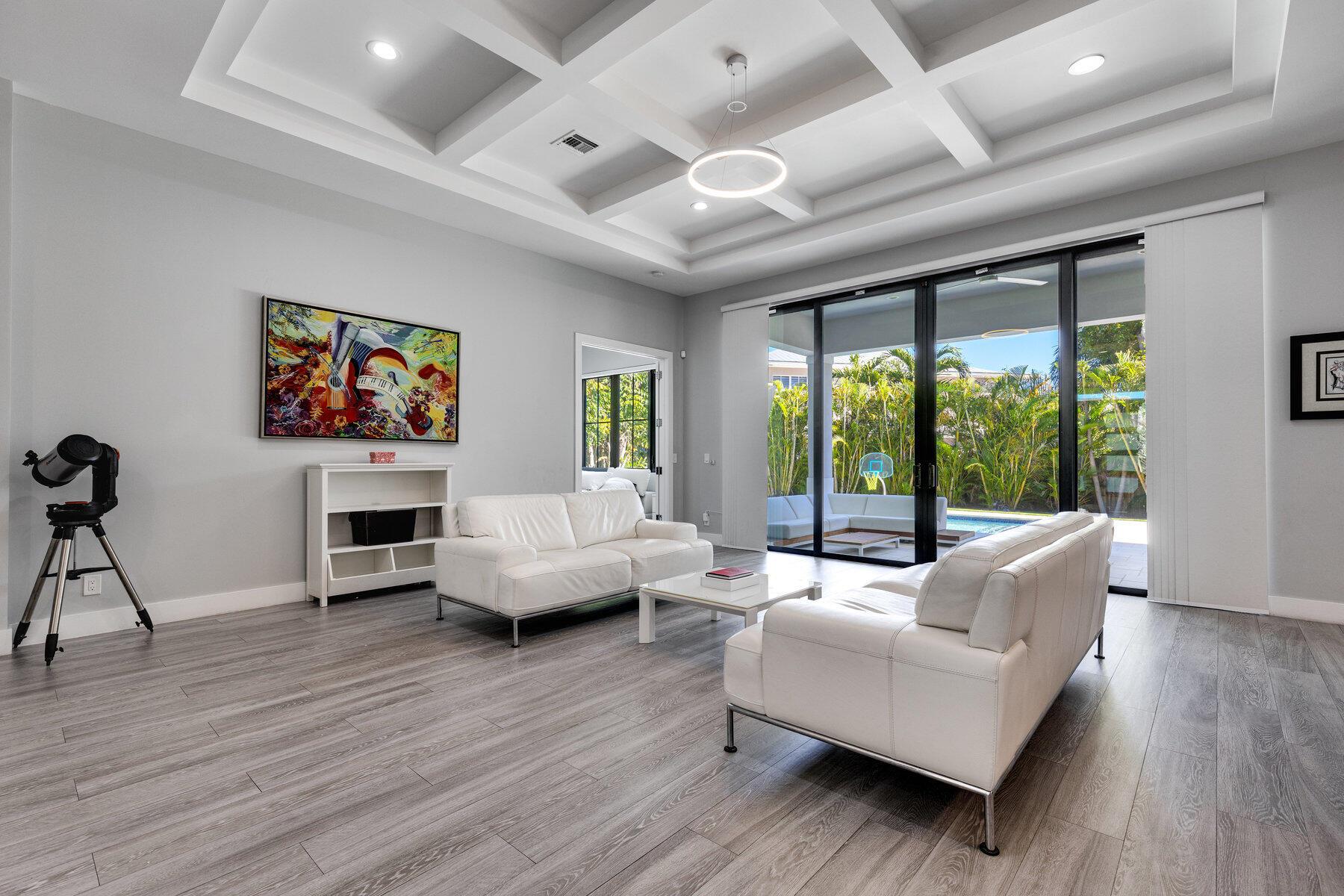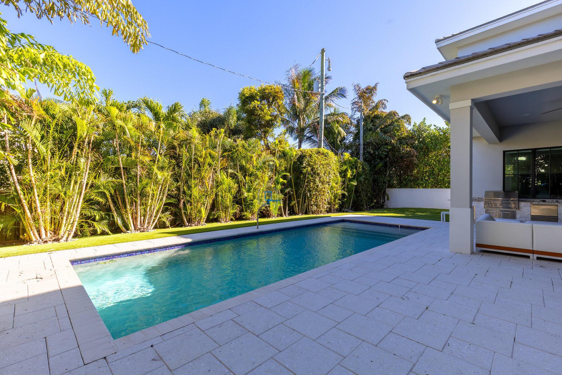 550 NE Mizner Boulevard is the closest home to Mizner Park and the Mizner Park Amphitheater, offering unmatched access to Boca’s premier shopping, dining, and entertainment. Nestled in the coveted Boca Villas neighborhood within the prestigious Golden Triangle, this stunning 6-bedroom, 5-bathroom residence offers unparalleled luxury and convenience. Built in 2017, this light-filled home boasts an expansive layout, featuring both upstairs and downstairs primary suites–an exceptional rarity that ensures ultimate flexibility and comfort.The main floor showcases matte porcelain flooring, while engineered wood flooring lends warmth to the second floor. The open-concept design is highlighted by 10-foot glass sliding doors, seamlessly connecting the indoor and outdoor living spaces. The