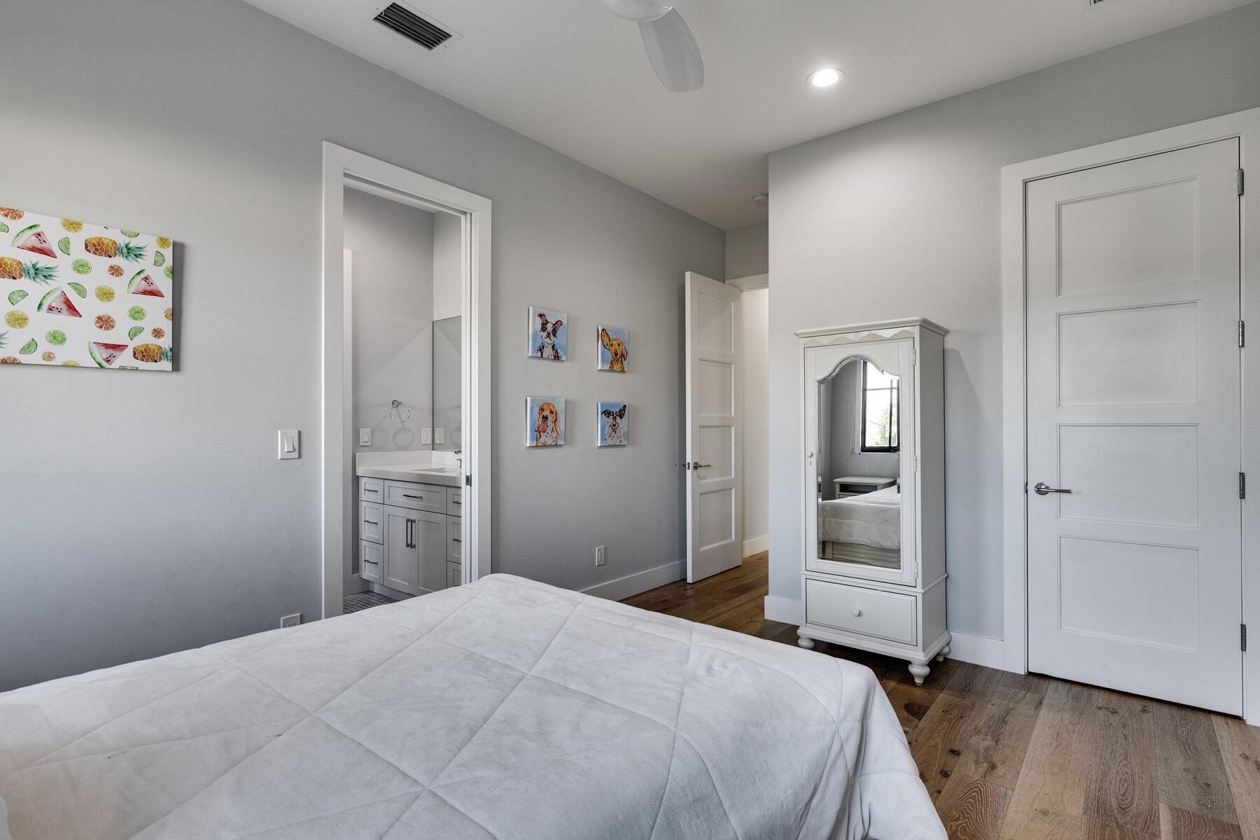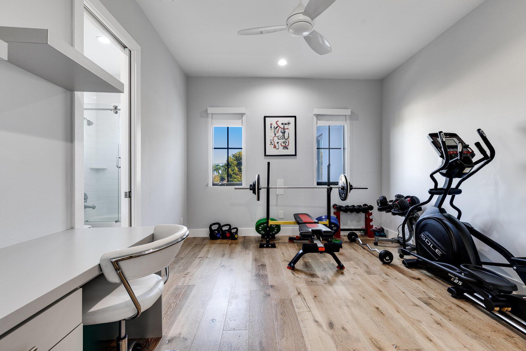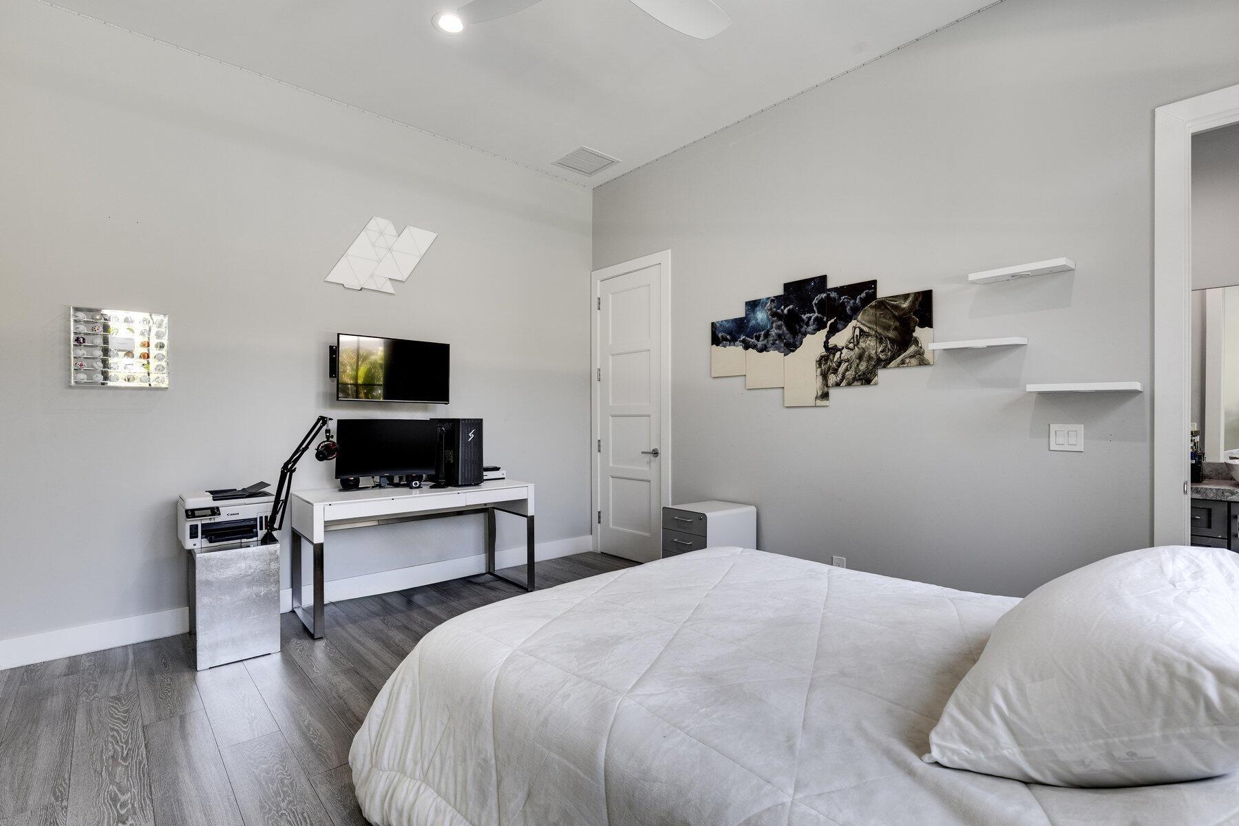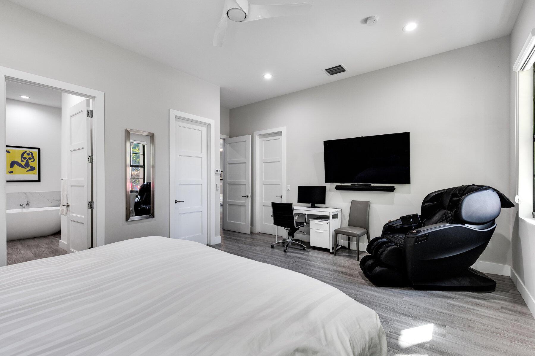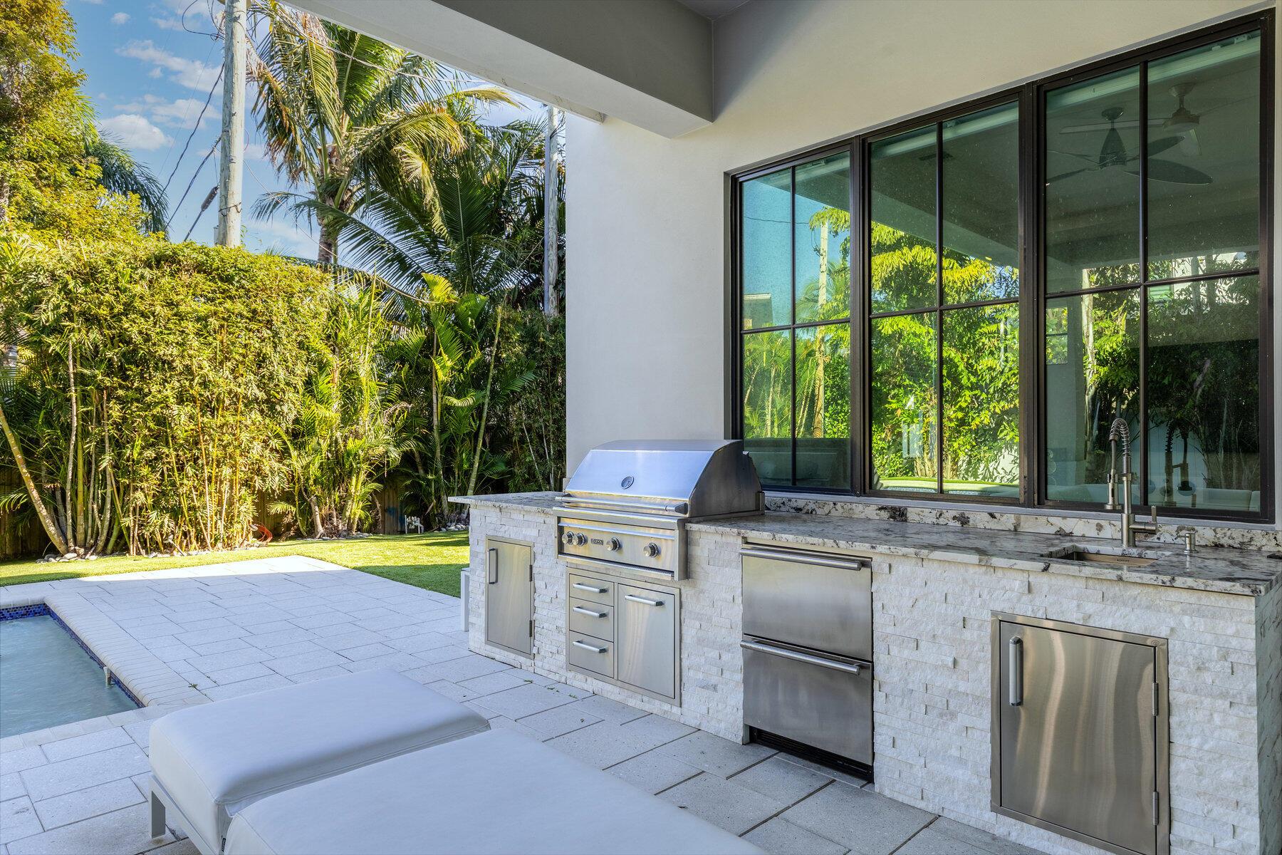 550 NE Mizner Boulevard is the closest home to Mizner Park and the Mizner Park Amphitheater, offering unmatched access to Boca’s premier shopping, dining, and entertainment. Nestled in the coveted Boca Villas neighborhood within the prestigious Golden Triangle, this stunning 6-bedroom, 5-bathroom residence offers unparalleled luxury and convenience. Built in 2017, this light-filled home boasts an expansive layout, featuring both upstairs and downstairs primary suites–an exceptional rarity that ensures ultimate flexibility and comfort.The main floor showcases matte porcelain flooring, while engineered wood flooring lends warmth to the second floor. The open-concept design is highlighted by 10-foot glass sliding doors, seamlessly connecting the indoor and outdoor living spaces. The