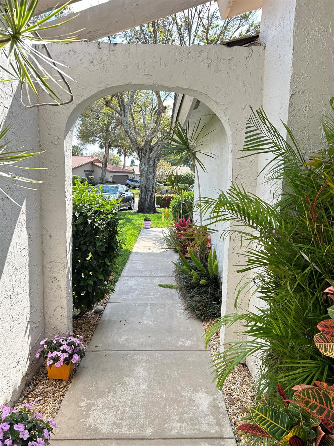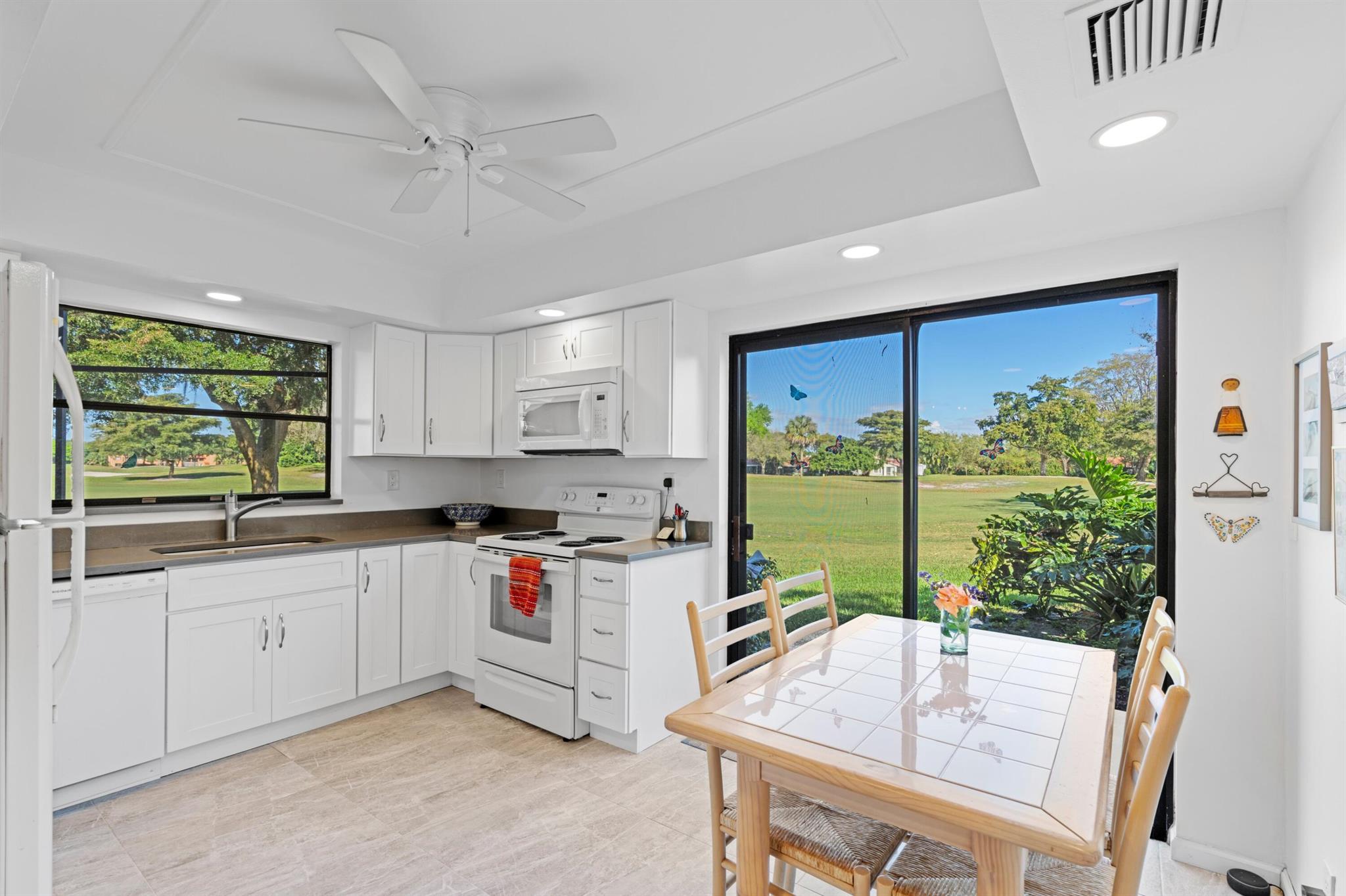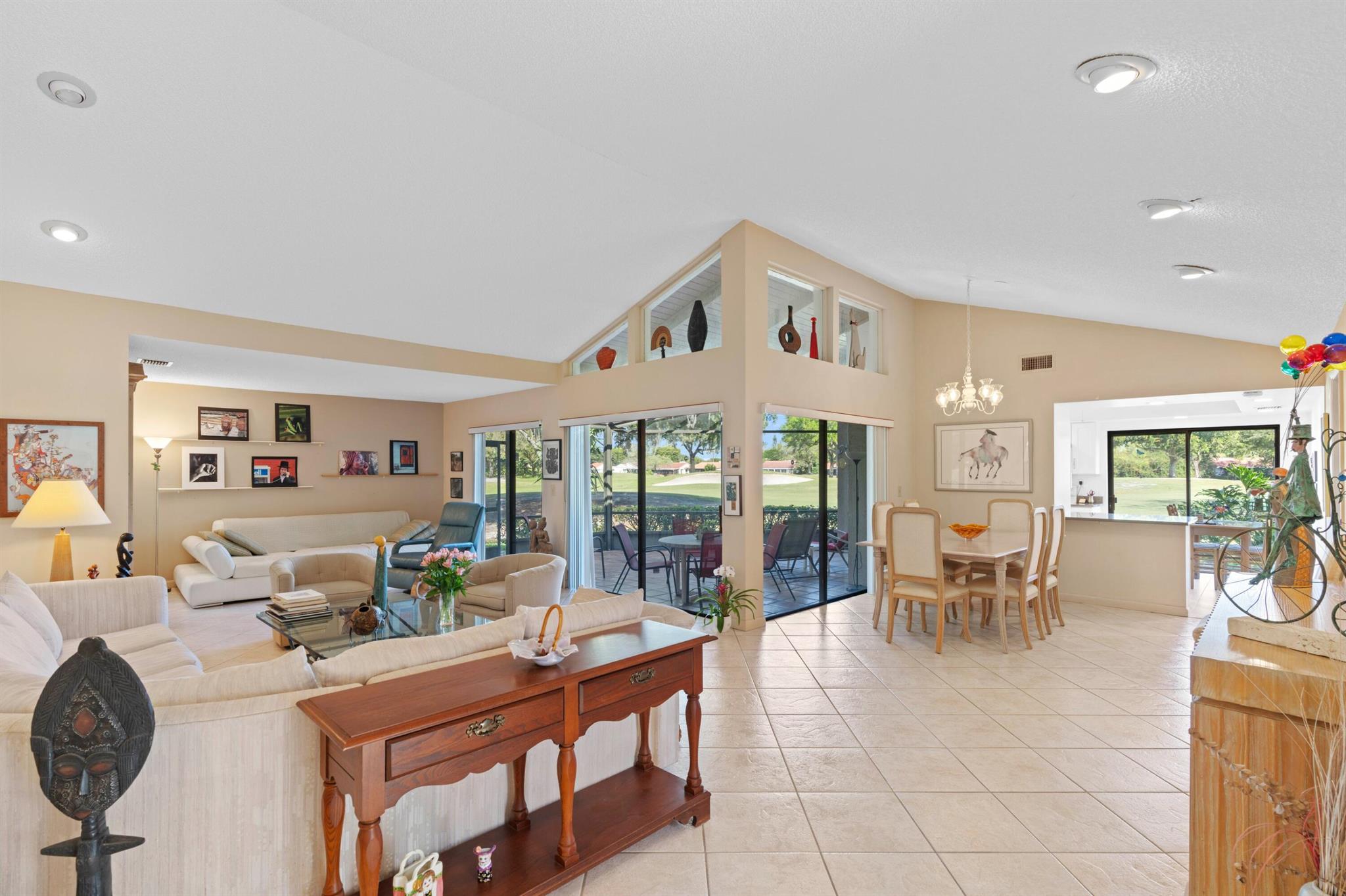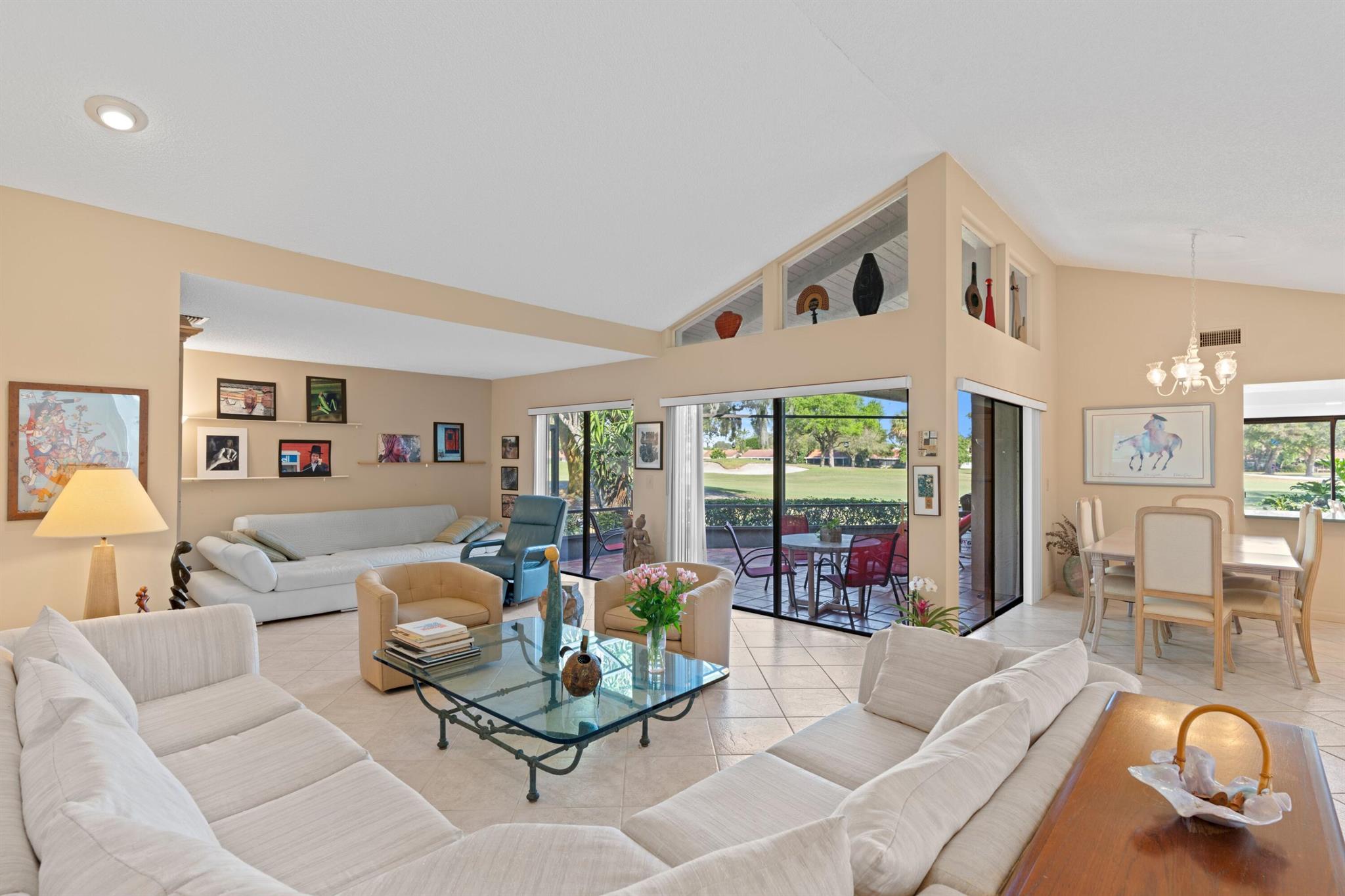TRULY LOVELY AND PRIVATE SINGLE-FAMILY HOME WITH SPECTACULAR WIDE-OPEN GOLF, LAKE AND GARDEN VIEWS, SHADY OAK TREES in the 55+ Community of Indian Springs-1649 SQUARE FEET. Beautiful NATURAL LIGHT throughout. OPEN CONCEPT, CATHEDRAL Ceiling Main Living/ plus Formal Dining area opens on to Spacious, Mexican-Tiled Florida room with Bucolic views.Spacious Master Suite; 2nd Bedroom Ensuite, Plus Powder room. Extremely Private Cul-De-Sac lot. Living area includes family room area which could be converted to 3rd bedroom.Newly Renovated, well-designed kitchen with QUARTZ countertops, white Shaker Cabinetry, lovely views, pass-through window to Large, Screened Private Patio-This home, with 2-car garage, is excellent value and DOES NOT REQUIRE INDIAN SPRING CLUB MEMBERSHIP. Con’t –