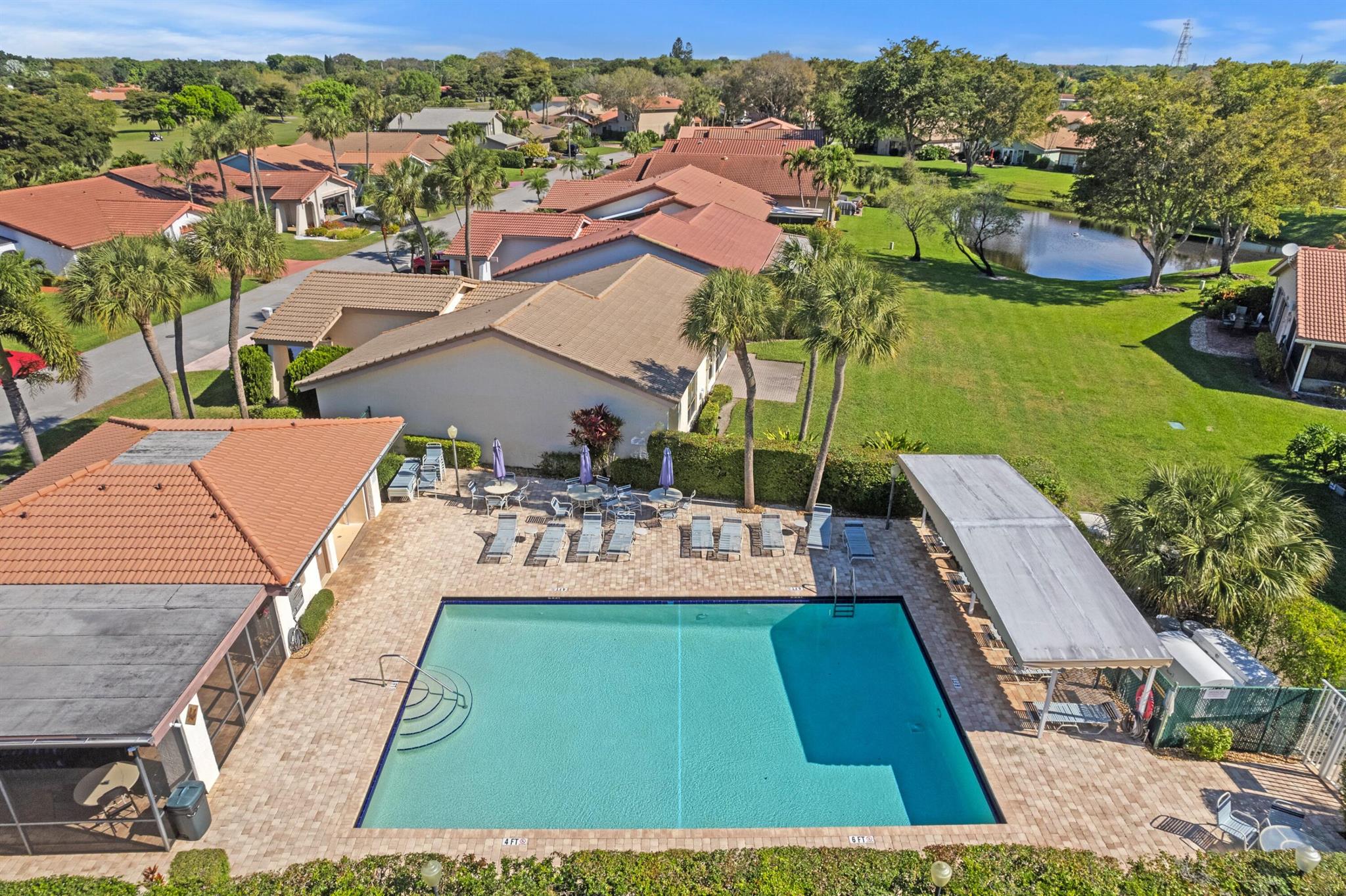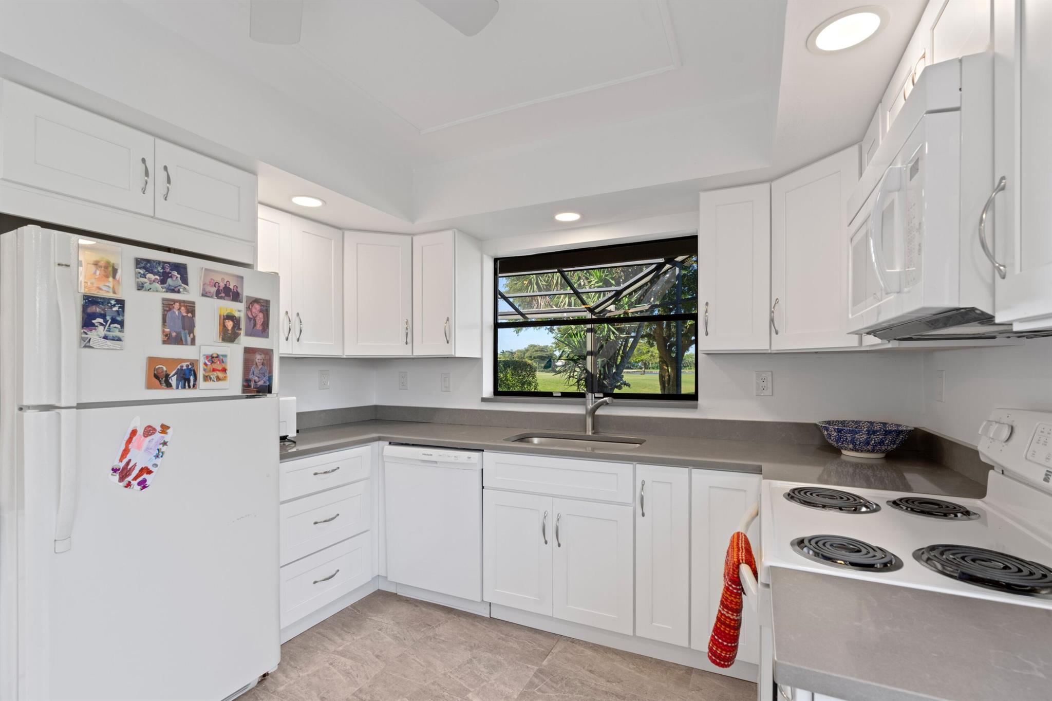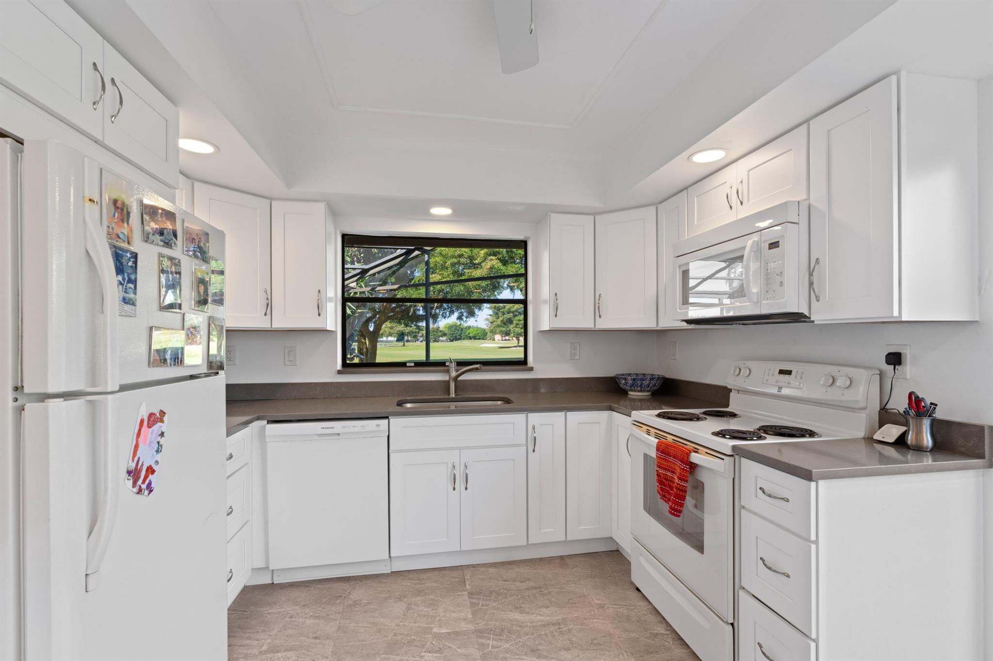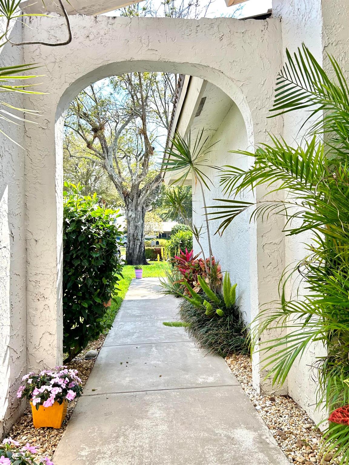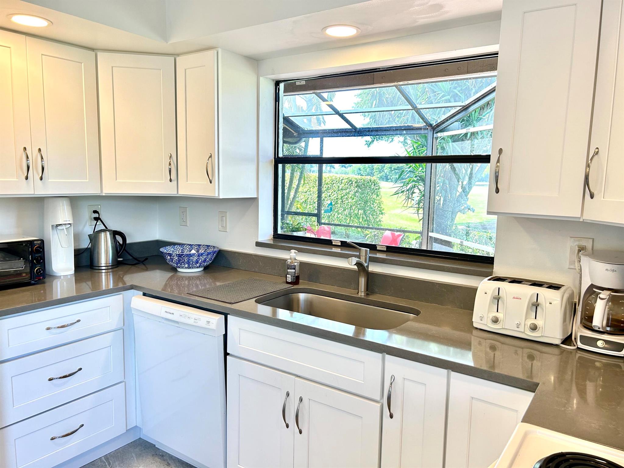 TRULY LOVELY AND PRIVATE SINGLE-FAMILY HOME WITH SPECTACULAR WIDE-OPEN GOLF, LAKE AND GARDEN VIEWS, SHADY OAK TREES in the 55+ Community of Indian Springs-1649 SQUARE FEET. Beautiful NATURAL LIGHT throughout. OPEN CONCEPT, CATHEDRAL Ceiling Main Living/ plus Formal Dining area opens on to Spacious, Mexican-Tiled Florida room with Bucolic views.Spacious Master Suite; 2nd Bedroom Ensuite, Plus Powder room. Extremely Private Cul-De-Sac lot. Living area includes family room area which could be converted to 3rd bedroom.Newly Renovated, well-designed kitchen with QUARTZ countertops, white Shaker Cabinetry, lovely views, pass-through window to Large, Screened Private Patio-This home, with 2-car garage, is excellent value and DOES NOT REQUIRE INDIAN SPRING CLUB MEMBERSHIP. Con’t –