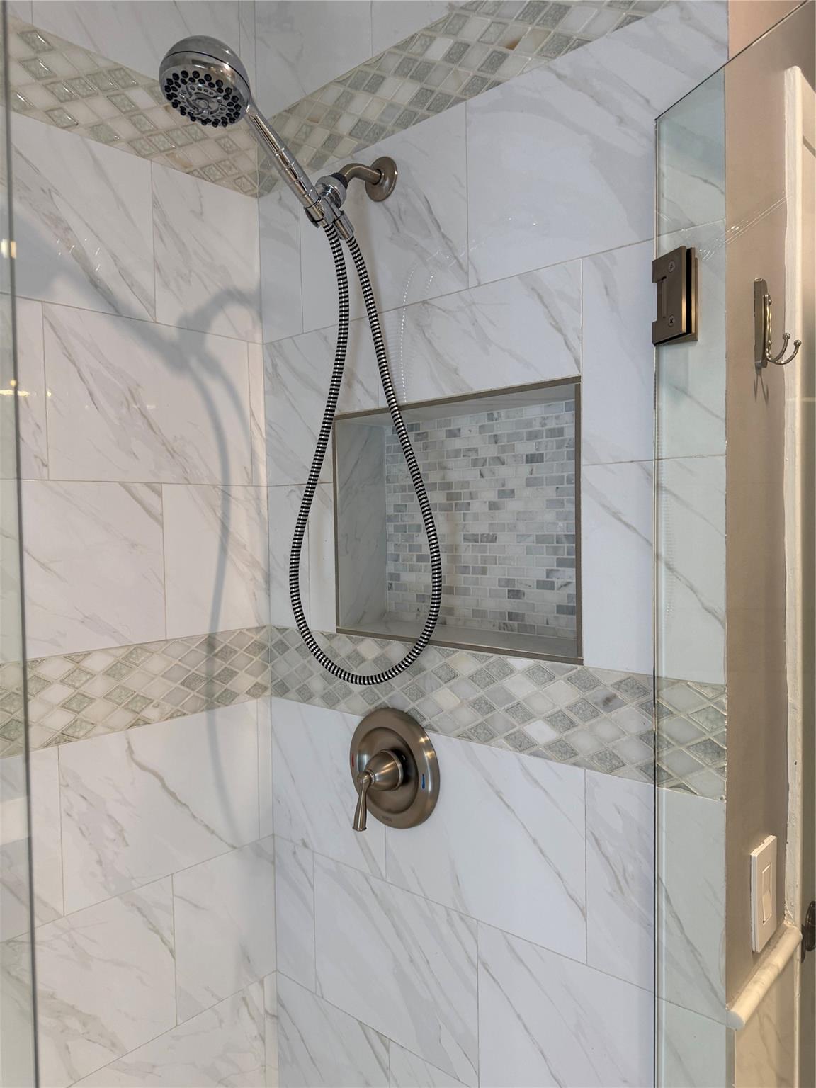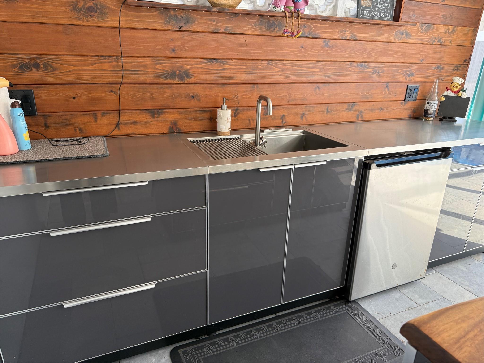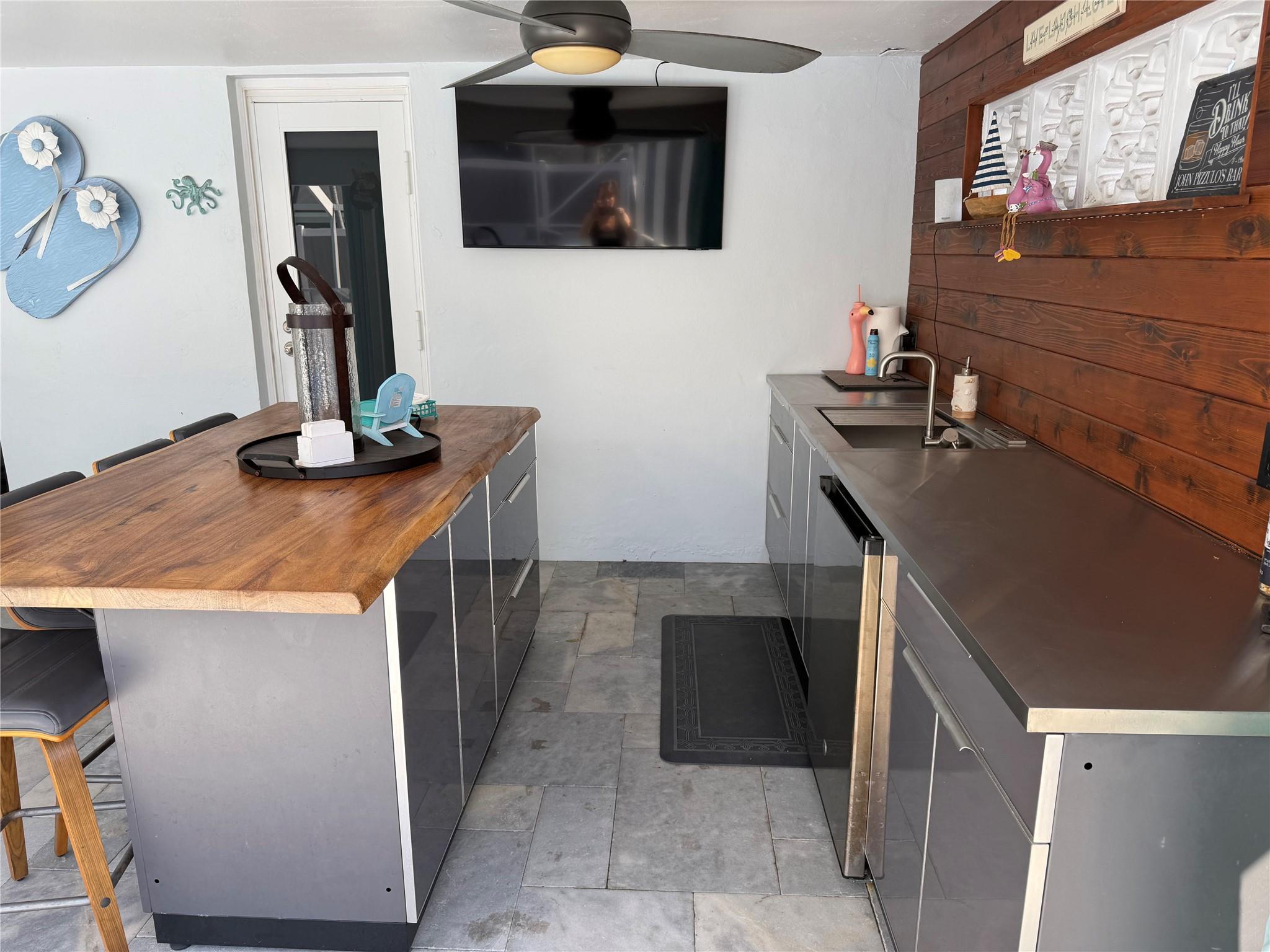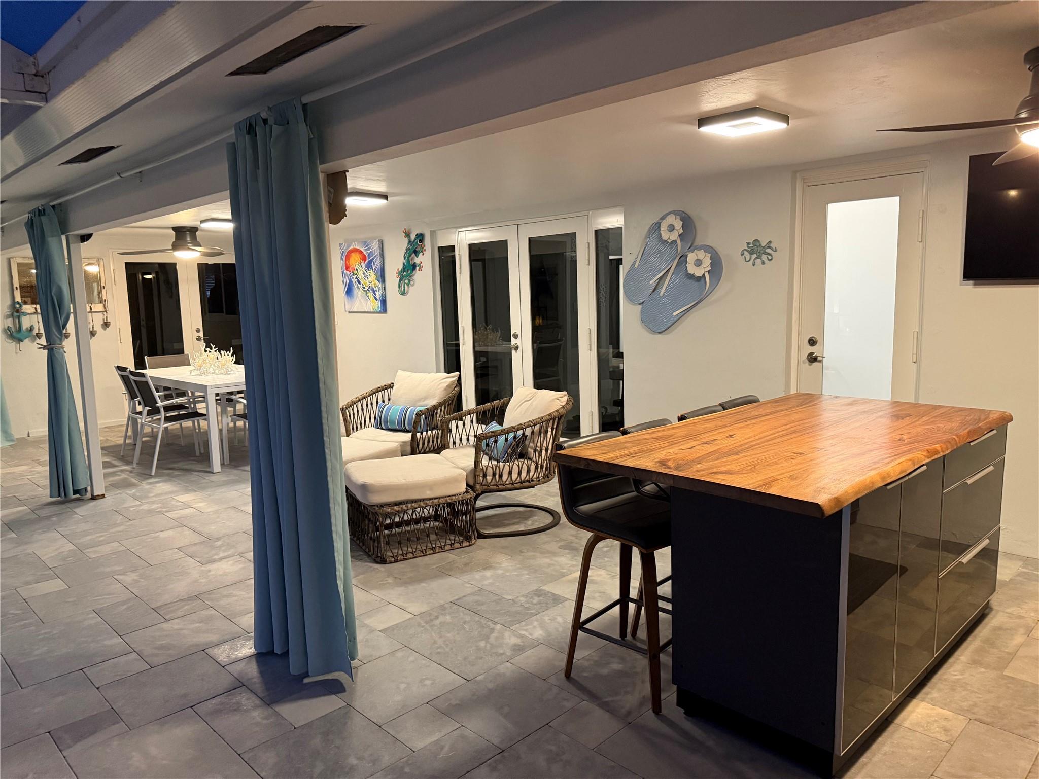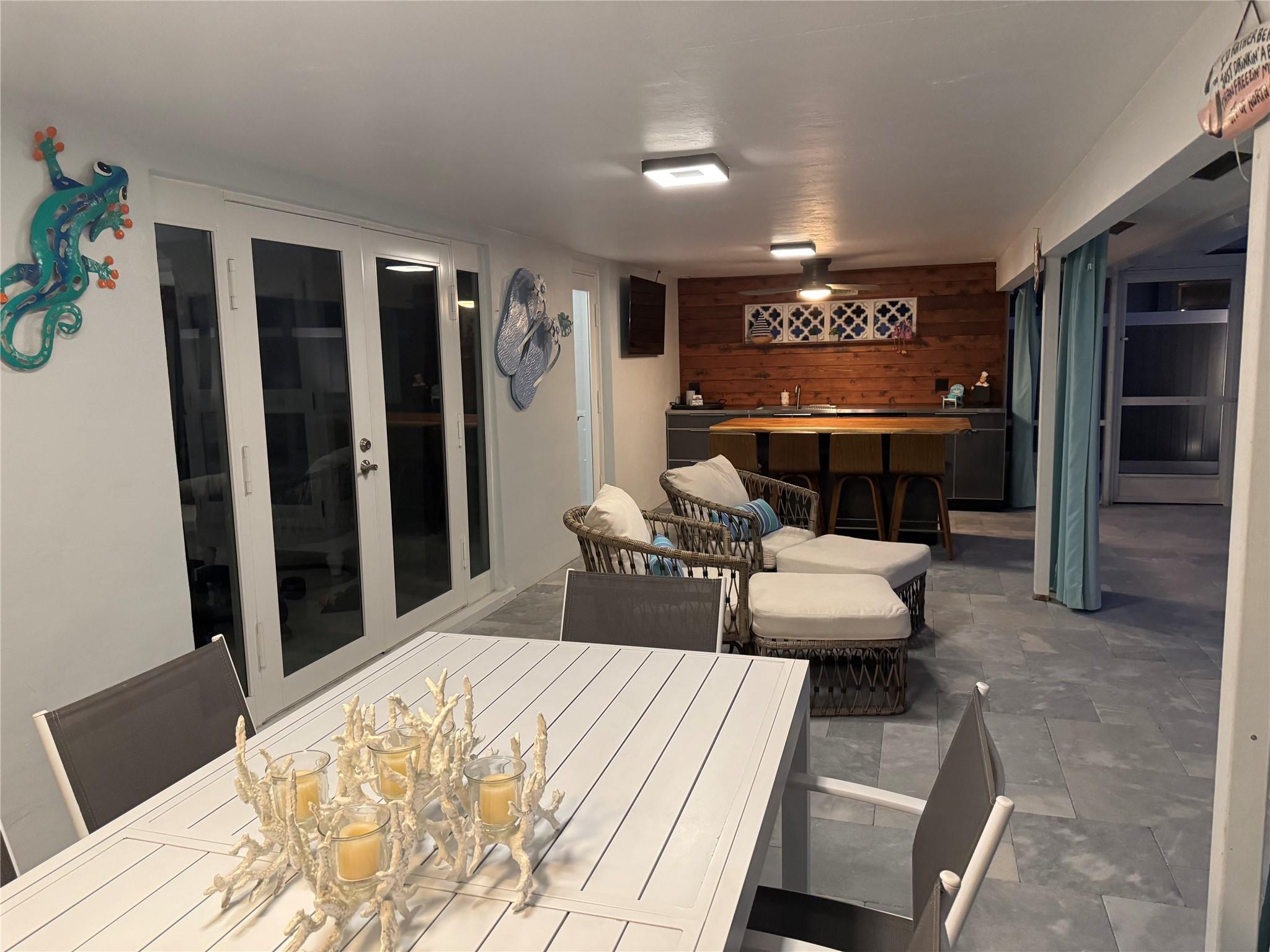 Step outside to the incredible outdoor oasis, featuring an outdoor kitchen, shower, and a sparkling saltwater pool with tumbled marble surround. The screened-in pool and patio area is a perfect place to relax and entertain, offering ultimate privacy and comfort.
