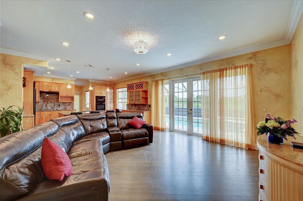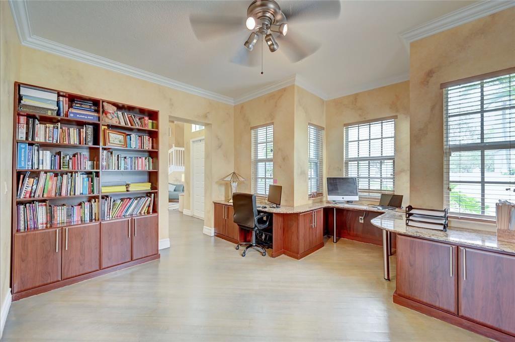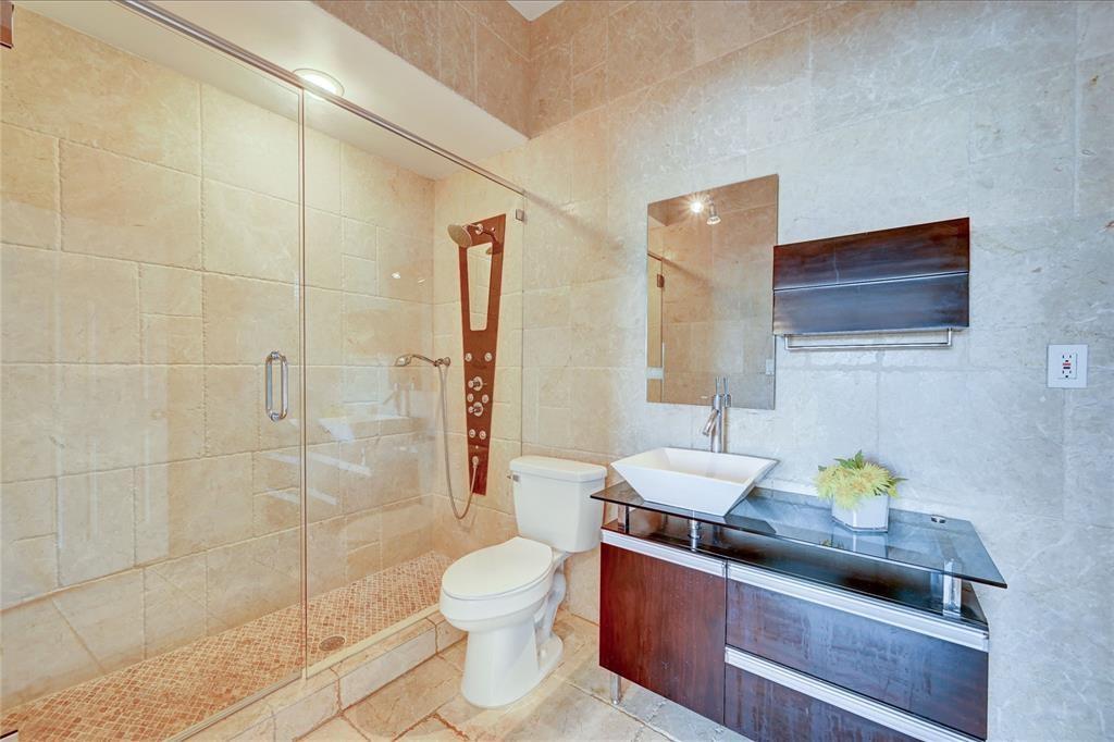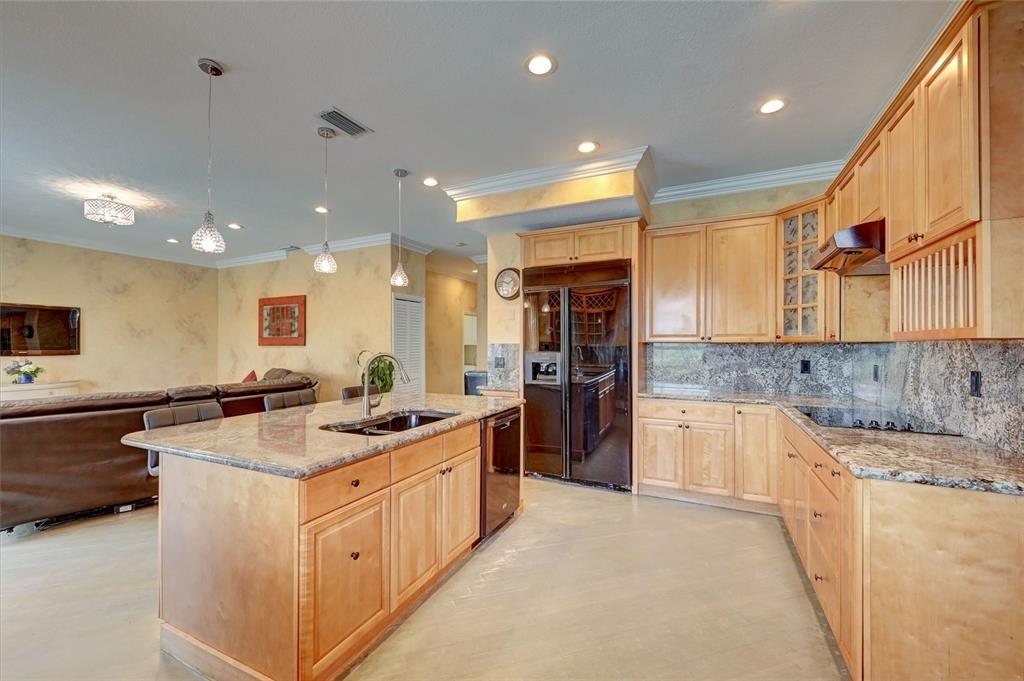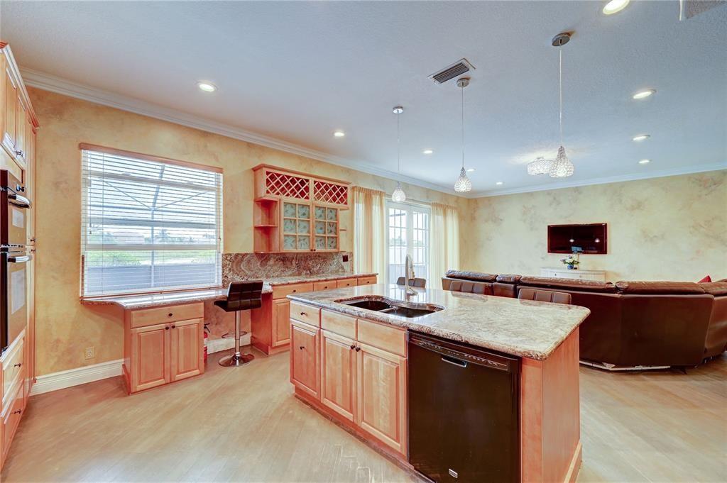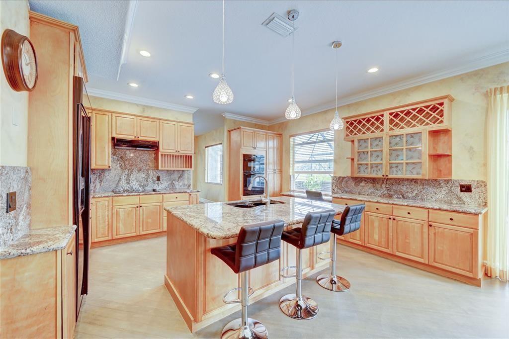 The kitchen has been fully remodeled with 100% wood cabinets, custom built-ins, pull-outs, and elegant lighting. The master suite features his and her custom closets and renovated baths, while upstairs offer four additional bedrooms and an open den ideal as a playroom. A first-floor bedroom adds versatility.