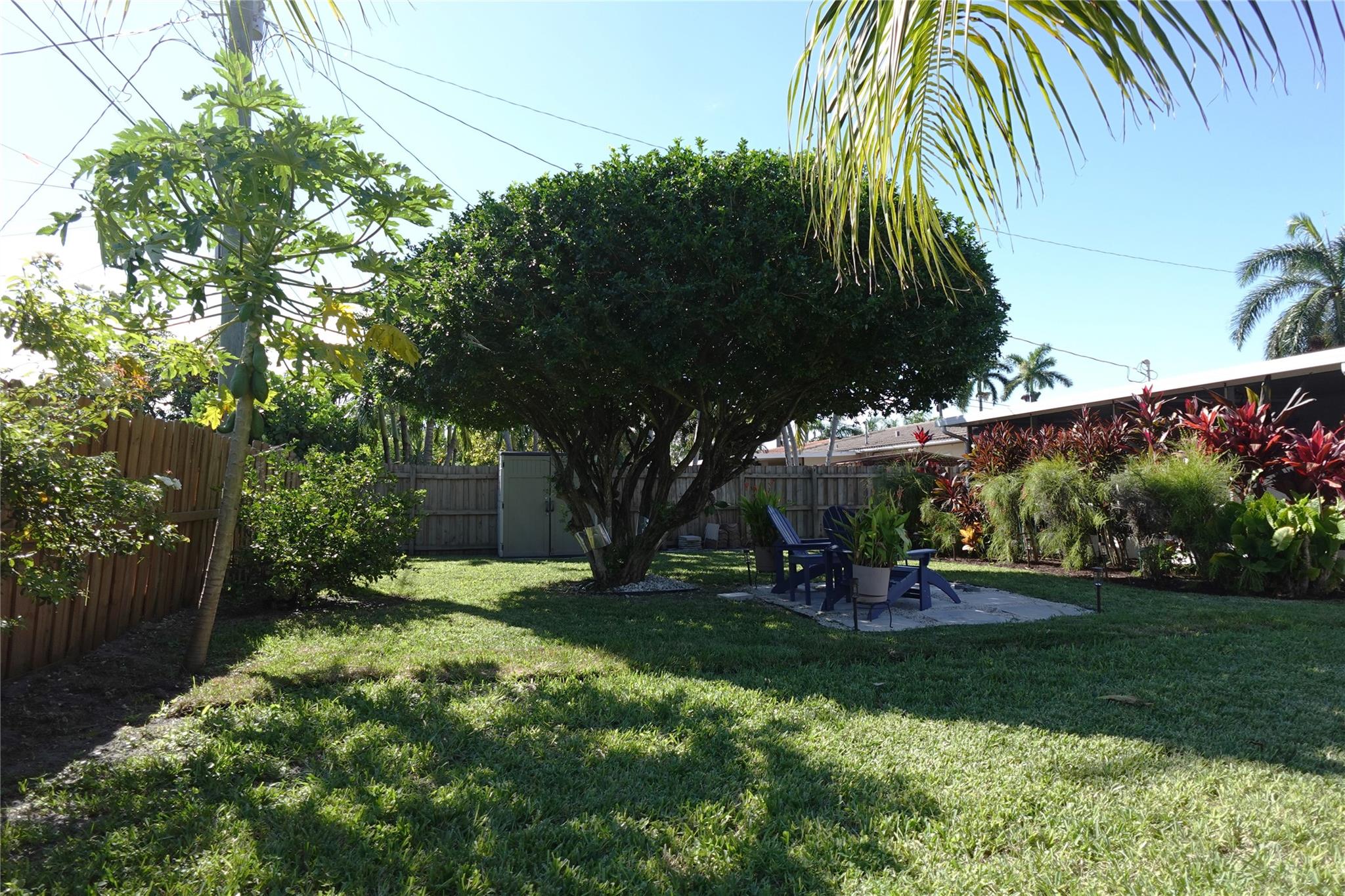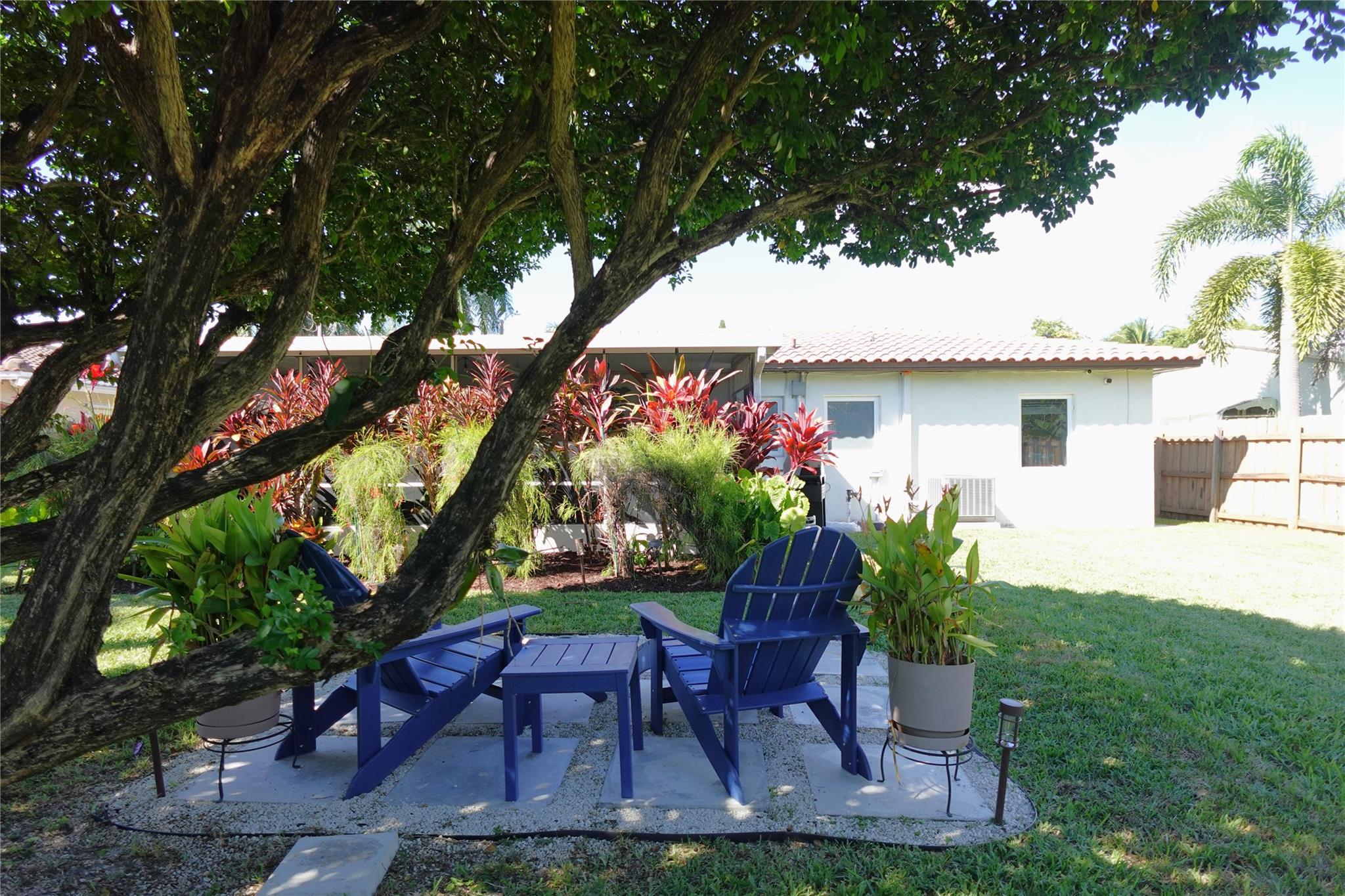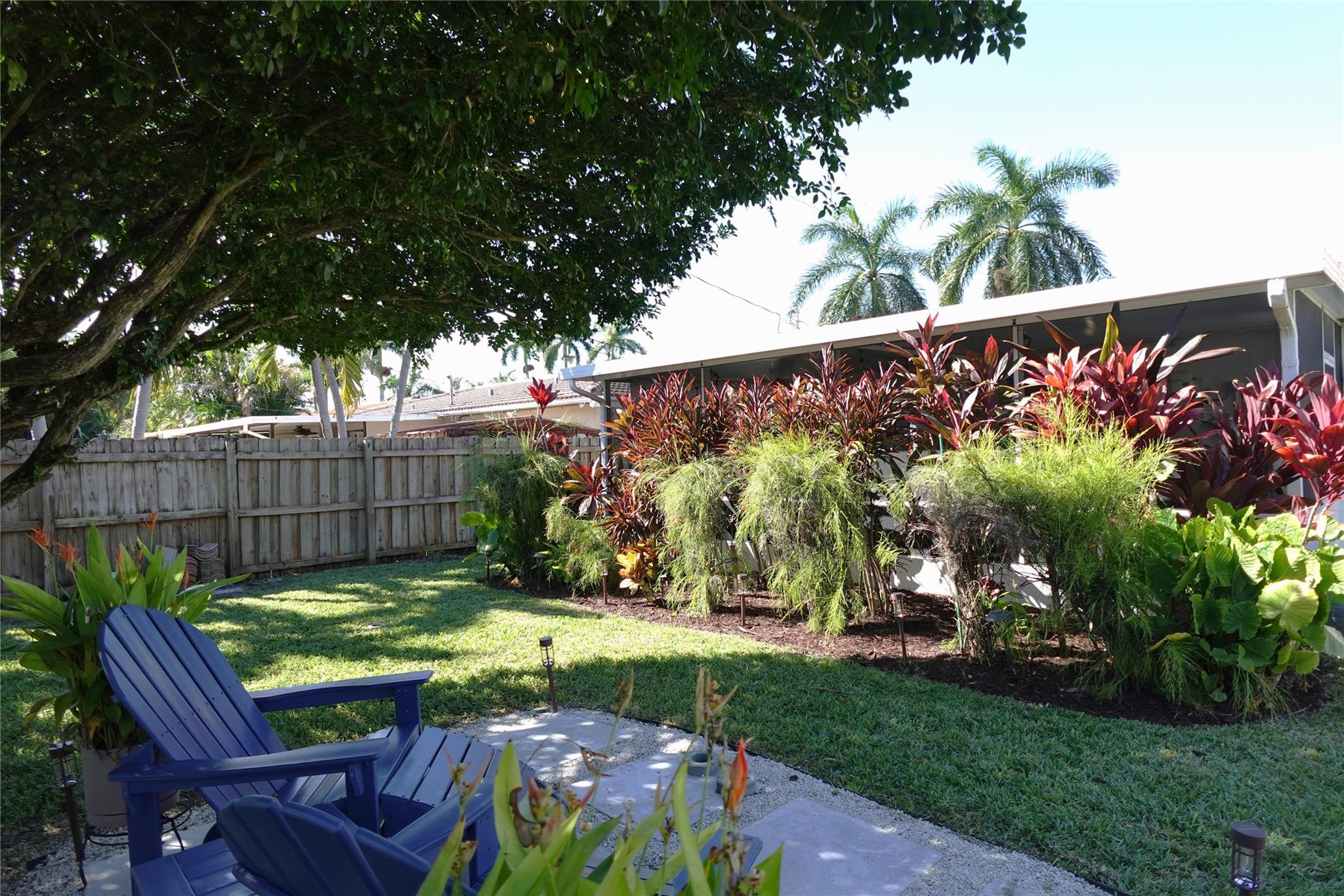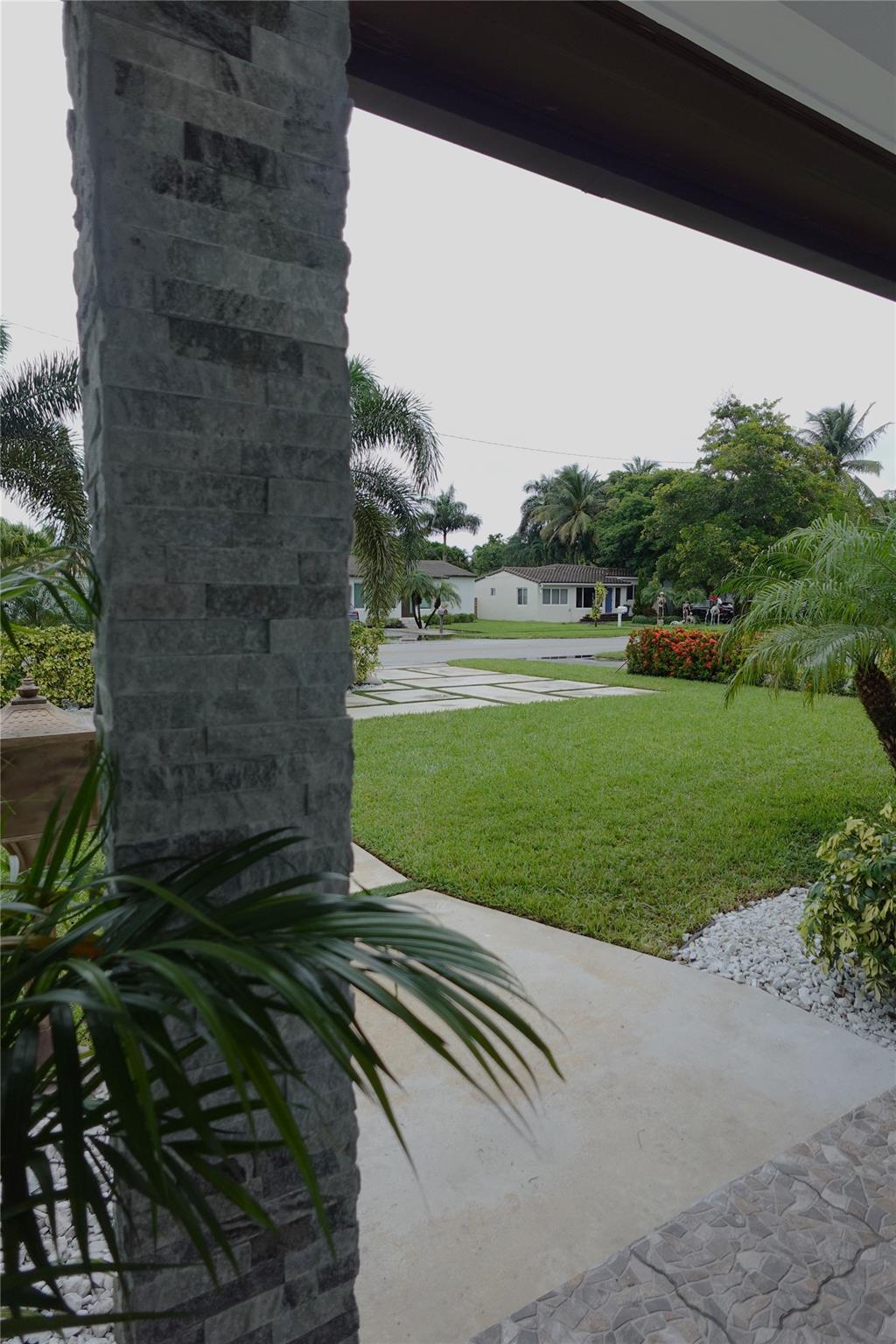 MODERN CONCRETE DRIVEWAY and lush, tropical landscape.