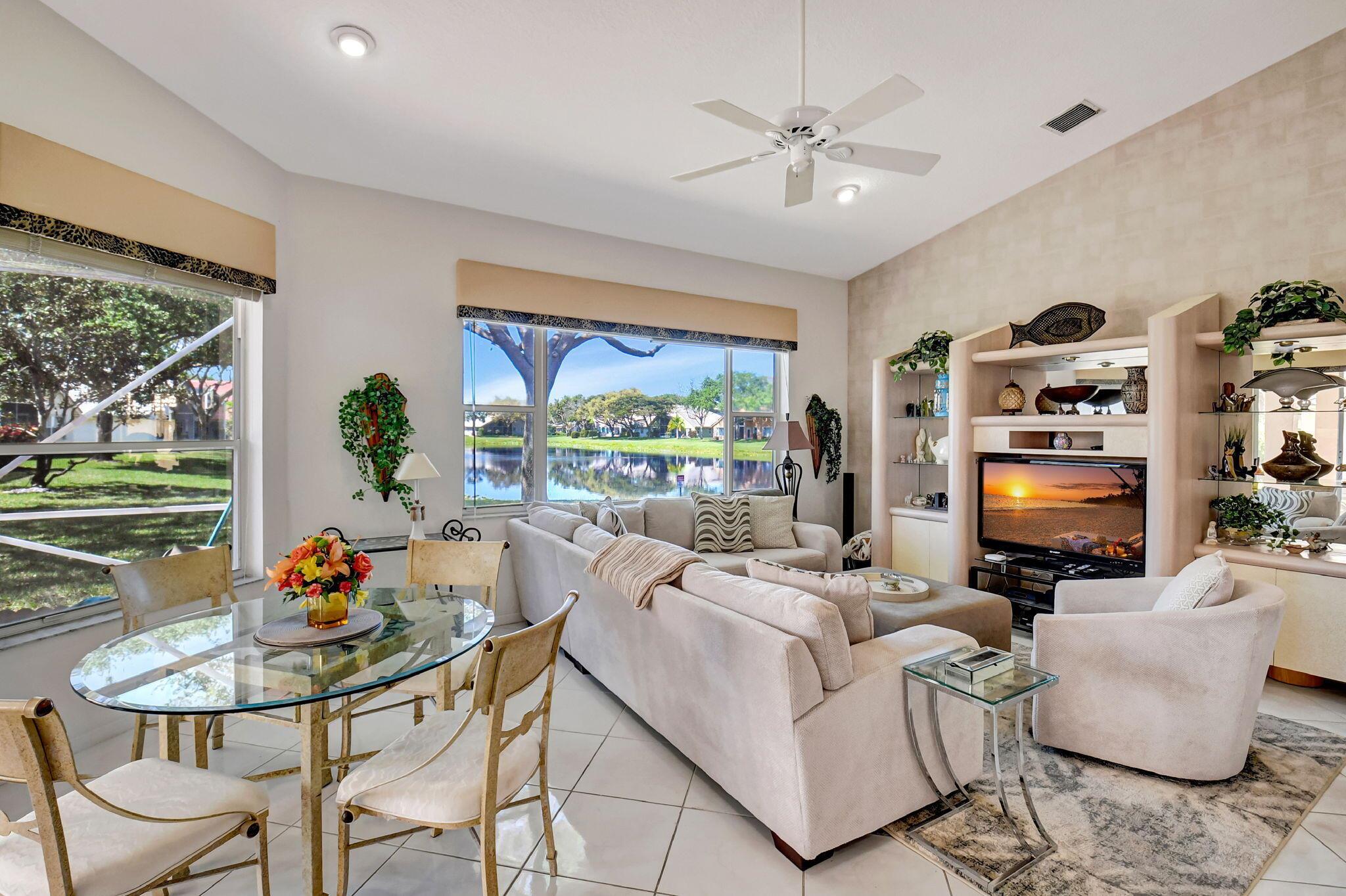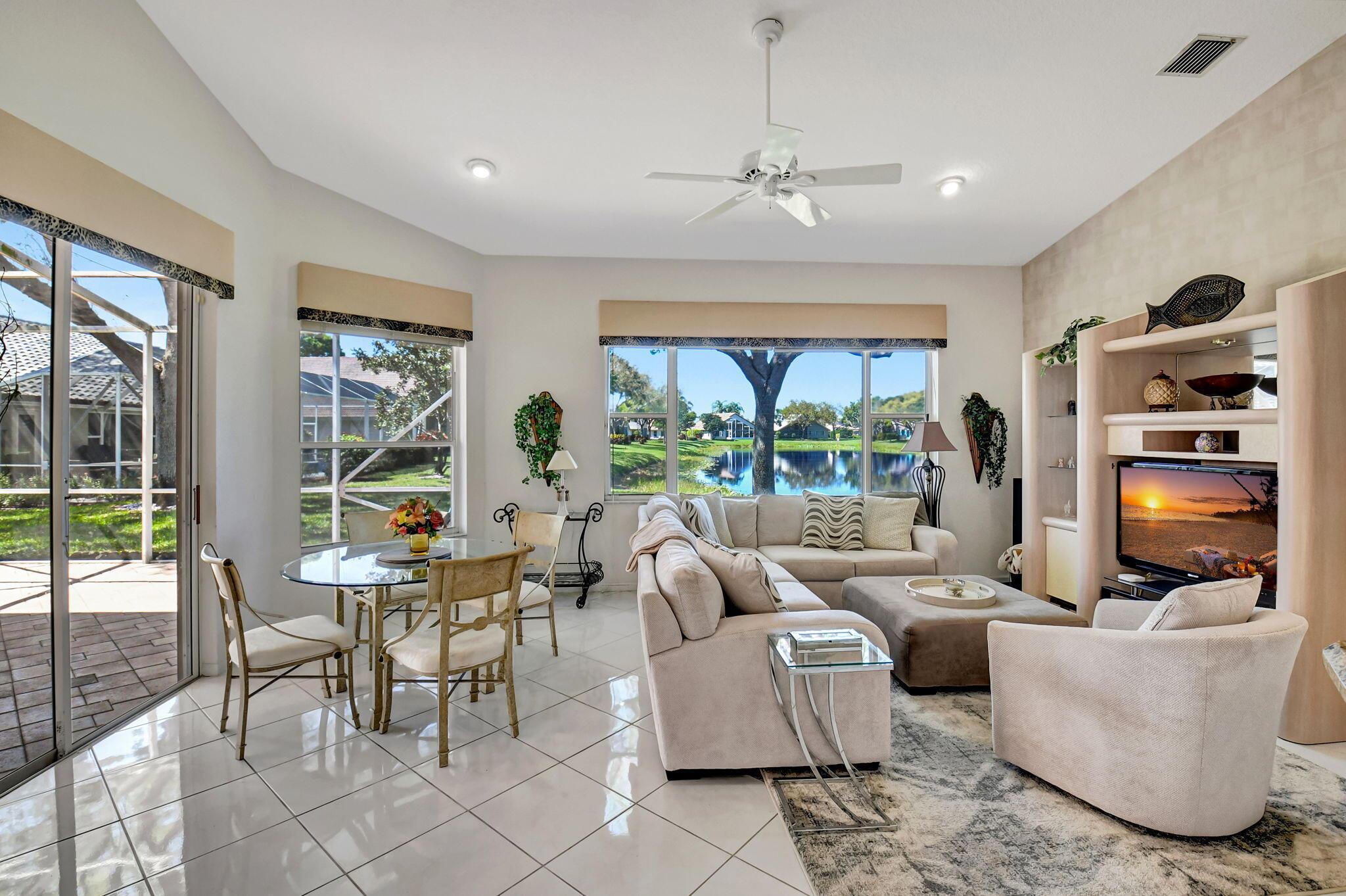 ***HUGE PRICE REDUCTION!!! This is a gorgeous, FULLY FURNISHED/ TURNKEY, modified Dover model which has a spectacular LAKE VIEW from all the rooms in back of the home and consists of 3 bedrooms, 3 full baths, oversized 2 car garage and is one of the largest model homes in Lakeridge Greens with almost 2,400 sq. ft of living space. This home features a NEW ROOF (2023), NEW WATER HEATER (2021), NEW AC (2021) along with HIGH CEILINGS as the roof line was raised by 2 feet and lots of natural light. There is a Chef’s kitchen with plenty of counterspace, NEW SS appliances, newer granite and a separate computer/secretary station. This home has a split floor plan with the main bedroom on one side and the 2nd & 3rd bedrooms on the other. The owner’s suite is oversized with an office and ”SEE MORE”