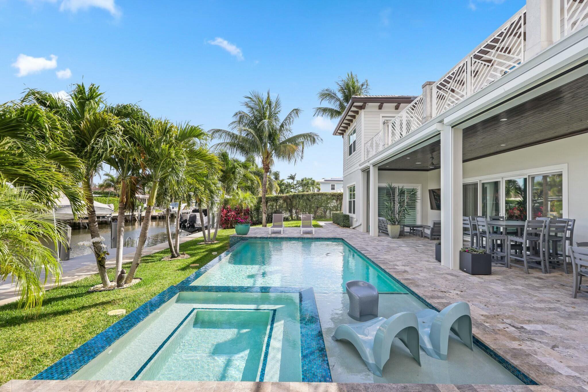 917 Tropic Blvd is an absolute boater’s dream. Located within Delray Beach’s coveted waterfront community of Tropic Isle, this recently constructed property sits on 200′ of water frontage providing plenty of space to dock your yacht and additional water toys. Built with exceptional attention to detail and quality in 2018, this 5 bedroom home is idyllic for entertaining and enjoying the Florida lifestyle. Your open concept living area flows directly into your kitchen with Thermador appliances, a large quartz island, top of the line fixtures and incredible water views. The floor plan has one suite on the ground floor in addition to an office along with two separate garages accommodating 3 vehicles. The primary suite and additional 3 guest bedrooms are located upstairs each with