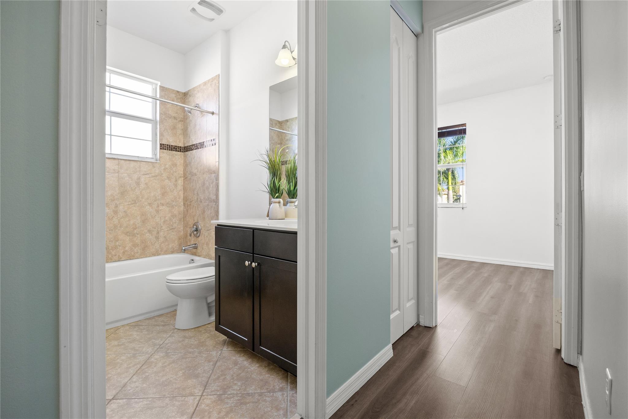 Welcome to this spacious 3-bedrooms, 3-bathrooms townhouse, (additional room with a door can be used as an office/den) With a large walk-in closet, double vanities, a walk-in shower, and a relaxing soaking tub. Kitchen features granite countertops, wood cabinet, stainless steel appliances & center island. Tile throughout living areas Brand new fence in patio. Impact windows and doors. Make this house your forever home!