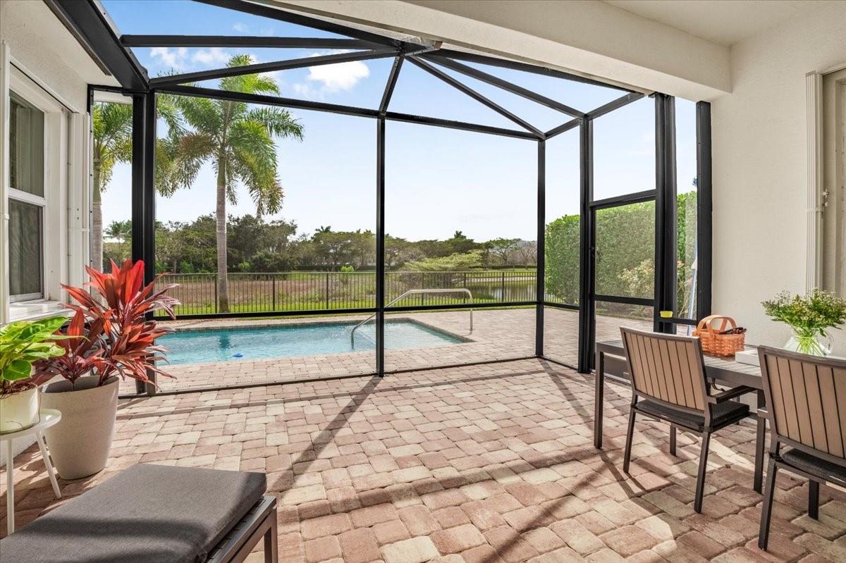 Wake up to golden sunrises, sip coffee on your patio, and take a refreshing dip in your private pool—all before the world catches up. This 4-bed, 3-bath oasis in gated Portosol blends style, sophistication, and serenity. Inside, soaring ceilings, designer lighting, and bright, airy spaces set the tone for effortless luxury. The open kitchen boasts white cabinets, granite countertops, and stainless steel appliances—perfect for gourmet meals or quick bites. A split floor plan ensures privacy, while spacious living areas flow seamlessly for entertaining. The true highlight? Your backyard. With views of the nature preserve, an extended patio, and a private pool, every moment is a memory. This isn’t just a home—it’s a lifestyle, and it’s waiting for you.