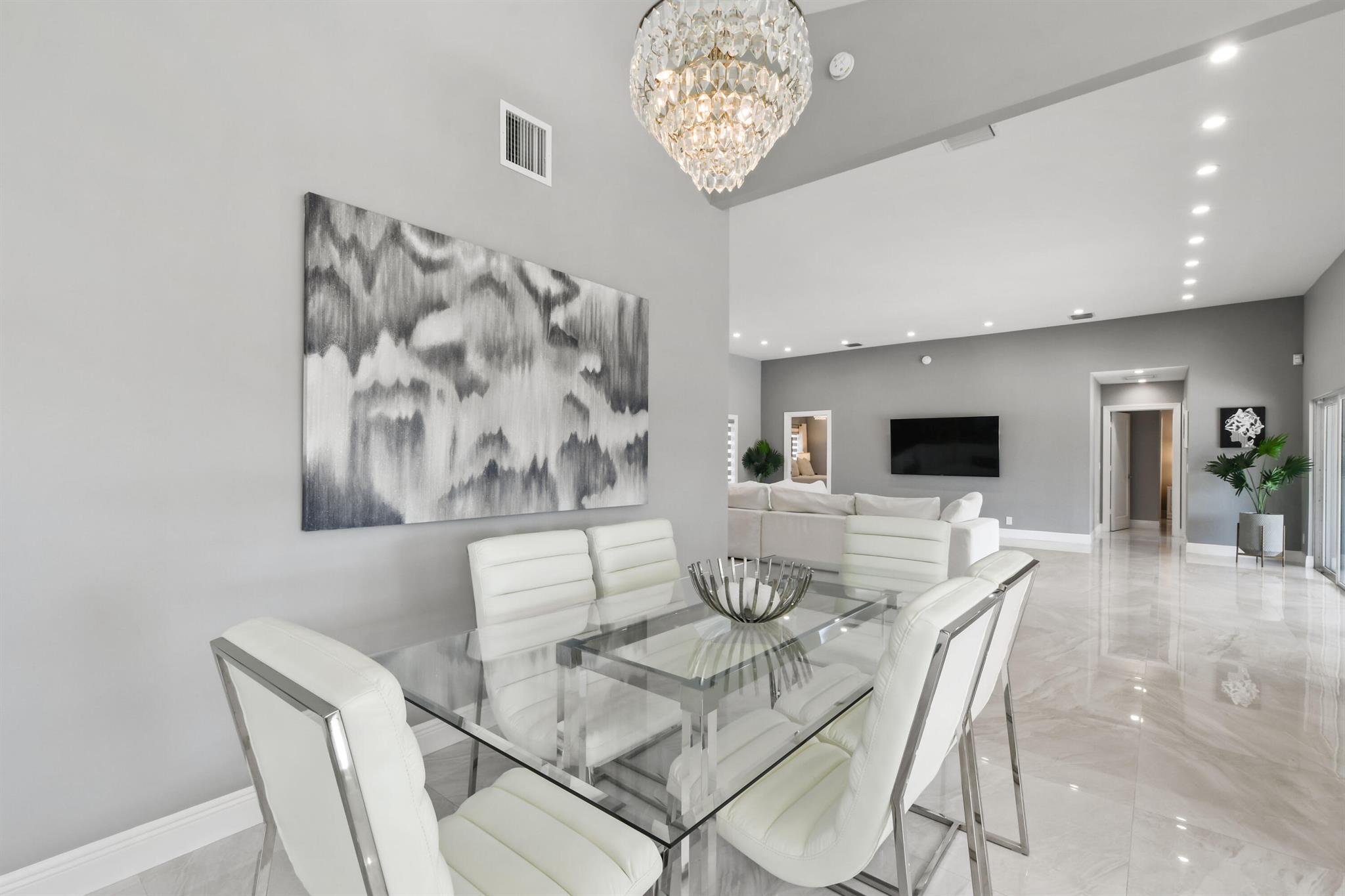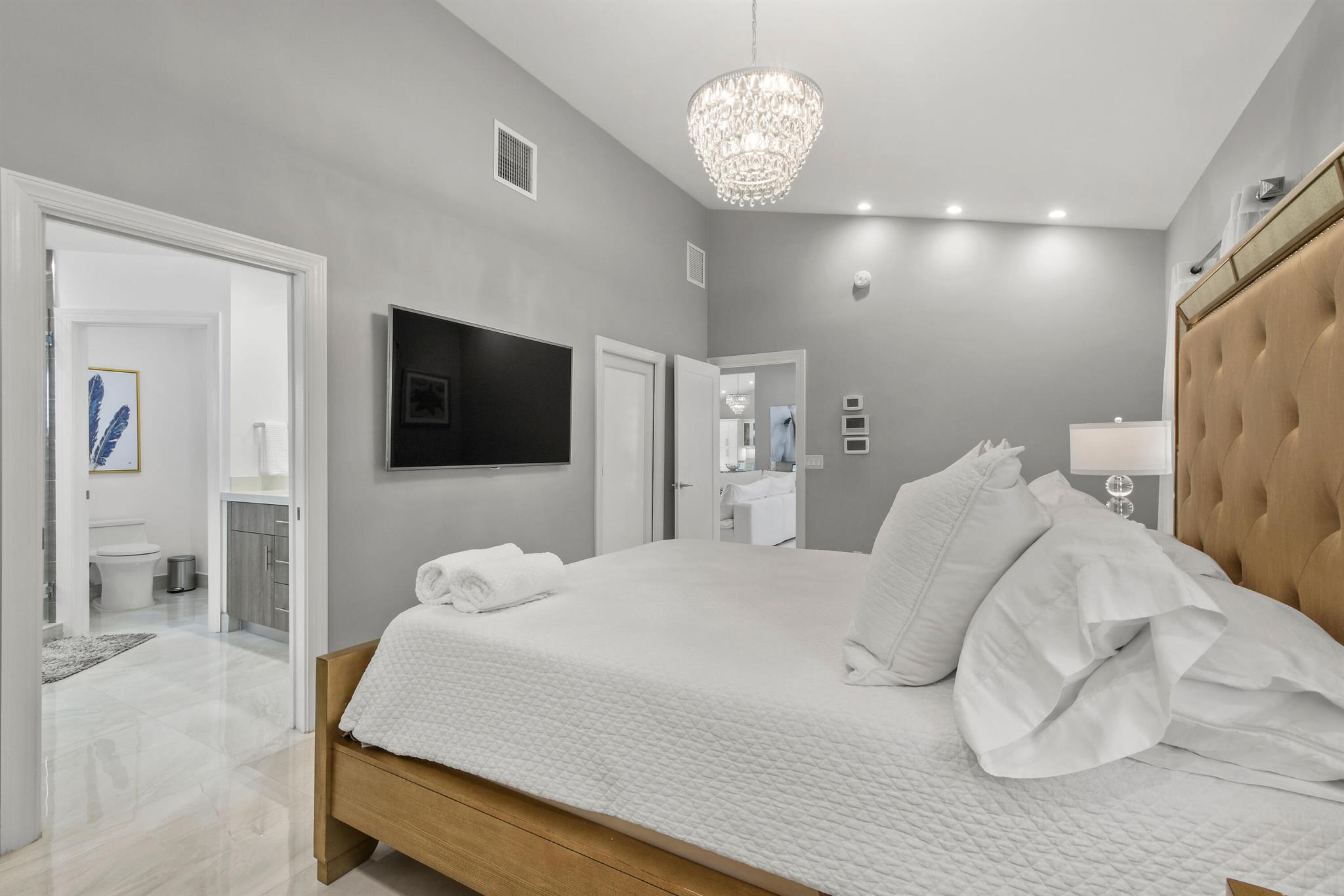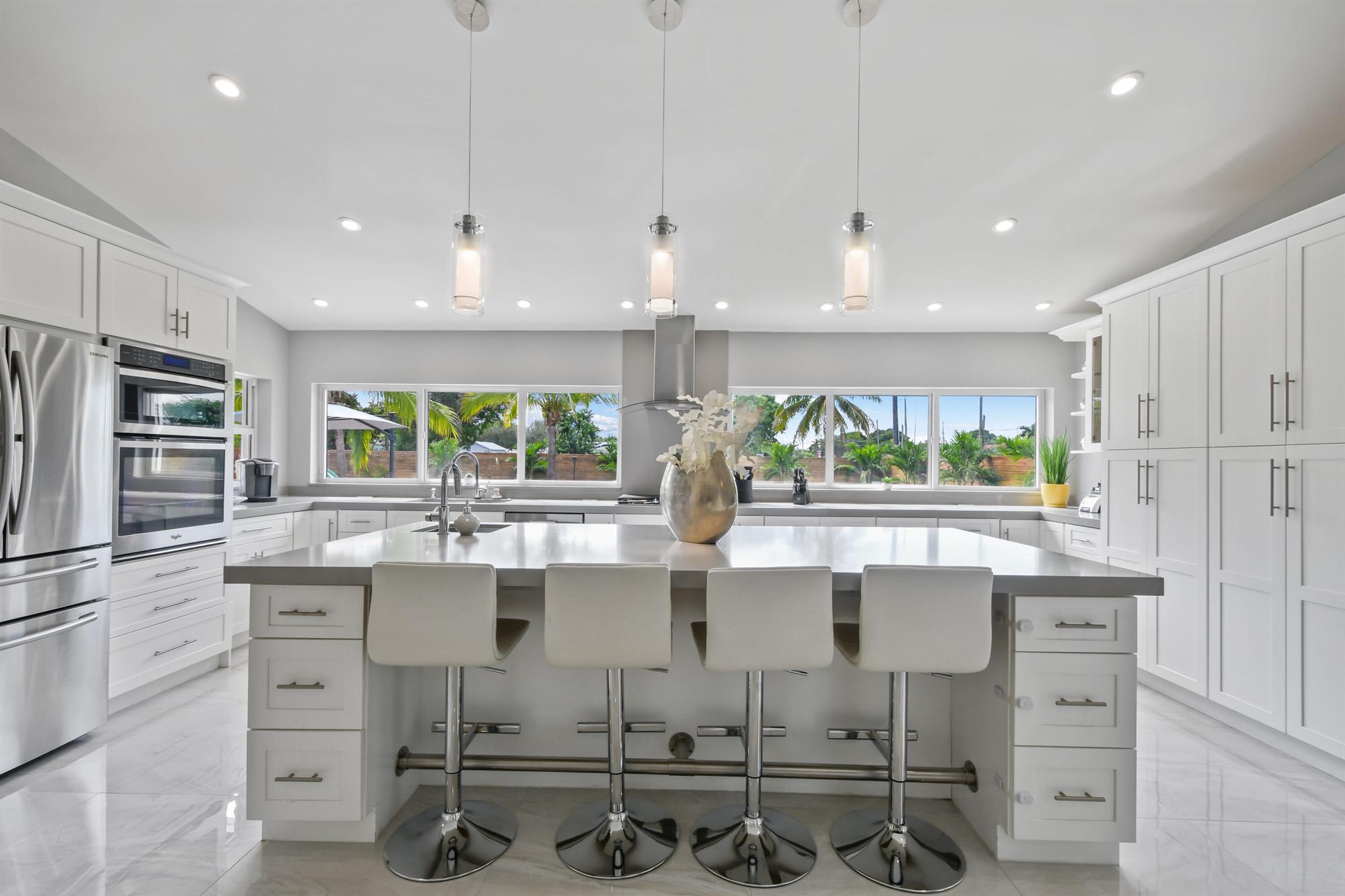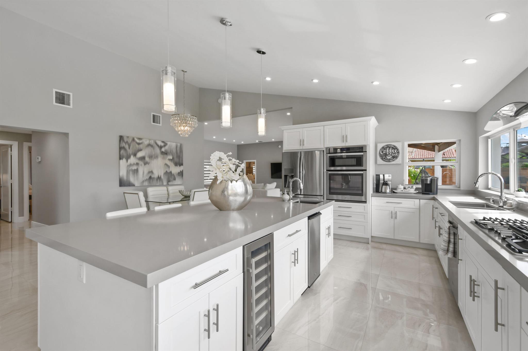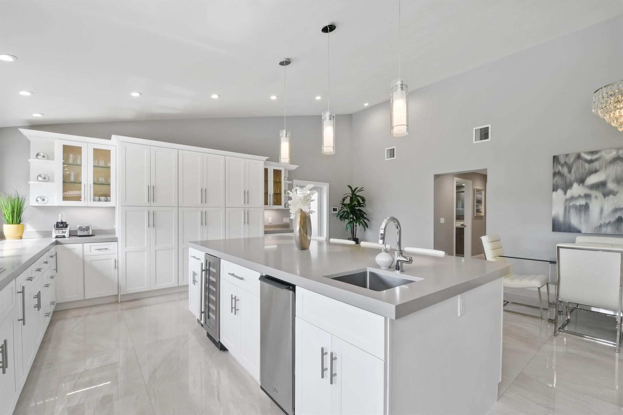 Step into elegance with this beautifully updated 4-bedroom, 3-bathroom home, designed for both luxury and functionality. From the moment you arrive, you’ll be captivated by high ceilings and gorgeous tile flooring throughout, creating a bright and sophisticated ambiance. The open-concept kitchen is a chef’s dream, featuring trendy white cabinets, Corian countertops, stainless steel appliances, and a spacious island with high-top seating, perfect for casual dining or entertaining guests. The primary bedroom is spacious and inviting, featuring a large walk-in closet and an ensuite bathroom with a walk-in shower, soaking tub, and double sinks for ultimate comfort.