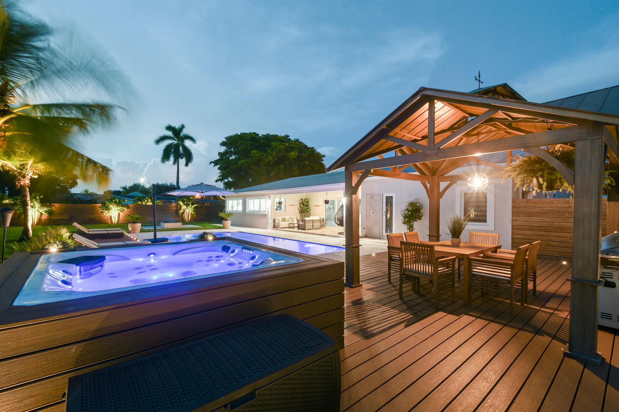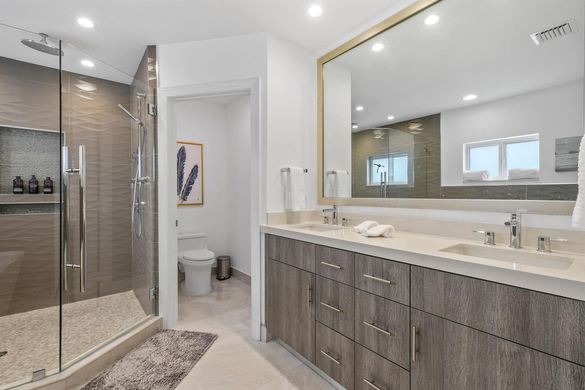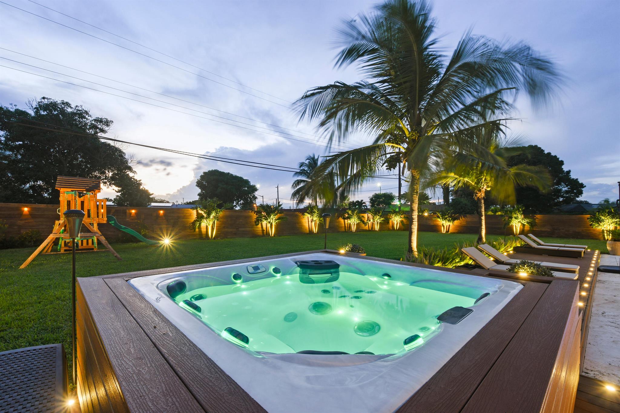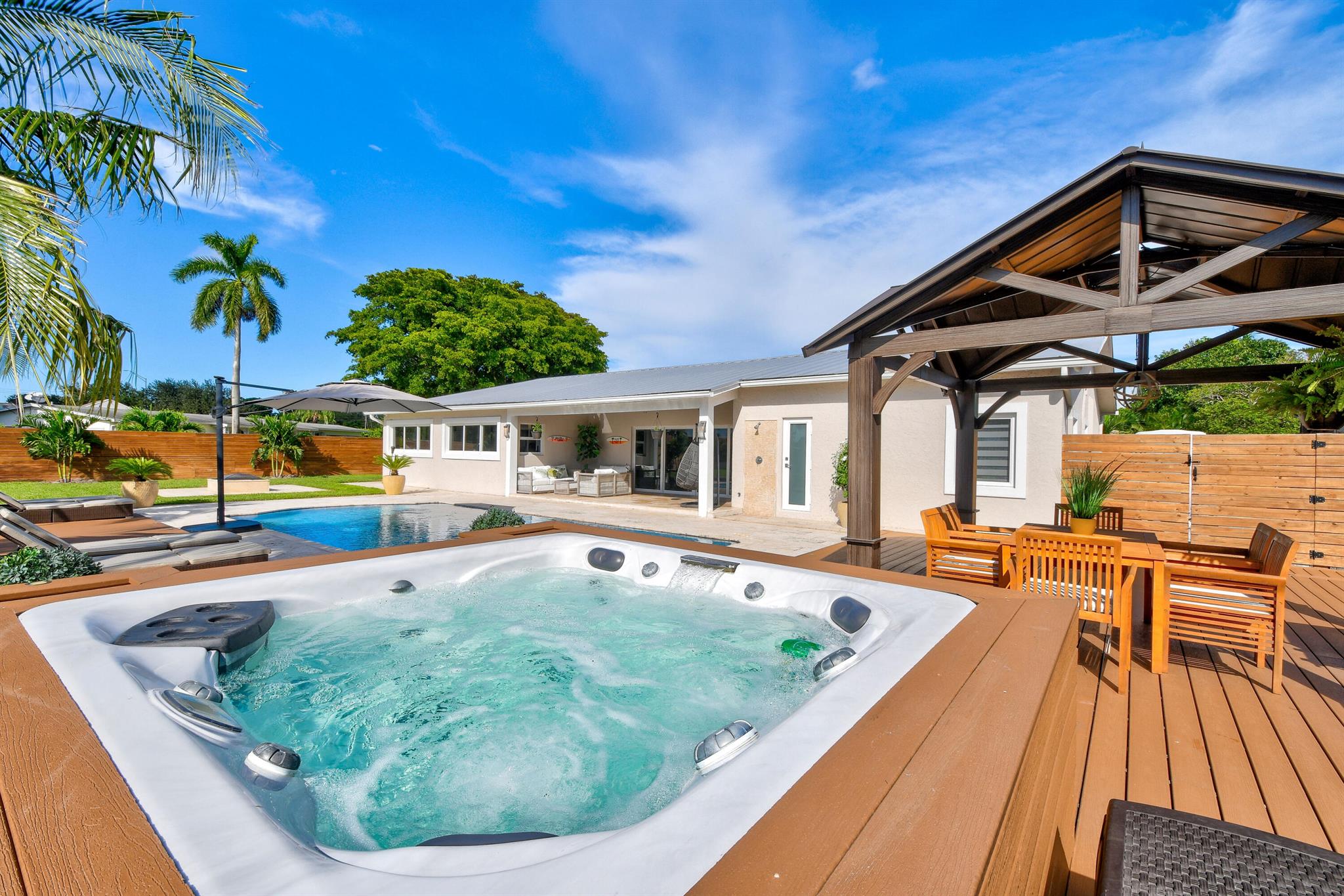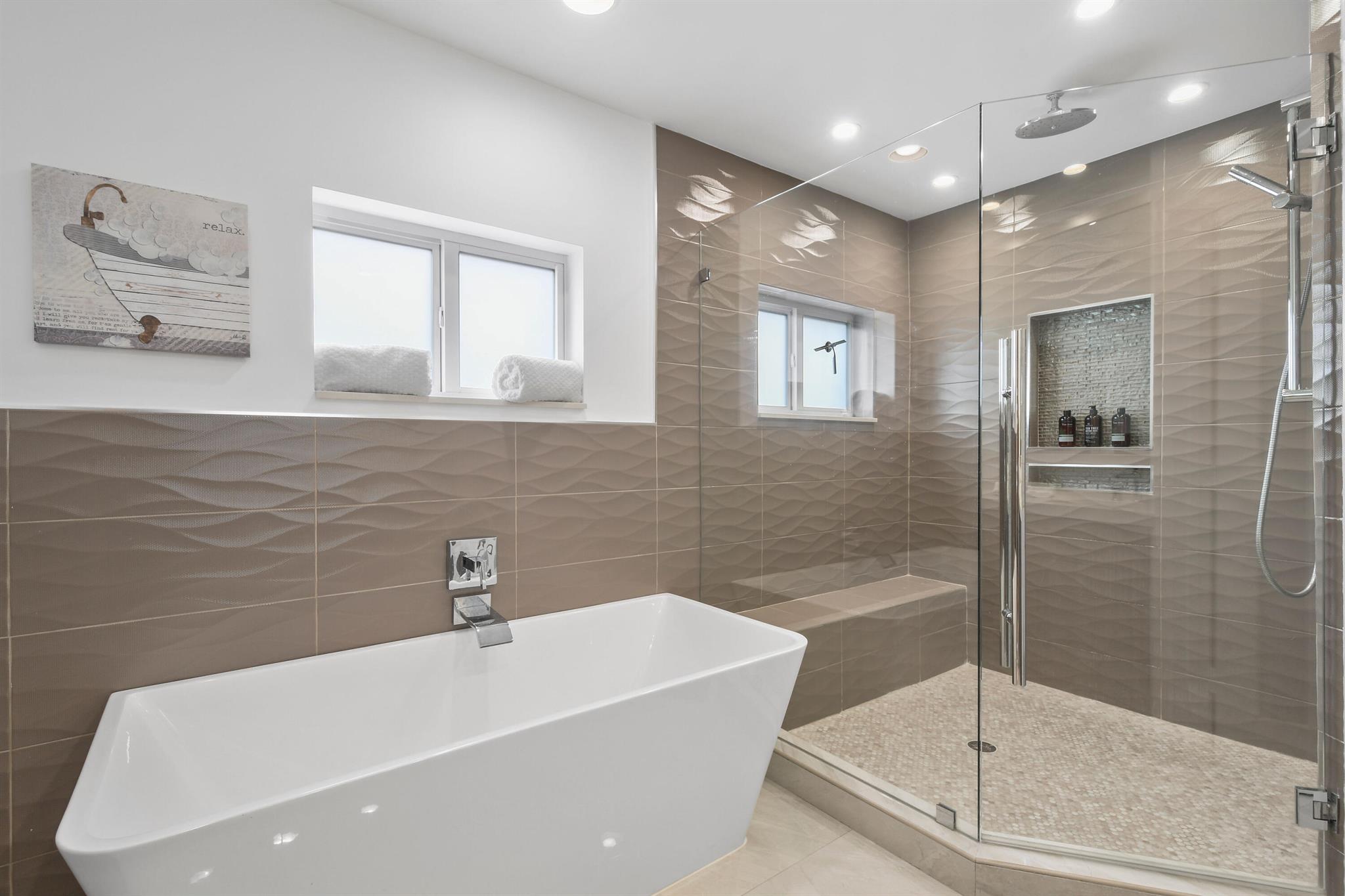 Step into elegance with this beautifully updated 4-bedroom, 3-bathroom home, designed for both luxury and functionality. From the moment you arrive, you’ll be captivated by high ceilings and gorgeous tile flooring throughout, creating a bright and sophisticated ambiance. The open-concept kitchen is a chef’s dream, featuring trendy white cabinets, Corian countertops, stainless steel appliances, and a spacious island with high-top seating, perfect for casual dining or entertaining guests. The primary bedroom is spacious and inviting, featuring a large walk-in closet and an ensuite bathroom with a walk-in shower, soaking tub, and double sinks for ultimate comfort.