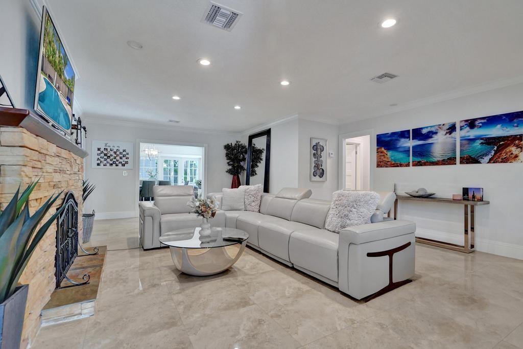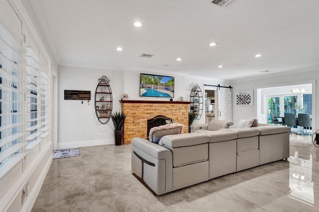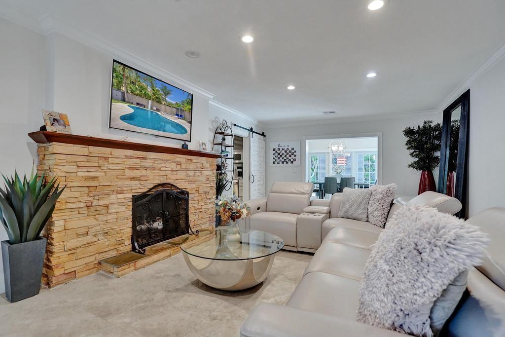Welcome to a stunning blend of classic charm and contemporary elegance in the highly sought-after Coral Ridge neighborhood. This 3-bed, 3-bath home + office spans 2,700 sq ft on a 0.27-acre lot. The open layout features a formal living room, dining area, and a gourmet chef’s kitchen with Sub Zero, Wolf range, quartz countertops, and a waterfall island. A 2007 addition enhanced the oversized master bedroom including a spa-like ensuite, a walk-in closet, and a private office nook. The second bedroom features a bathroom with a steam shower. The resort-style backyard offers a heated pool & spa, pergola, lush landscaping with turf. With impact windows, plantation shutters, a metal roof, and top-rated Bayview Elementary nearby, this home is minutes from the beach, Las Olas, and top dining.