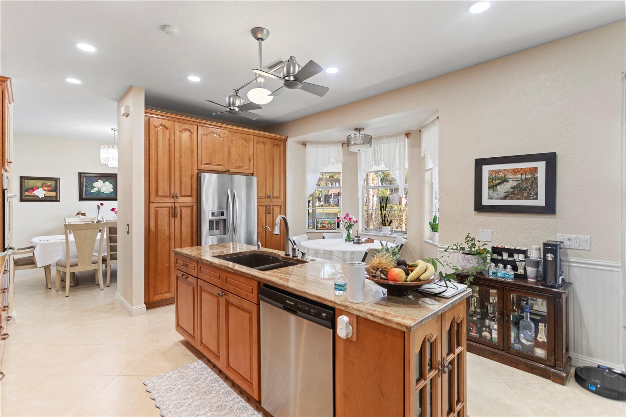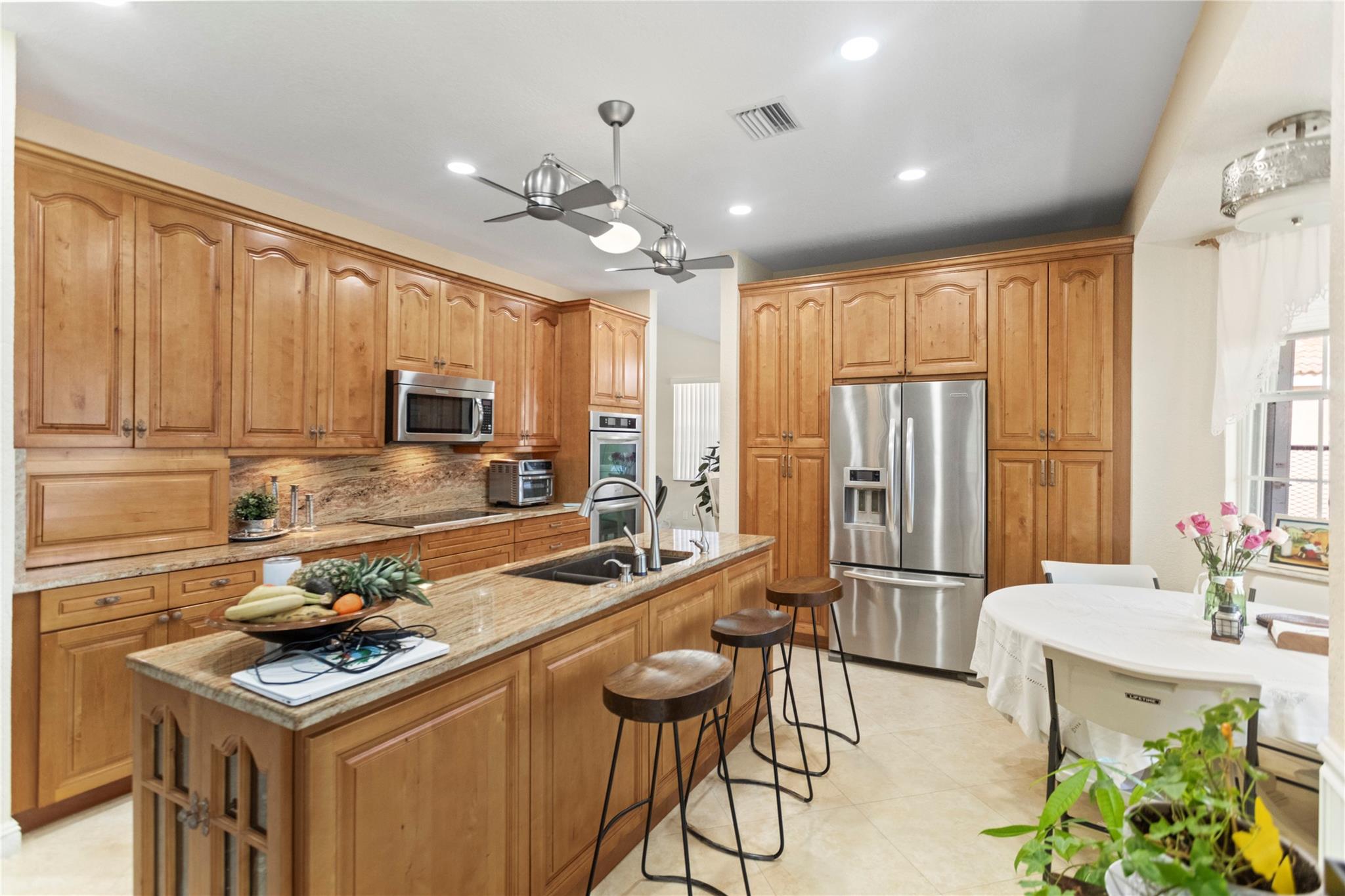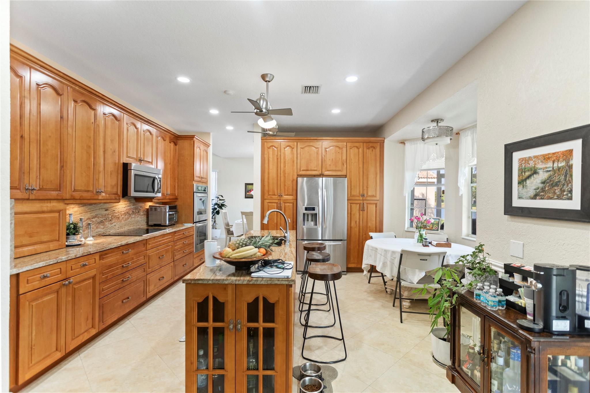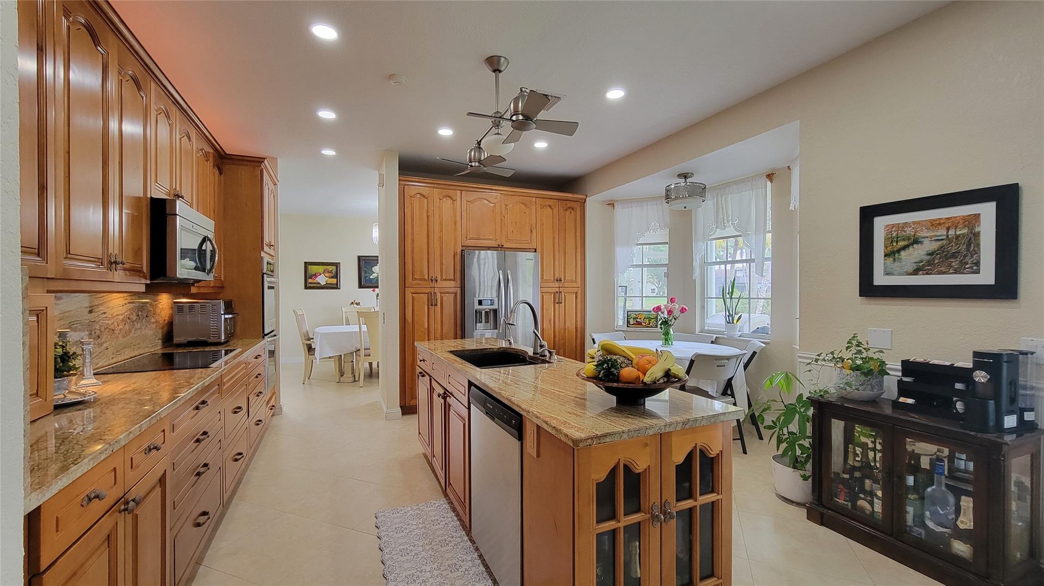 • Modern Chef’s Kitchen: Equipped with double ovens, stainless steel appliances, and an induction cooktop