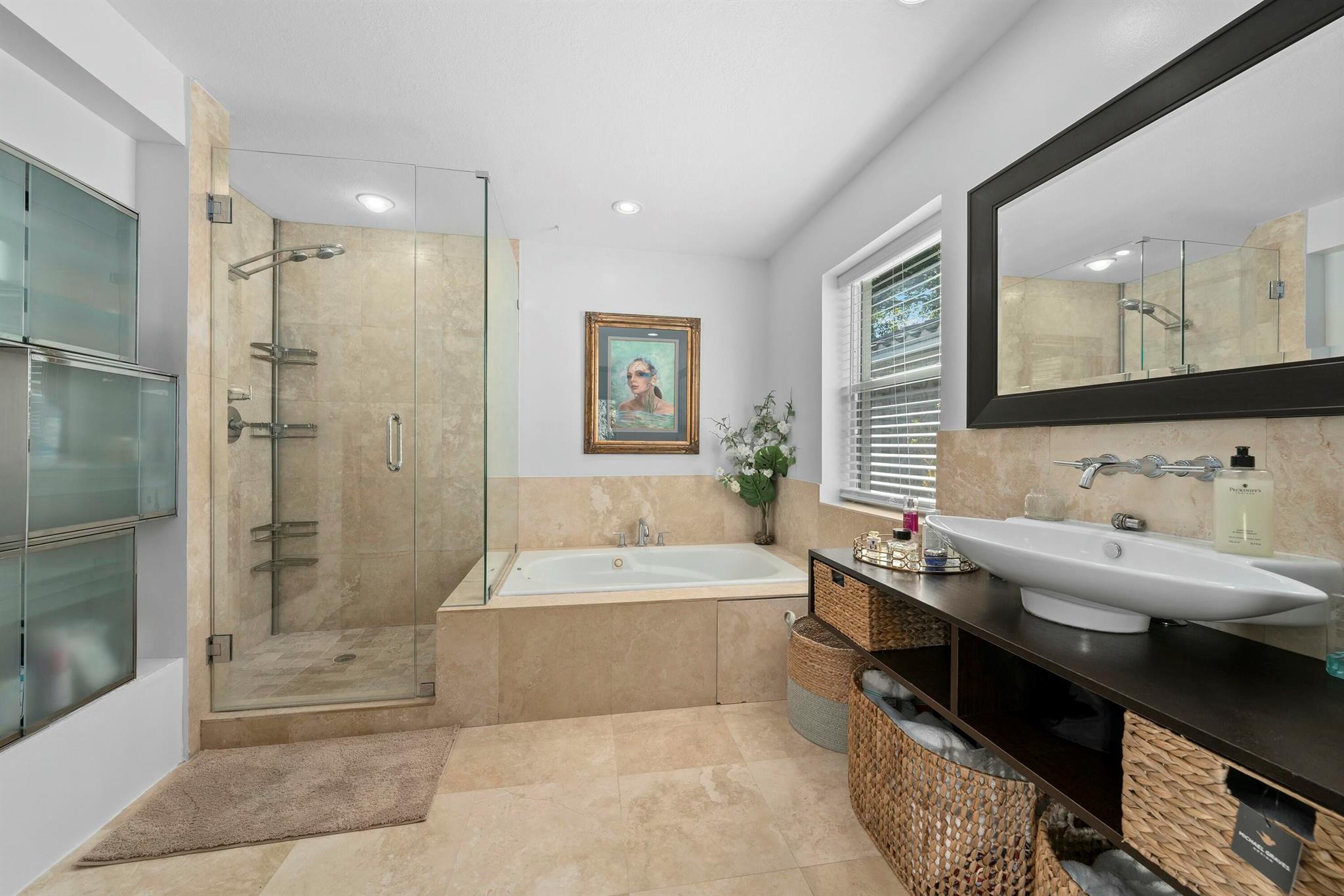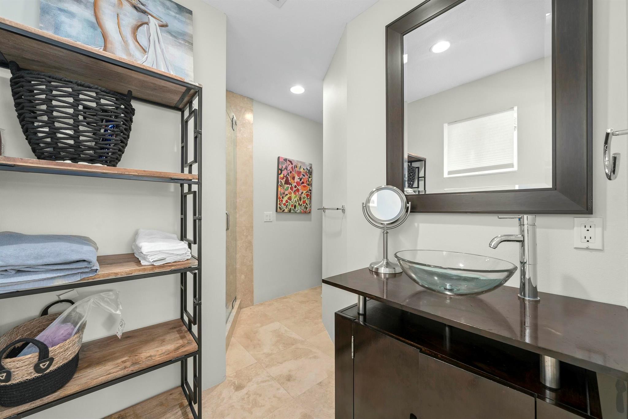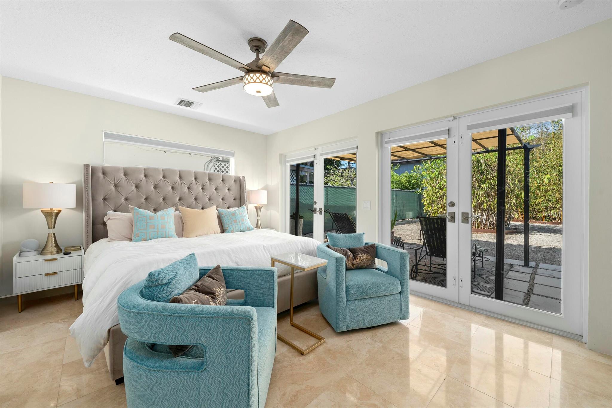 Step inside and experience perfection–this 100% turnkey home has it all! Vaulted beam ceilings invite you into a serene, Zen-inspired space, starting with elegant travertine floors The kitchen featuring marble countertops, Modern cabinetry, and updated stainless steel appliances. A new HVAC system (2024) has been upgraded to accommodate a third bedroom or flex room in the garage. The owner’s suite is a true retreat, with French doors that overlook the serene backyard.