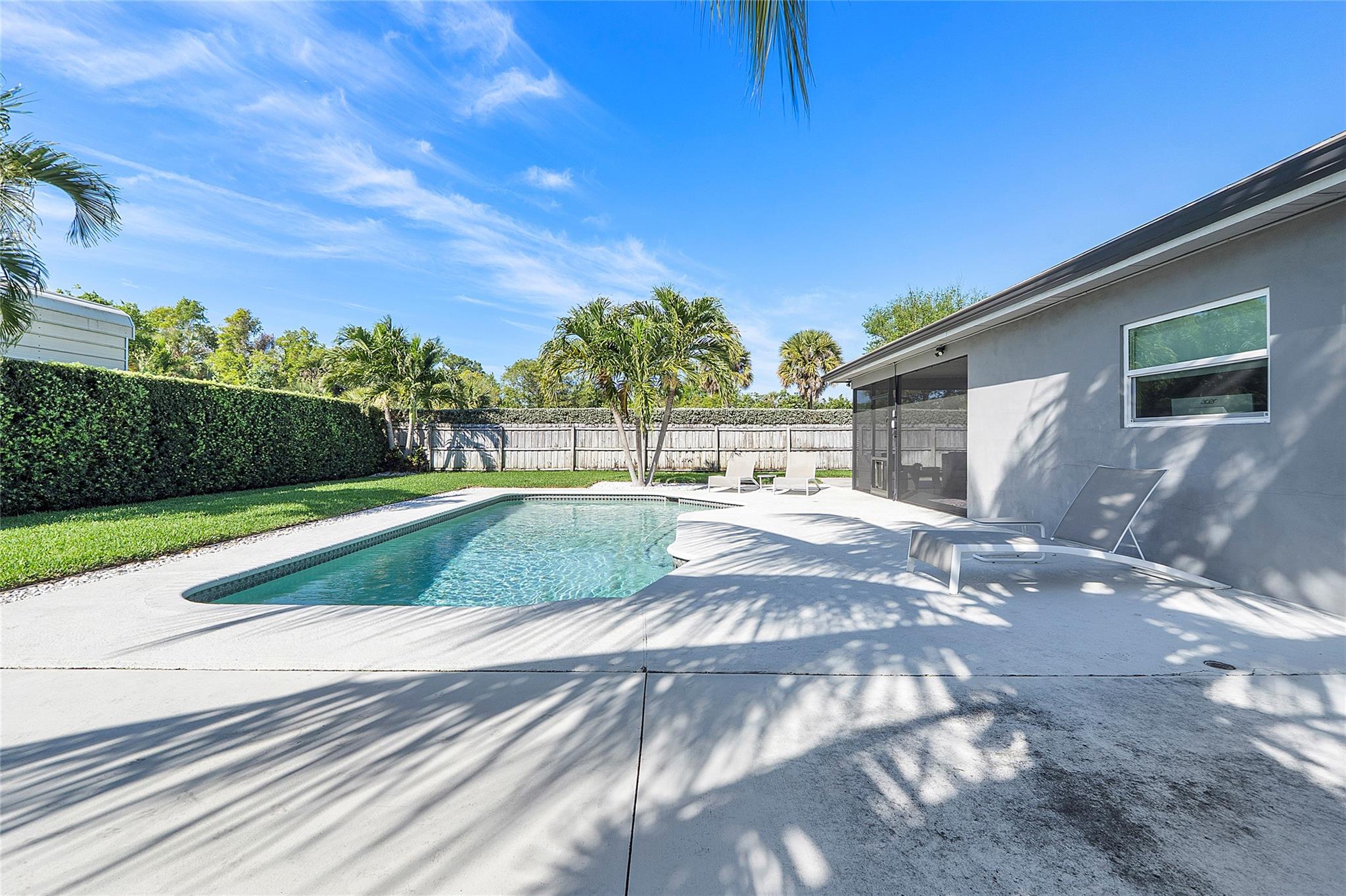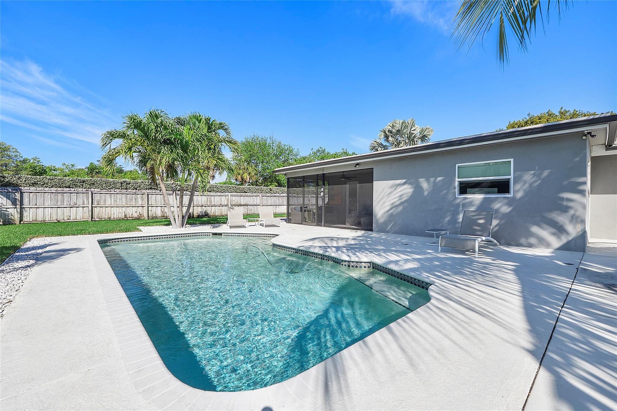 Beautifully appointed, turn-key home in east Boca. This 3 bedroom 2 full bathroom home has brand new sod around the whole property with incredible landscaping, a 6-foot wood privacy fence with an expansive deck and pool with a screened patio. Inside the fenced area on the side of home is a large paved space where a camper, boat or car can be privately kept. Upgrades include: impact windows and doors throughout, new ac and washer and dryer, high end porcelain tile throughout, upgraded kitchen with high-gloss gray cabinets, stone countertops and backsplash and stainless steel appliances, upgraded bathrooms and much more… Can be a perfect home or can also be an incredible income producing property due to its location, features and condition.