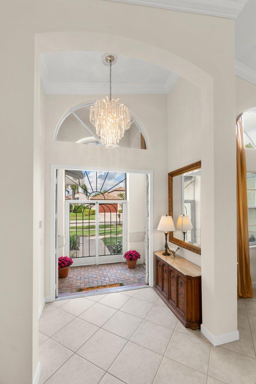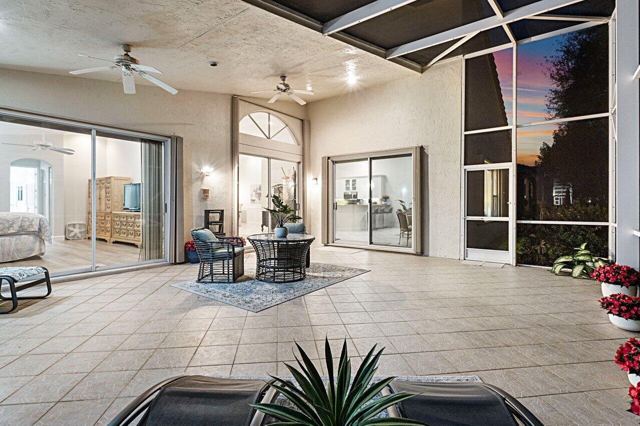 The moment you step through the elegant double door entry you notice the dramatic soaring ceilings, lots of natural light streaming through & the expansive golf course views in the estate section of Lalique! The open kitchen features 42” white cabinets, granite countertops, s/s appliances & opens out to the family room. the primary suite has high ceilings, huge custom fitted walk-in closets & views to the golf course! ensuite primary bath has his & hers vanities, soaking tub & separate shower. Relax or grill out w/ friends on the extended covered screened lanai. Cascades is a beautifully maintained gated community w/ an active clubhouse featuring 2 resort pools, a cafe/ restaurant, fitness center, grand social hall for shows, parties & dances, tennis & pickleball, art studio & clubs!