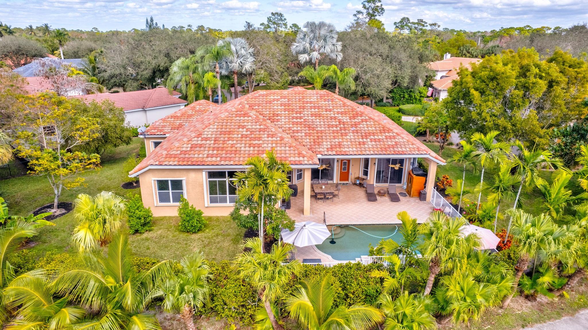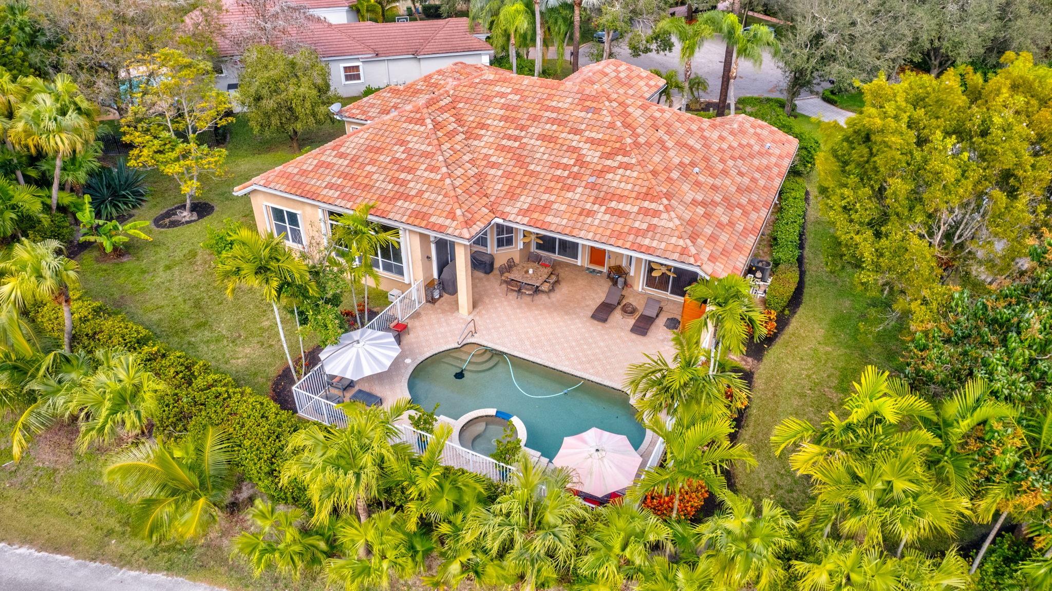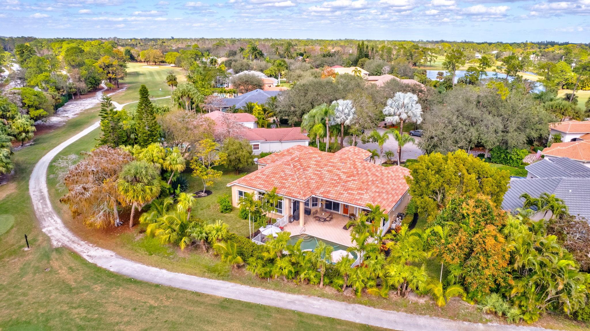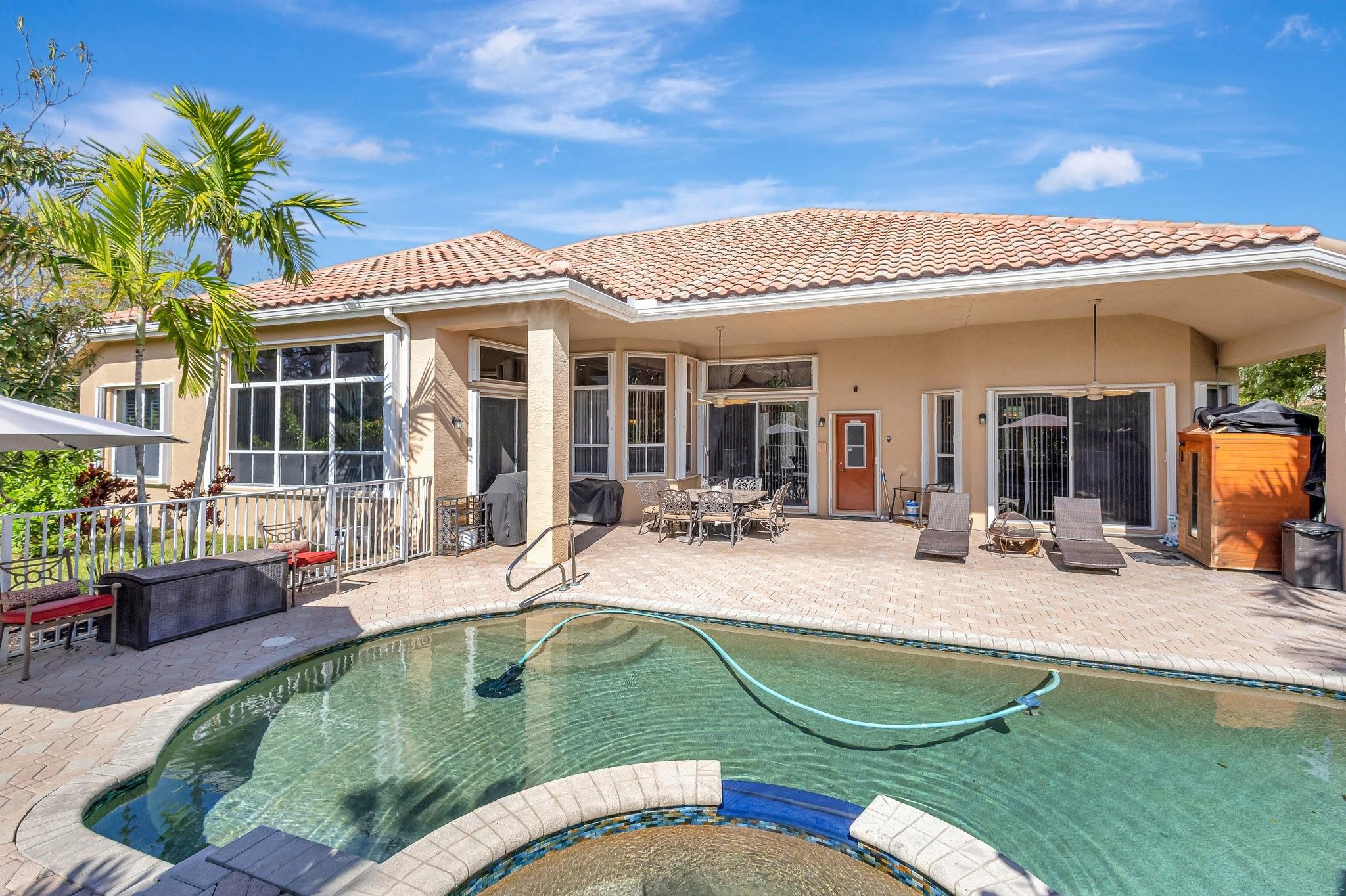 Interior photos coming soon. Freshy painted – Priced under appraisal / Binks Estates 5BR/3BA ranch pool home, split plan w/ soaring ceilings and crown molding – measuring 3,178 SF under air and 4,521 SF total. Enjoy a resort at home with 16th hole golf views, a gorgeous pool deck large enough for entertaining, heated refinished pebble tech saltwater pool w/spa, sauna + fruit trees! Upgrades incl. SS appliances, double convection ovens, new WIFI cooktop, 2 RUUD A/C units (air handlers + compressors w/Nest 2024), WH 2019, plantation shutters (2021), LED lighting, Dolby sound system in family room, hurricane impact front door, full accordion shutters, roof approx.14 yrs. Don’t miss this opportunity, schedule a showing today! All information is deemed reliable but must be verified by buyer