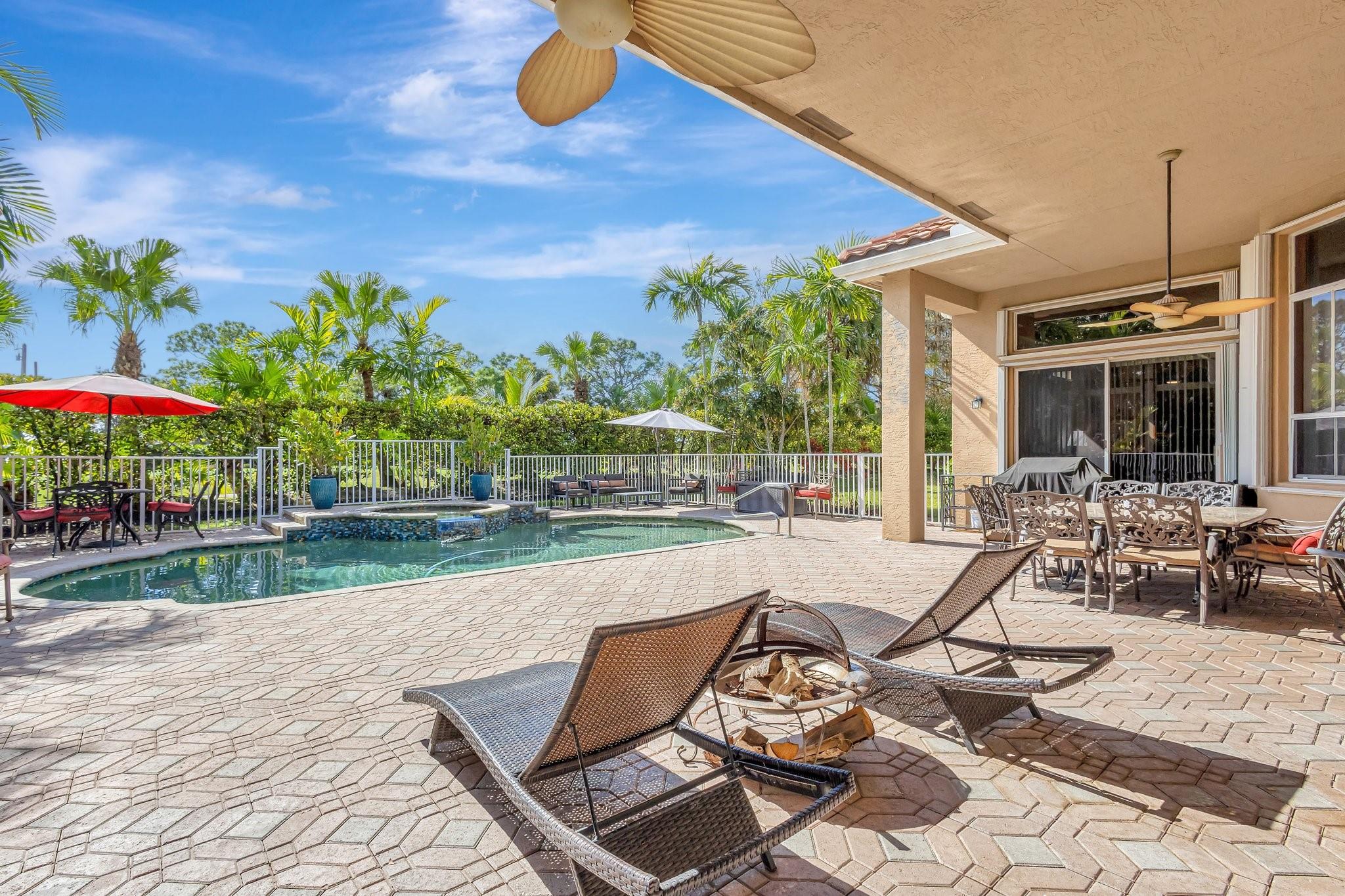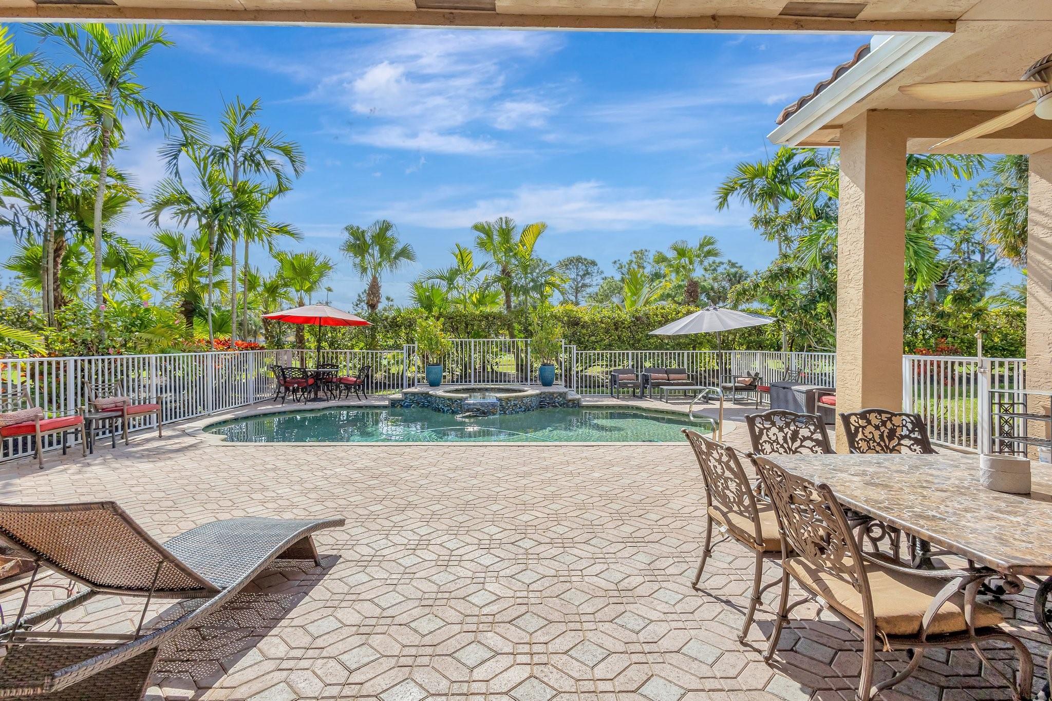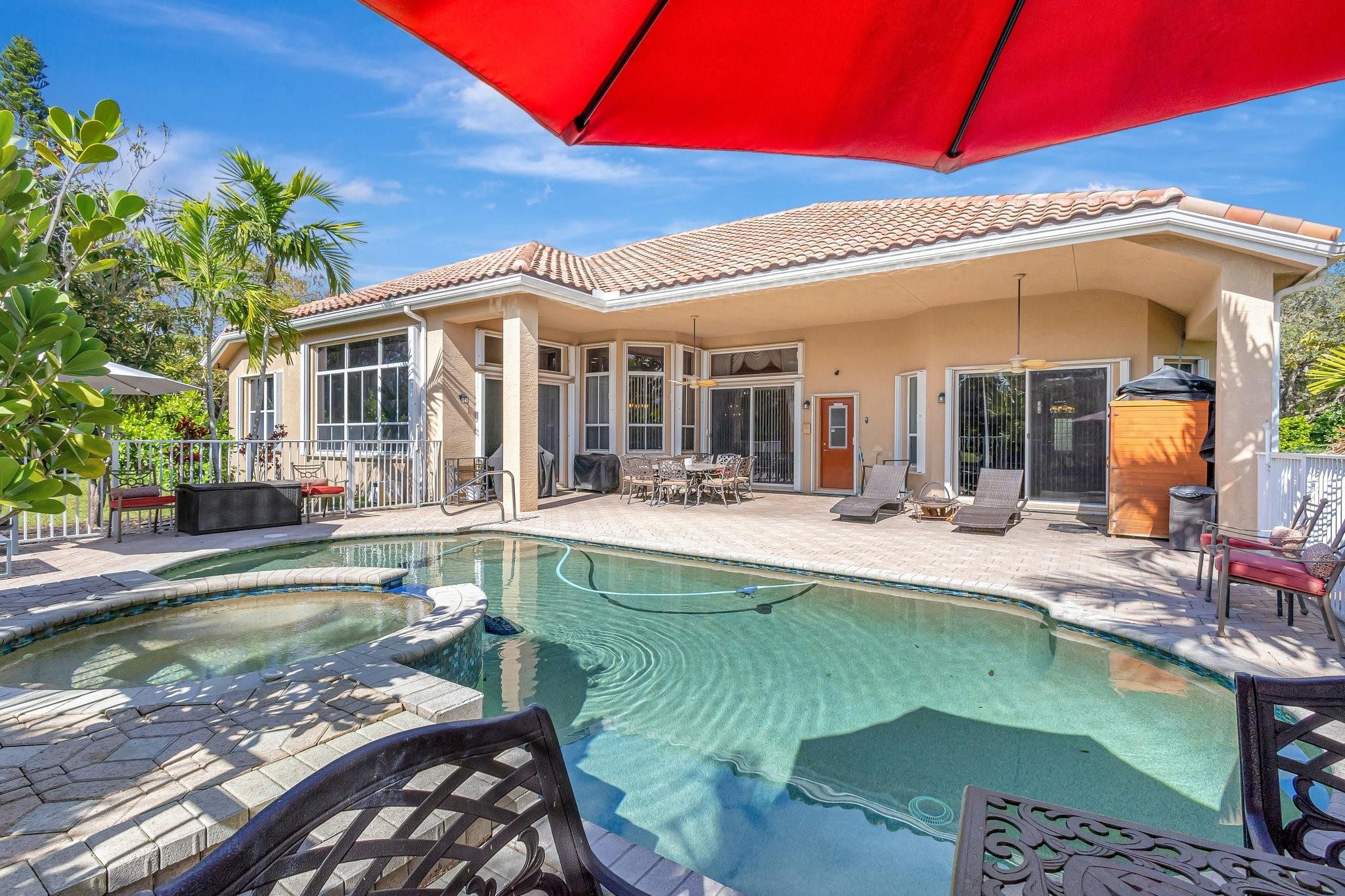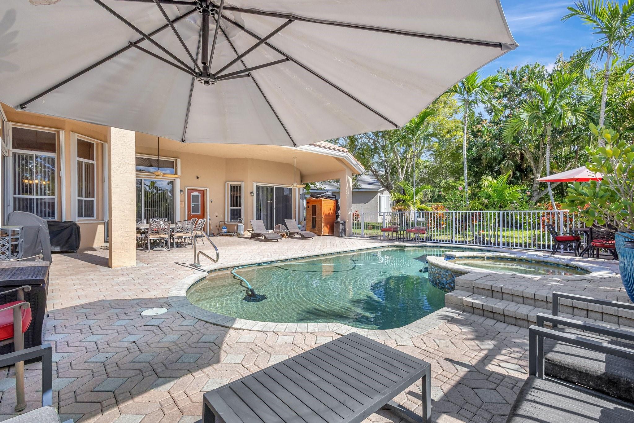 Interior photos coming soon. Freshy painted – Priced under appraisal / Binks Estates 5BR/3BA ranch pool home, split plan w/ soaring ceilings and crown molding – measuring 3,178 SF under air and 4,521 SF total. Enjoy a resort at home with 16th hole golf views, a gorgeous pool deck large enough for entertaining, heated refinished pebble tech saltwater pool w/spa, sauna + fruit trees! Upgrades incl. SS appliances, double convection ovens, new WIFI cooktop, 2 RUUD A/C units (air handlers + compressors w/Nest 2024), WH 2019, plantation shutters (2021), LED lighting, Dolby sound system in family room, hurricane impact front door, full accordion shutters, roof approx.14 yrs. Don’t miss this opportunity, schedule a showing today! All information is deemed reliable but must be verified by buyer