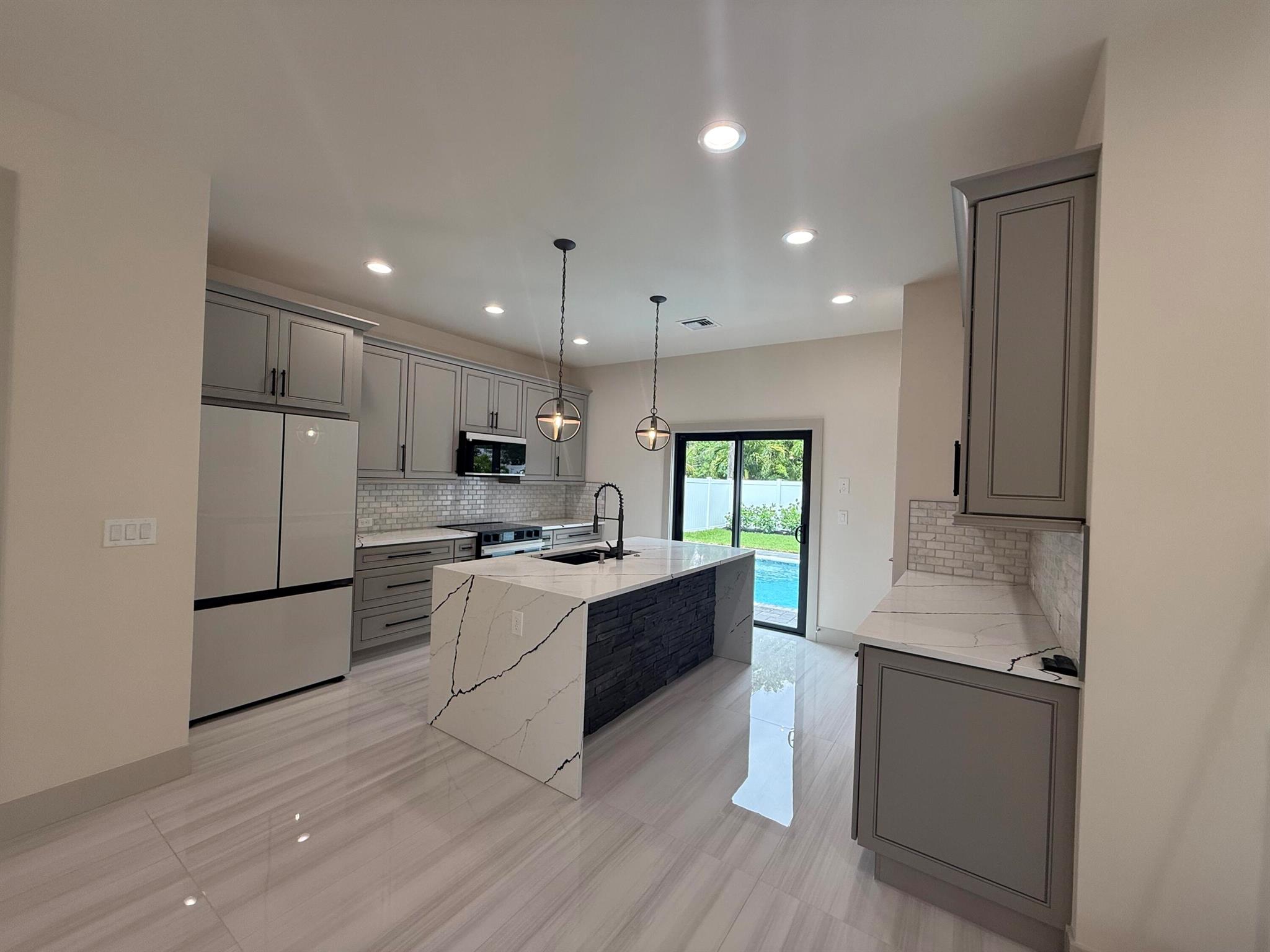 Insurance chaos got you down? Then this SUPERIOR BUILT ALL CONCRETE BLOCK BRAND NEW CONSTRUCTION is what you need. HOI is only $2,342 with a 2% wind! WOW! 24×48 porcelain tile, island w/ waterfall quartz, premium appliances, decorative stone accents, impact glass, 8′ solid core doors, tall ceilings & custom stair railing. Bedrooms, loft & laundry room are upstairs. The primary suite is large w/ a coffer ceiling, custom fitted WIC, dual sinks, MU vanity & large shower. Relax in the fenced yard w/ pool w/ deck jets, sun shelf & covered patio. Quiet cul-de-sac street w/ sidewalks, streetlights & a city park. Walk, bike or golfcart just 1/2 mile to Starbucks & Whole Foods or only 1.3 miles to coveted Atlantic Ave or just 1 mile to the beach, this home checks all the boxes. 100% turnkey,