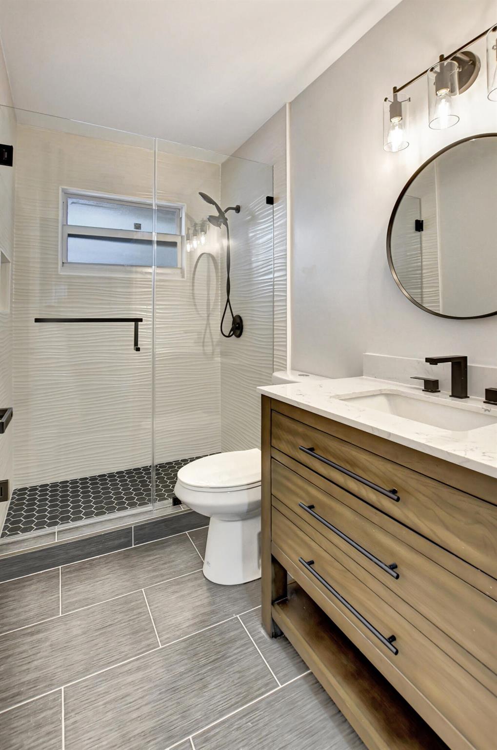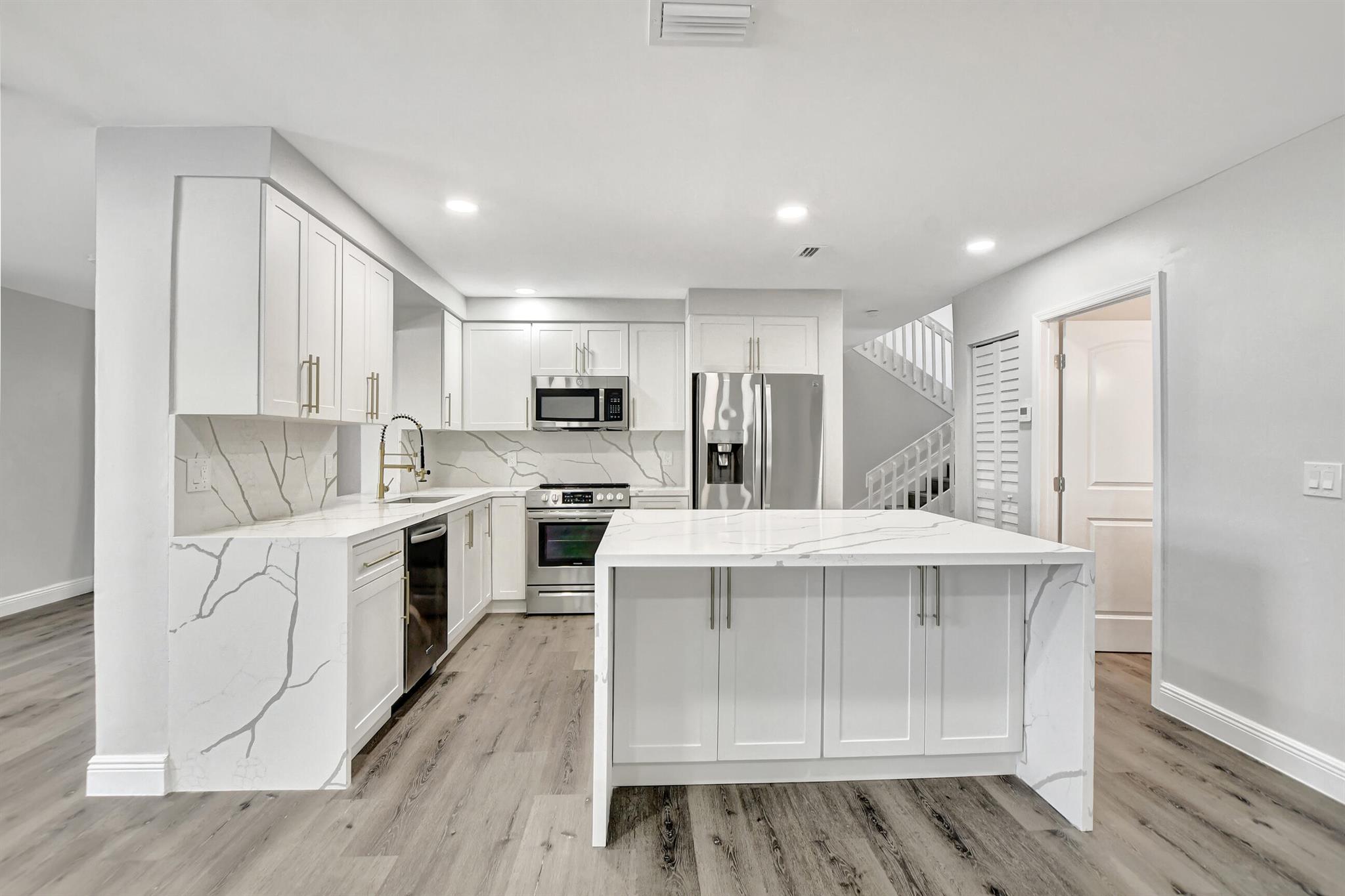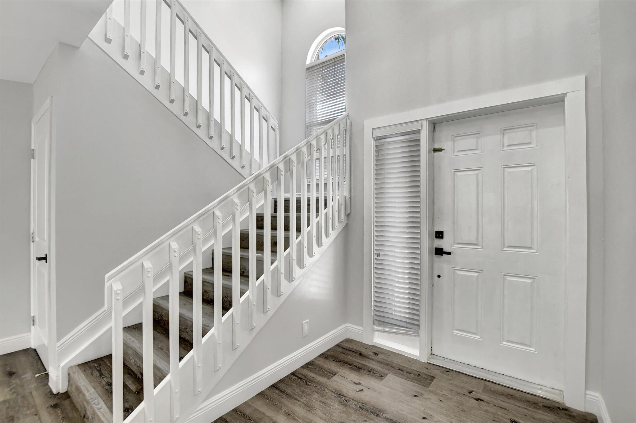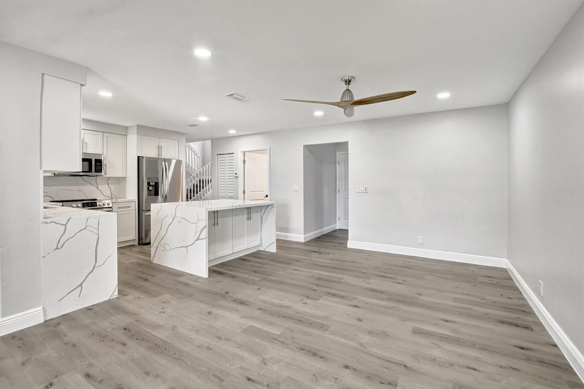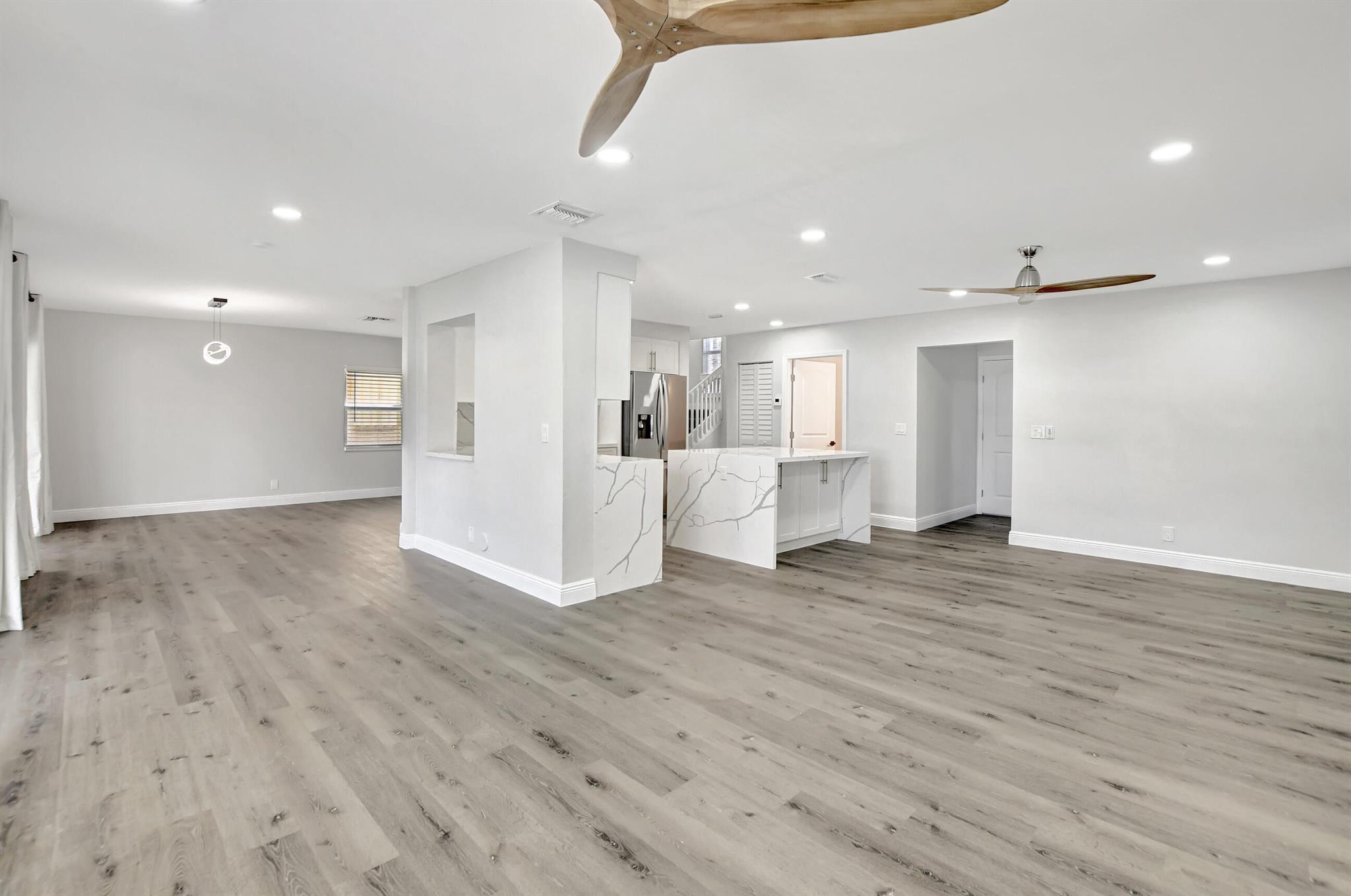 This gorgeous single family home in prestigious Boca Springs sits on a private lot with direct lake views, fully upgraded with 4 bedrooms, 2.5 baths, brand new roof 2025, hurricane impact windows & doors, brand new kitchen & bathrooms, vaulted ceilings, ideal open floor plan – offering the perfect blend of privacy, luxury and entertainment! Beautiful gourmet kitchen w/ waterfall quartz countertops, eat in island with extra storage on both sides, brand new appliances all overlooking the lake from main living areas! Primary suite with vaulted ceilings, walk- in closet and 2nd closet space, full 2 car garage, bonus storage area underneath the stairs, private laundry room with ample space for extra storage, private screened in porch – perfect for BBQs, family gatherings, ideal