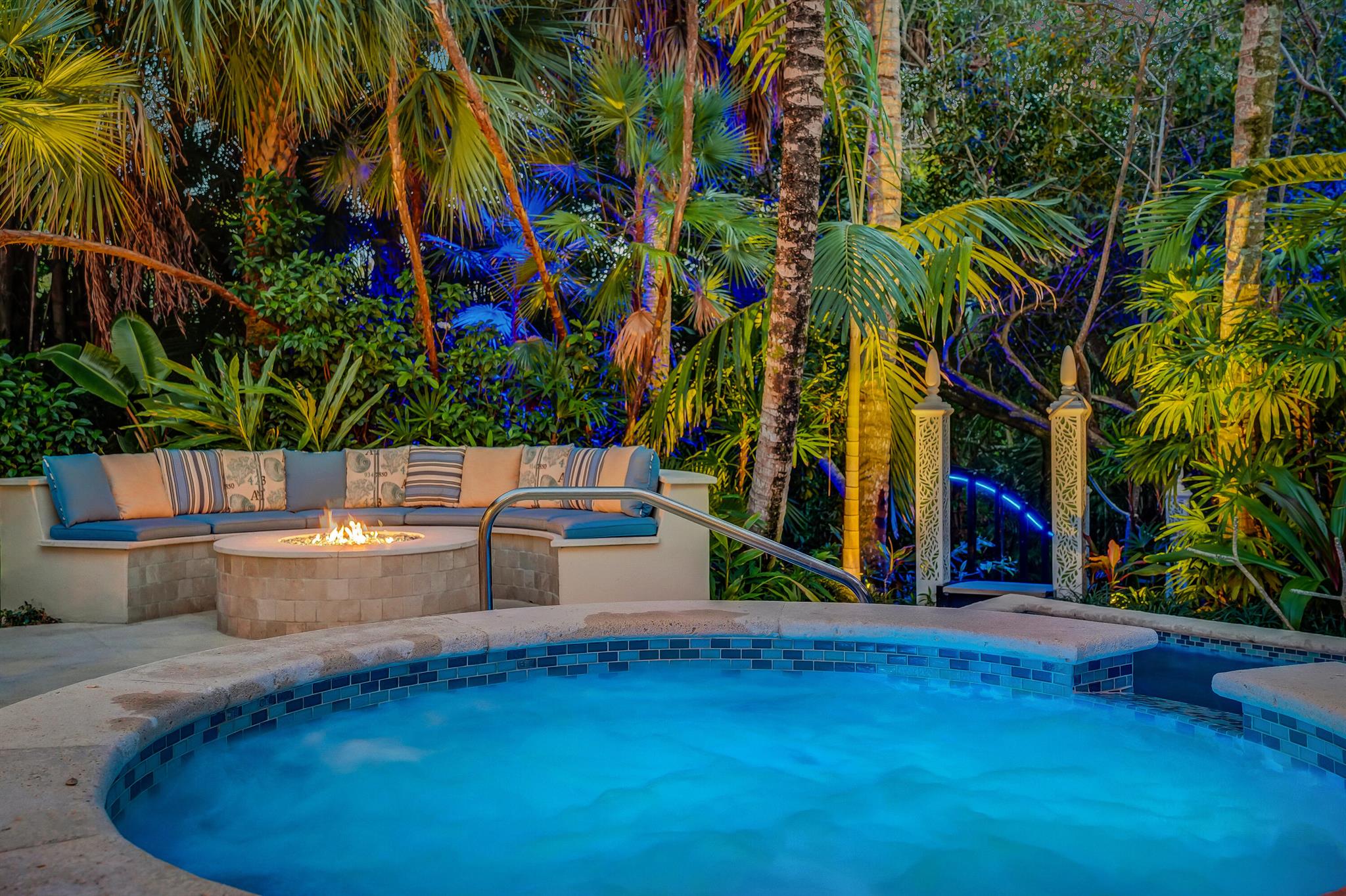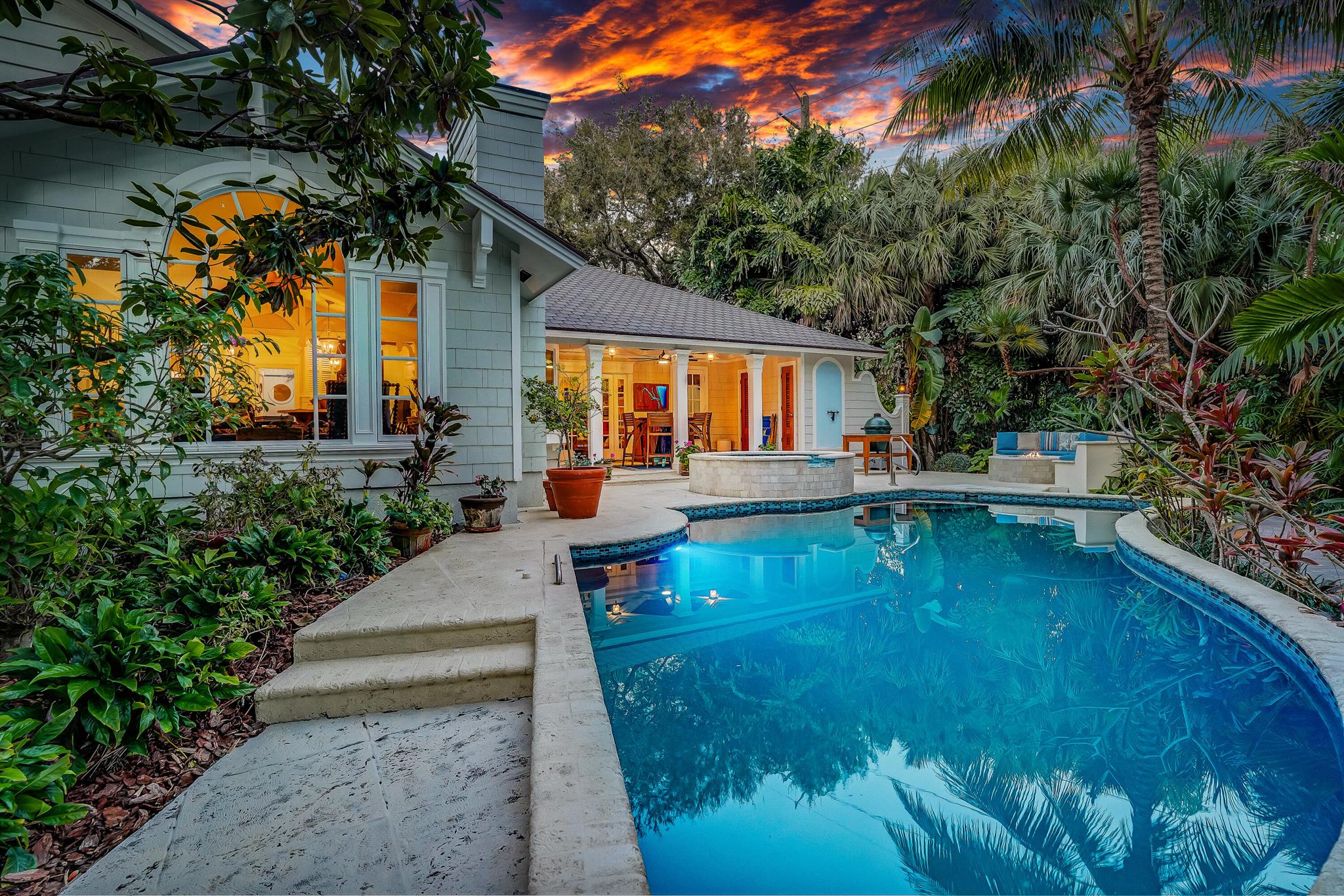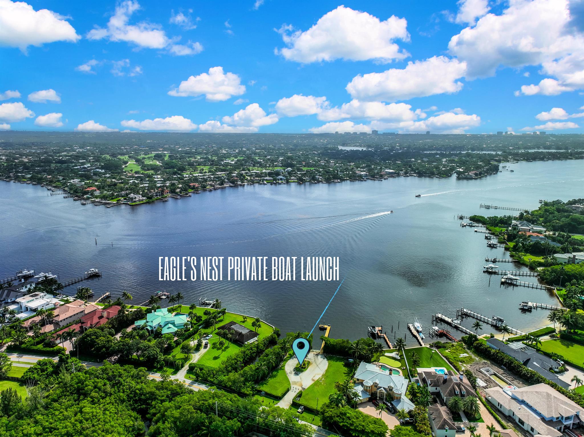 RARE! BOAT RAMP – 3 Bed, 2.5 Bath bespoke home w/impact glass, 14′ ceilings, pool, spa & fire pit on huge .63ac lot in coveted Eagle’s Nest, near Jupiter’s Inlet. Marvel at the custom kitchen w/ cherry island topped w/marble, mosaic butcher block, green slate sink, pantry & Sub-Zero & Viking appliances – open to a family room w/fireplace & breakfast nook. Next, a loggia w/ coffered ceiling & teak pool bath overlooking a spa & fire pit, both seating 8, heated pool w/ swim jet & a bridge taking you deep into your preserve. Inside, a shell stone bath w/ glass shower serves 2 guest bedrooms & formal living & dining rooms. The Main Bedroom boasts: built-in w/desk, walk-in closet & wardrobe, 2x vanities, glass shower & alcove w/soaking tub. Laundry Room, Slab for Boat. SIMPLY A MUST SEE HOME!