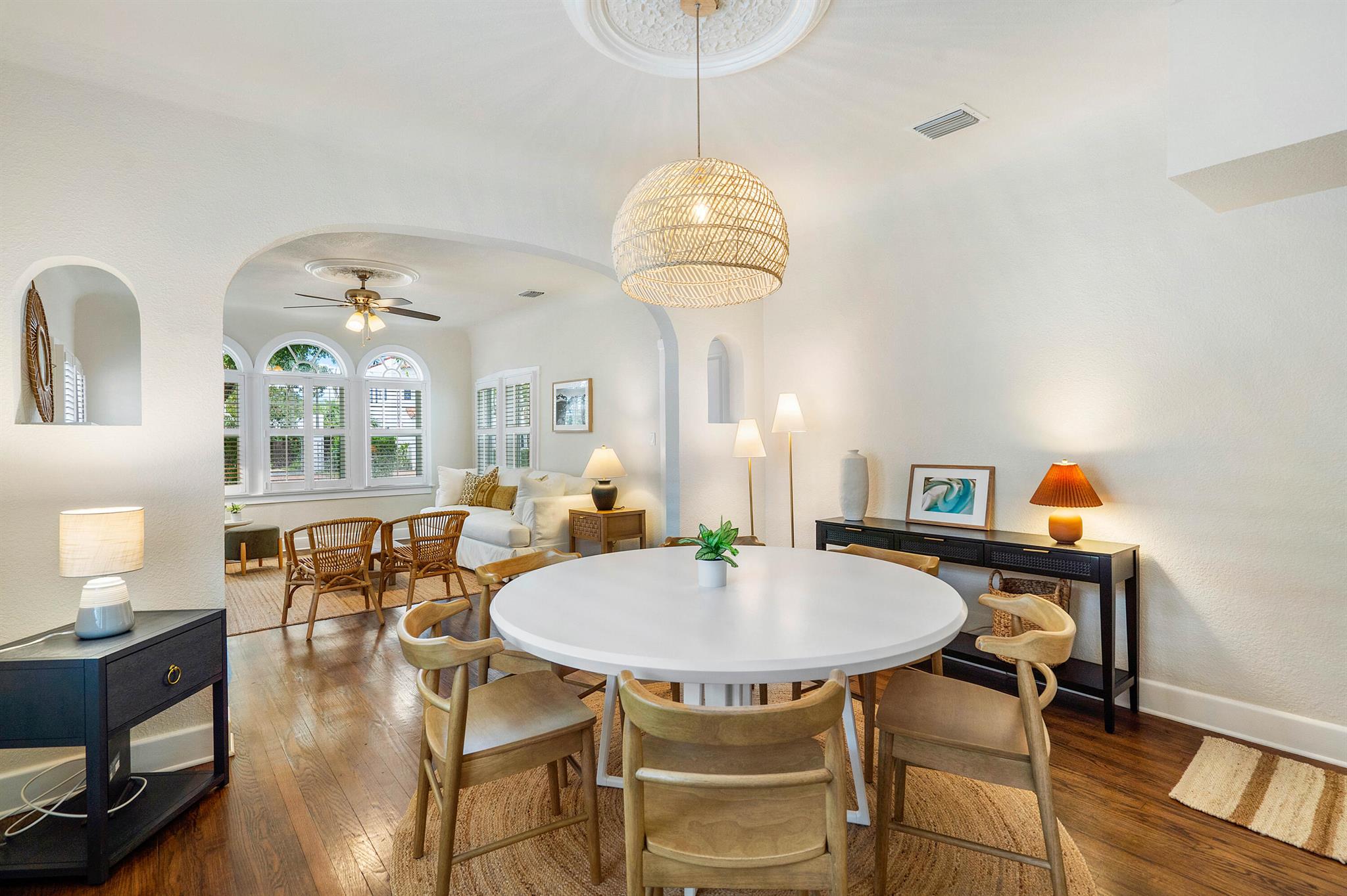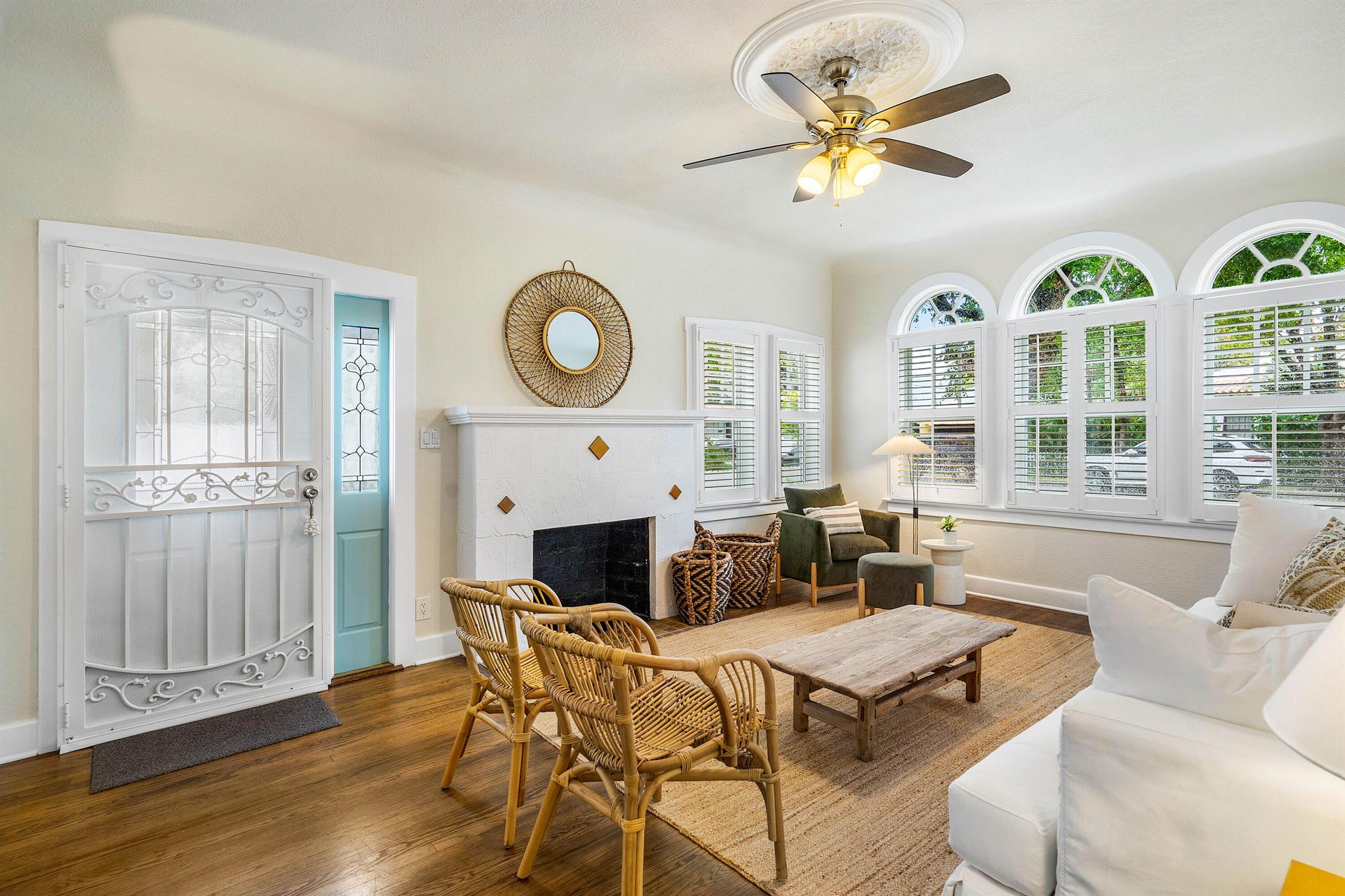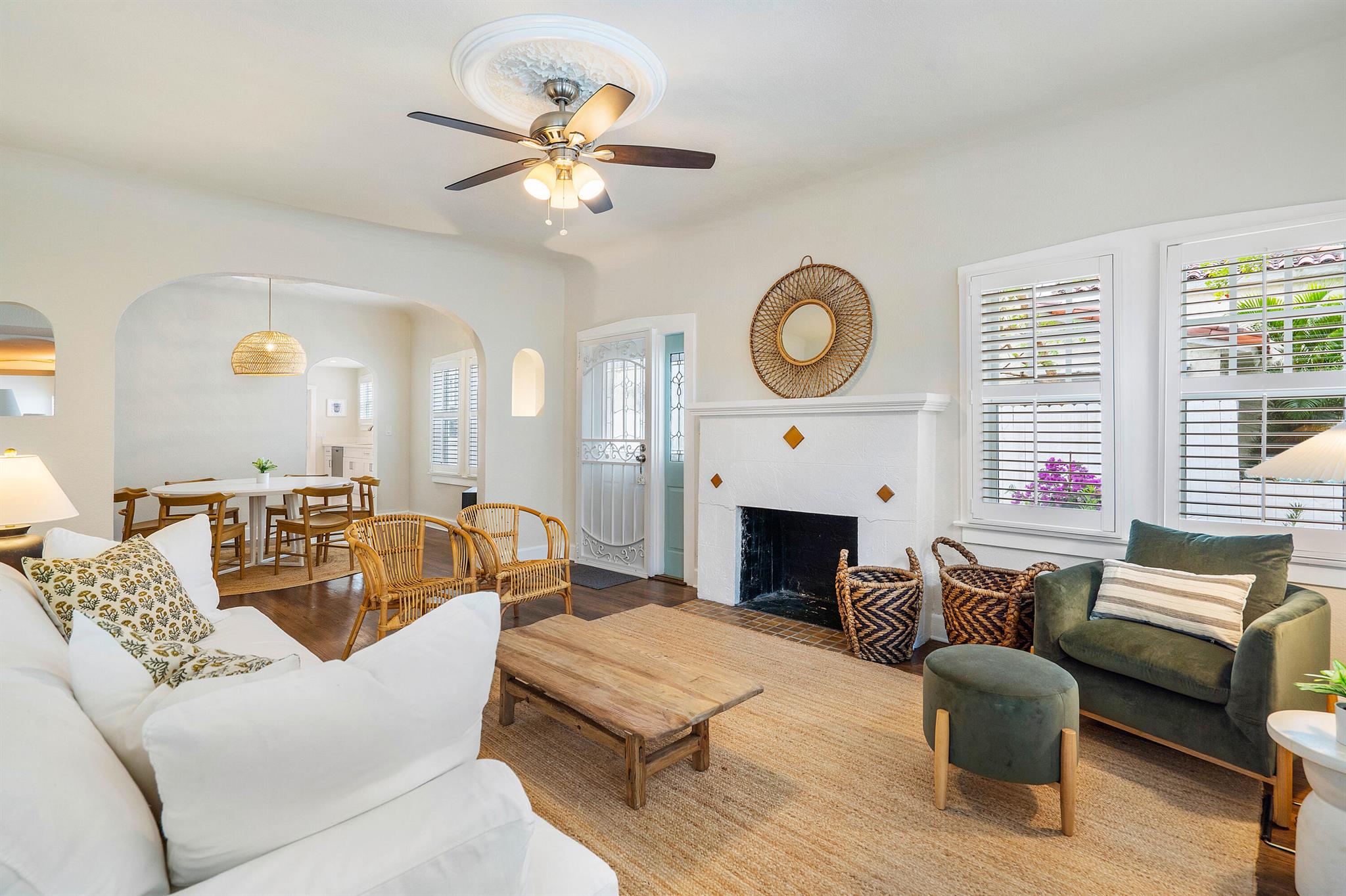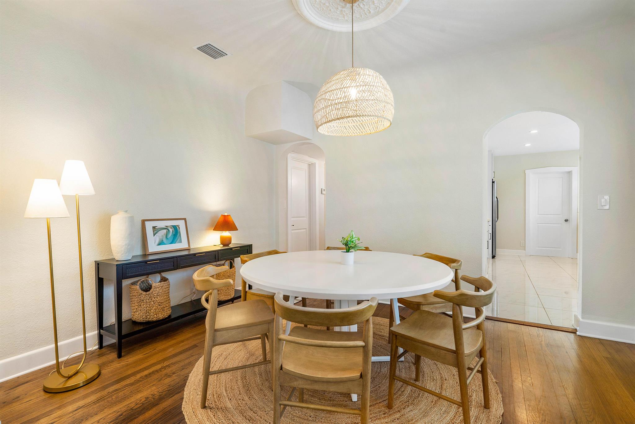 Discover Palm Beach glamour in this 3 bedroom, 2 bathroom, historic district home in charming Old Northwood. Minutes from downtown and close to the scenic waterfront, location is great for leisurely bike rides or walks down lovely tree lined streets. Property features full impact windows, is newly painted in/out, and has beautiful hardwood floors. Kitchen features white wood cabinets, stainless steel appliances, & classic quartz countertops. Plantation shutters adorn windows & time-honored, arched doorways add much warmth. Detached 1 car garage allows for much storage and a proper laundry room. One may opt to convert this structure into an accessory dwelling unit for passive income. The spacious front yard and brick paved courtyard are perfect for outdoor activities.