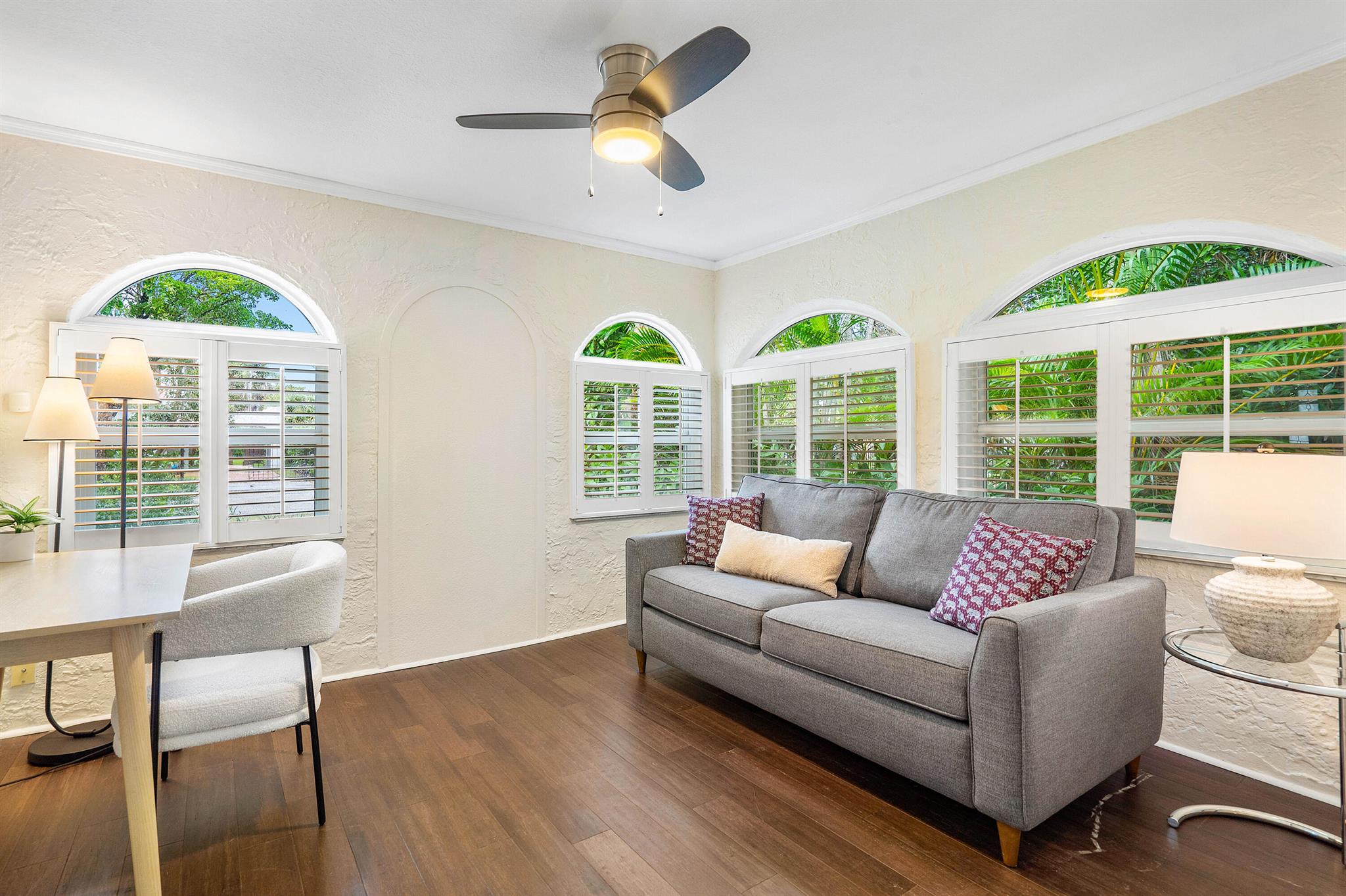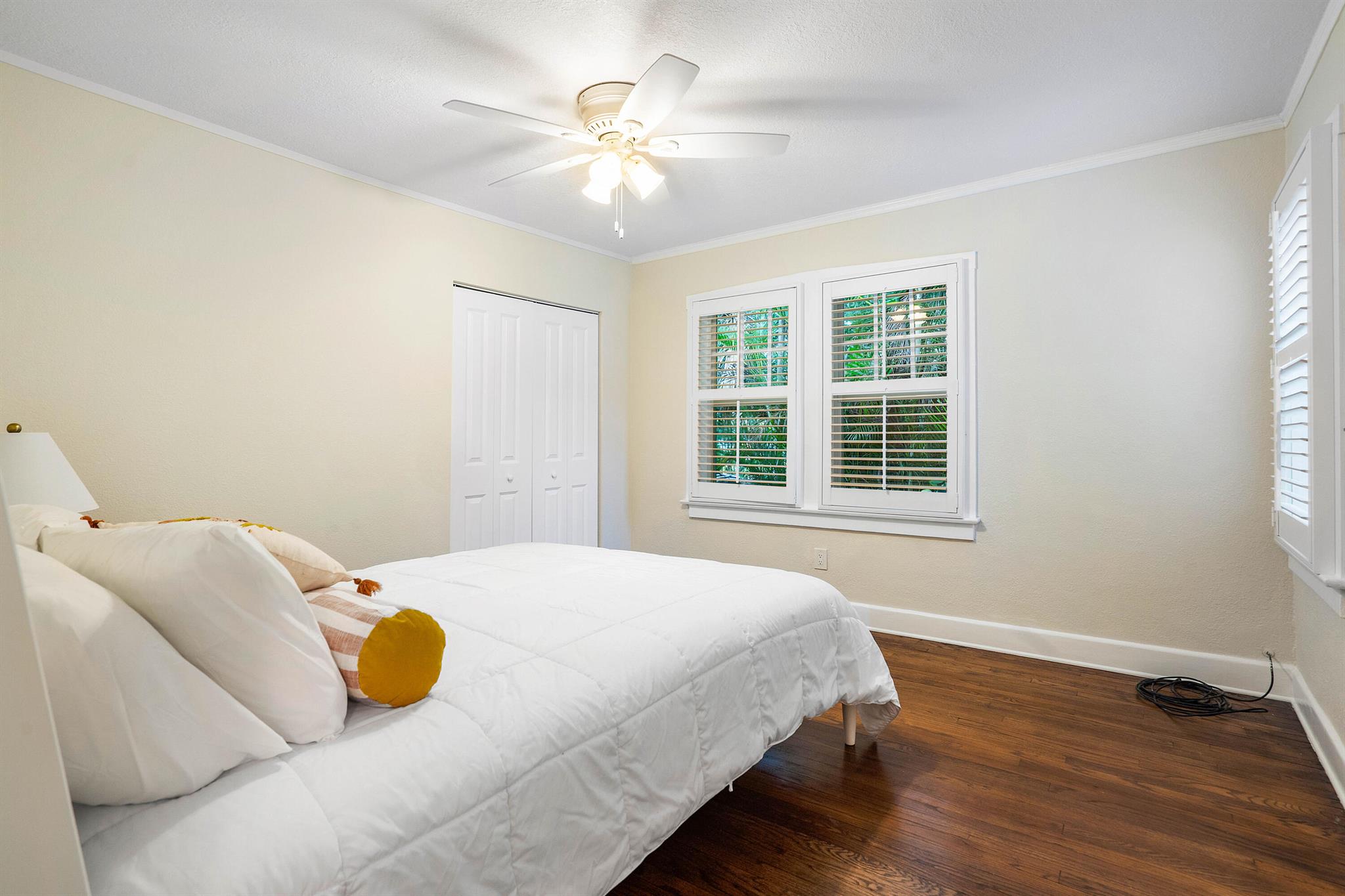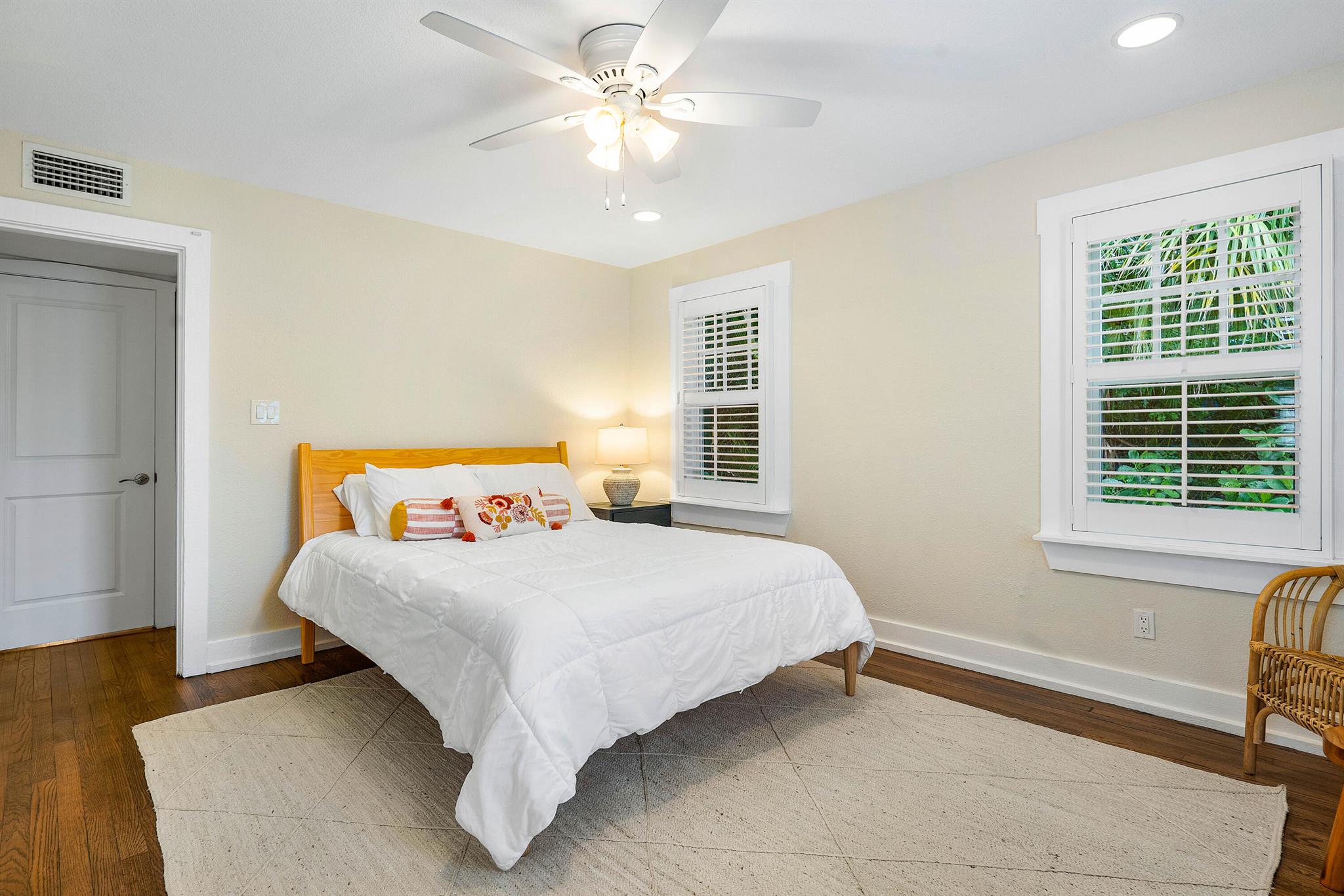 Discover Palm Beach glamour in this 3 bedroom, 2 bathroom, historic district home in charming Old Northwood. Minutes from downtown and close to the scenic waterfront, location is great for leisurely bike rides or walks down lovely tree lined streets. Property features full impact windows, is newly painted in/out, and has beautiful hardwood floors. Kitchen features white wood cabinets, stainless steel appliances, & classic quartz countertops. Plantation shutters adorn windows & time-honored, arched doorways add much warmth. Detached 1 car garage allows for much storage and a proper laundry room. One may opt to convert this structure into an accessory dwelling unit for passive income. The spacious front yard and brick paved courtyard are perfect for outdoor activities.