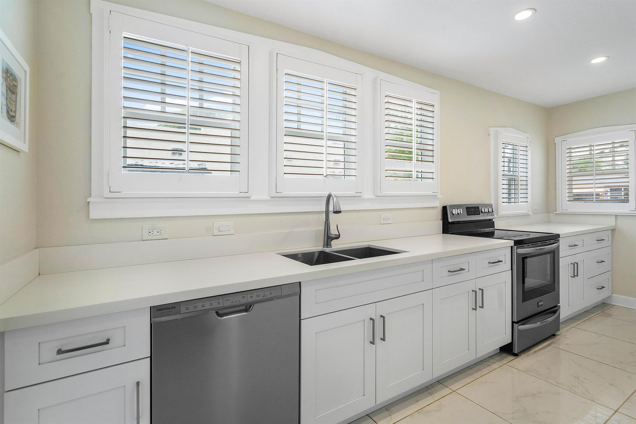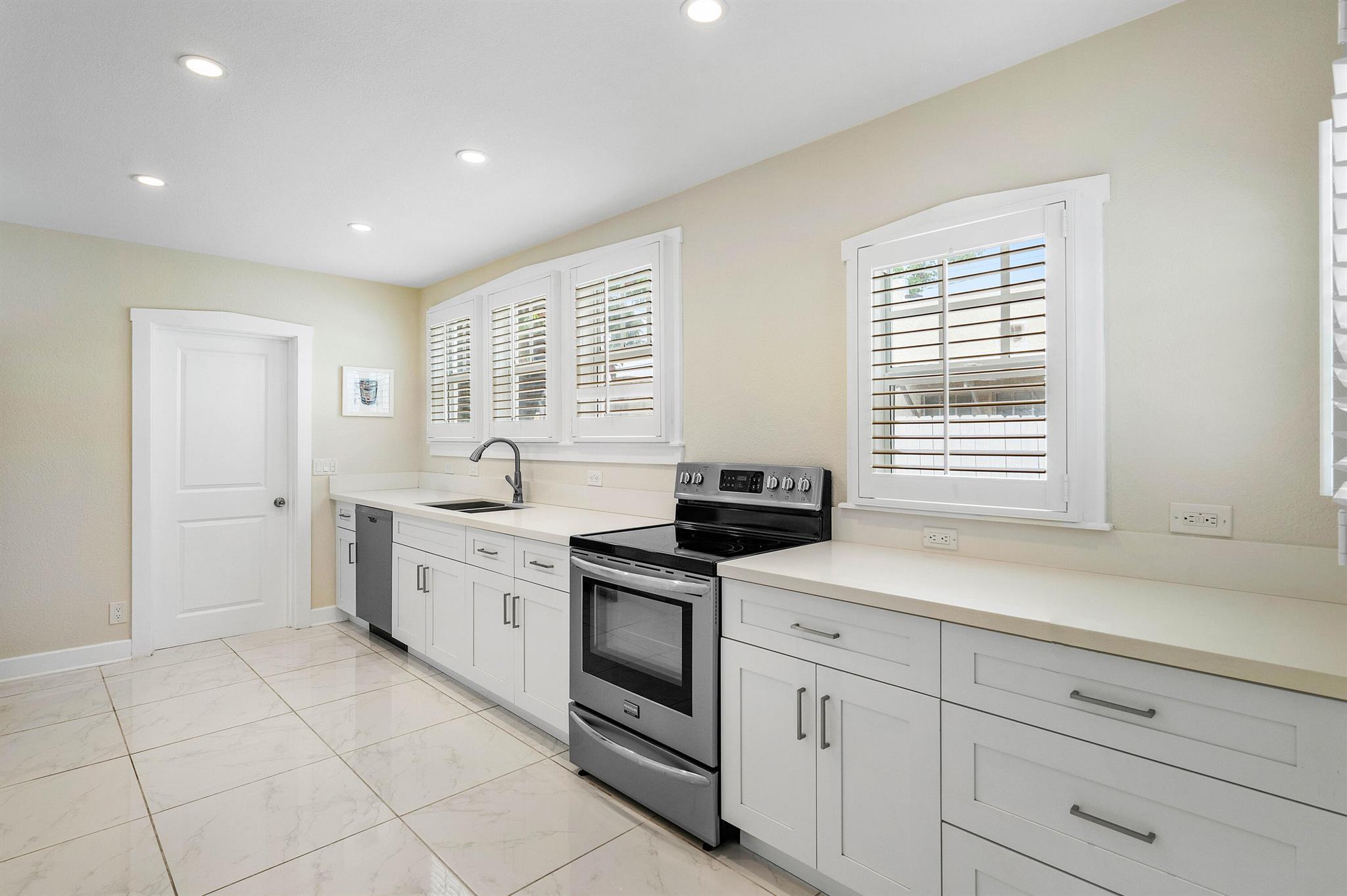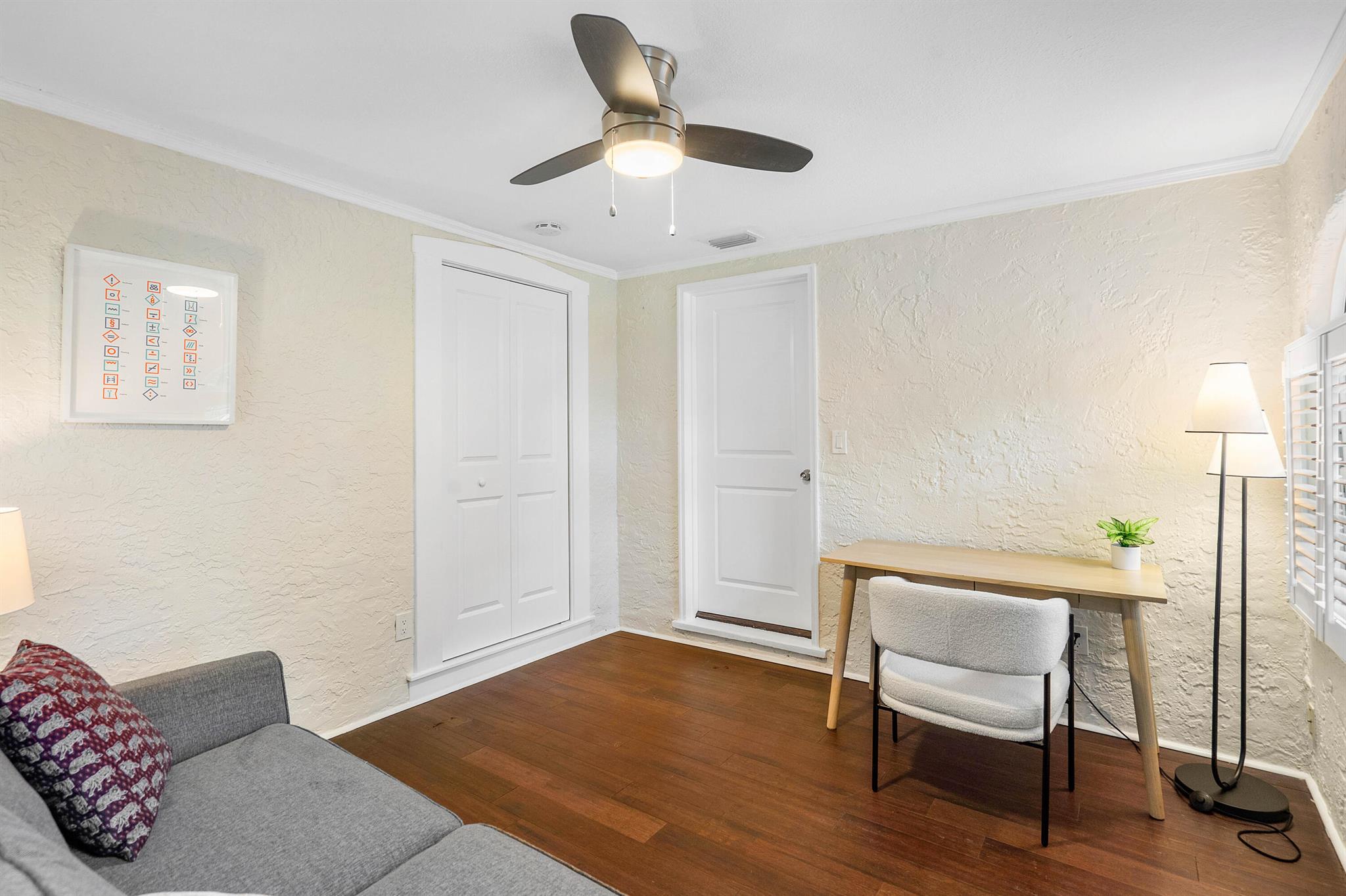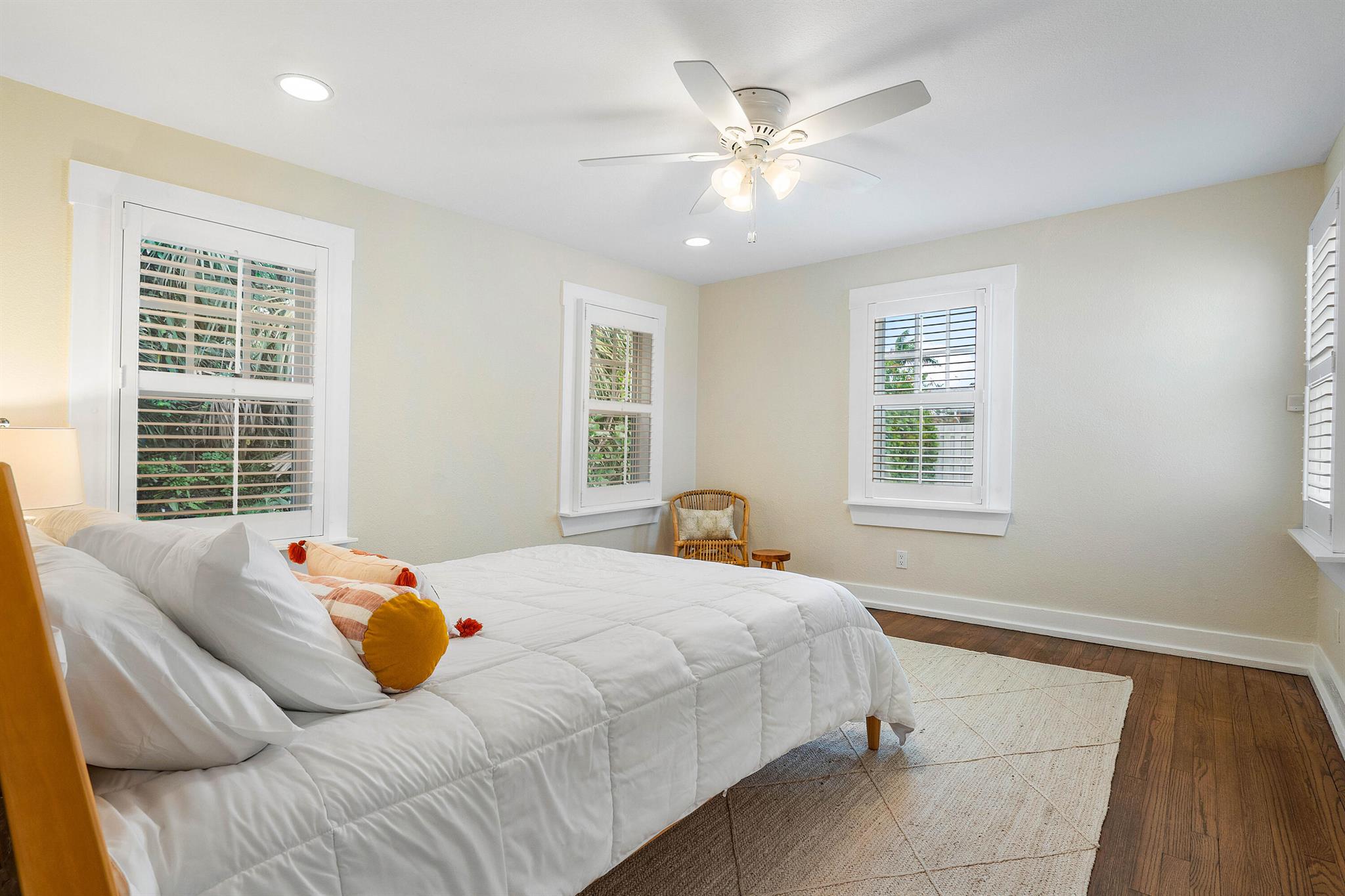 Discover Palm Beach glamour in this 3 bedroom, 2 bathroom, historic district home in charming Old Northwood. Minutes from downtown and close to the scenic waterfront, location is great for leisurely bike rides or walks down lovely tree lined streets. Property features full impact windows, is newly painted in/out, and has beautiful hardwood floors. Kitchen features white wood cabinets, stainless steel appliances, & classic quartz countertops. Plantation shutters adorn windows & time-honored, arched doorways add much warmth. Detached 1 car garage allows for much storage and a proper laundry room. One may opt to convert this structure into an accessory dwelling unit for passive income. The spacious front yard and brick paved courtyard are perfect for outdoor activities.