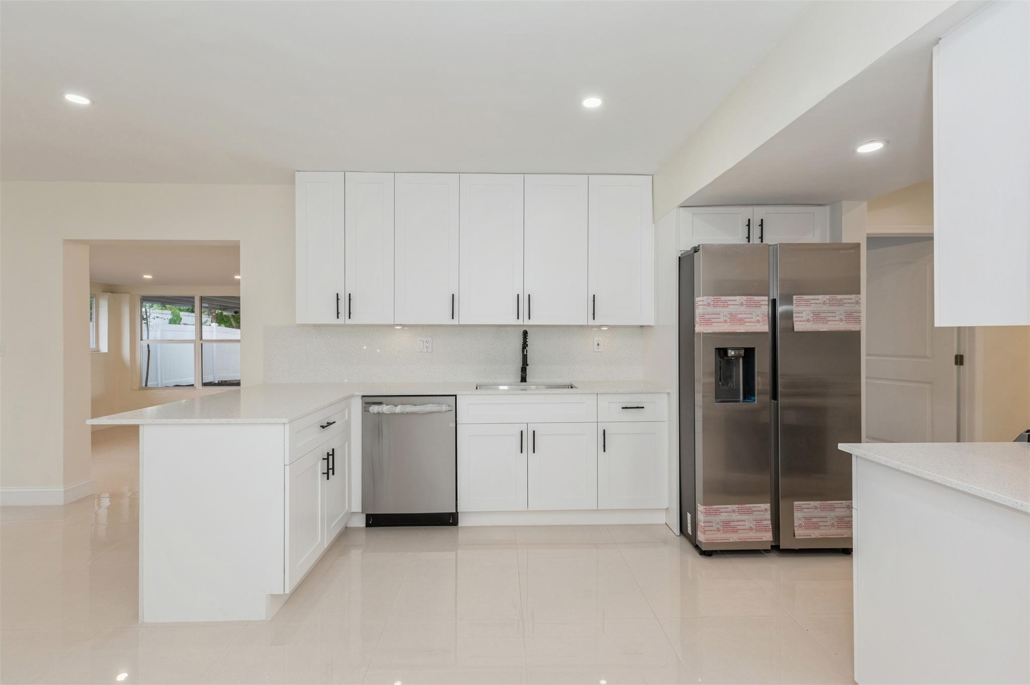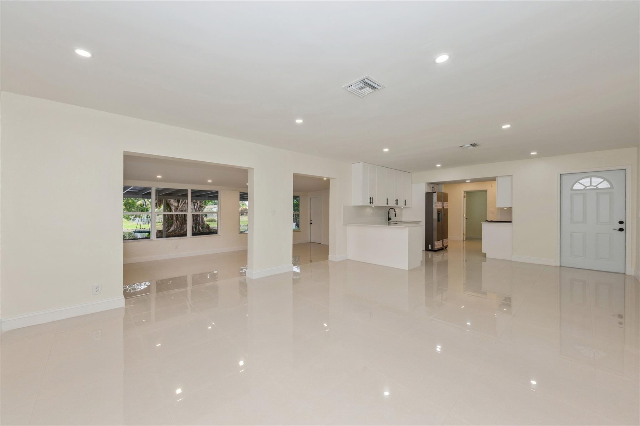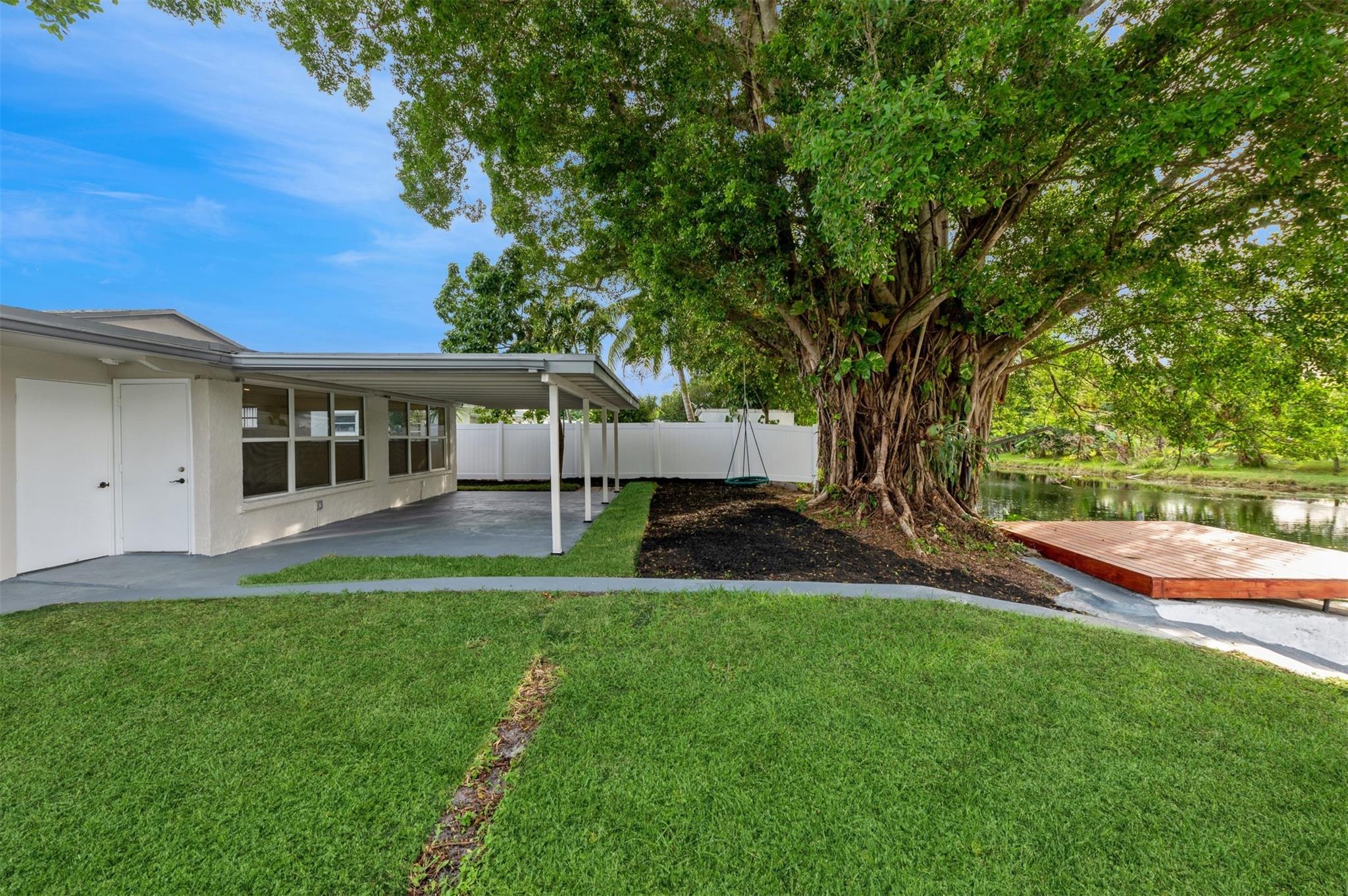 Discover this stunning waterfront 3/2, plus 2 flex rooms, single family home. Step inside to the inviting warm welcoming feeling throughout. Be prepare to enjoy this great home: Featuring a large new kitchen with quartz countertops/backsplash, large cabinetry, new SS appliances; Freshly painted inside/outside; 24×24 porcelain floor throughout; Ceiling lights all around; Brand new roof; Hurricane shutters; newer A/C; New sprinklers system. You will love not only the size but the view from the entertainment/family room. Fenced-in back yard with covered patio, enjoy the gorgeous water views from your private deck. Space to park a boat or just watch boats glide by from your own backyard. Enjoy the freedom of no homeowner HOA fees. See supplement..