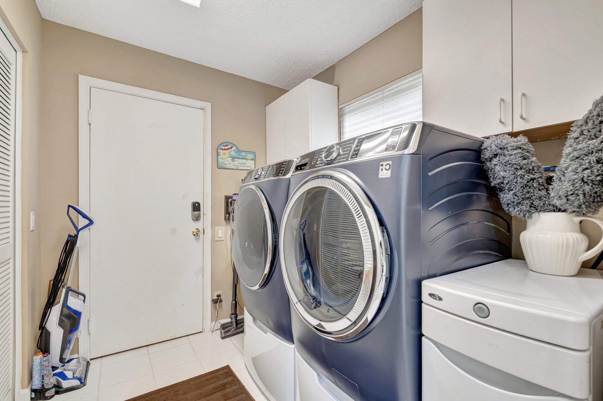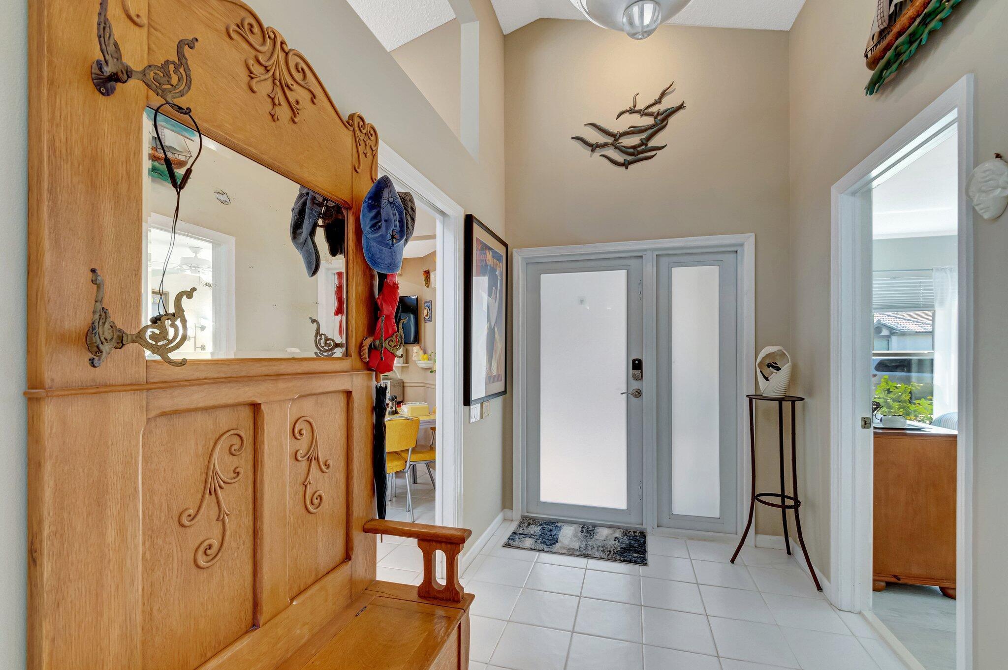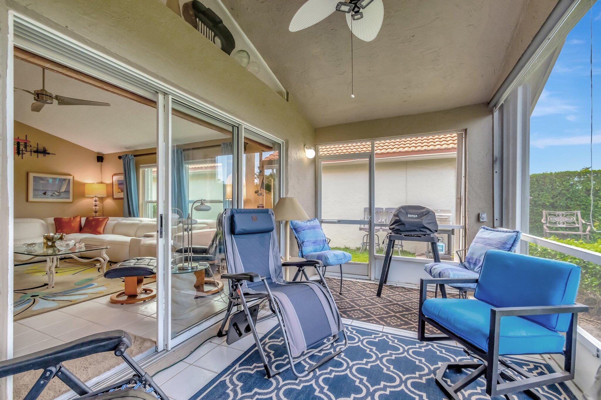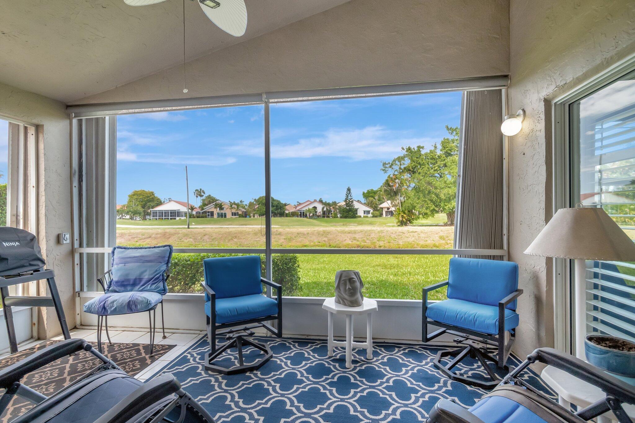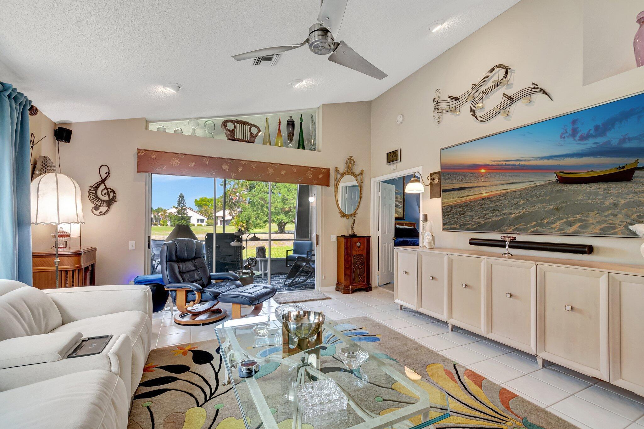Charming 2-bed, 2-bath + den home in the desirable Lakeridge community! This light and bright, move-in-ready gem features full impact windows and additional accordion shutters for added protection. Enjoy peace of mind with a new AC (2022), new water heater, and a full-house filtration system and roof 2012. The home boasts a new front door, new garage door, and new washer/dryer. Meticulously maintained, offering a serene view of the water and golf course. Low HOA and a vibrant community make this home an exceptional find!