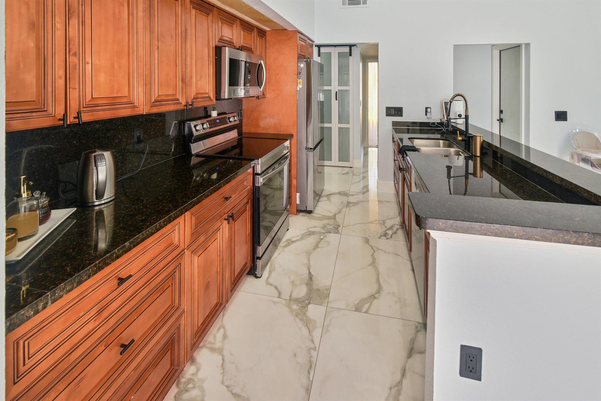 Discover this beautifully updated 3-bedroom, 2-bath home with a 2-car garage in a prime West Palm Beach location! Designed for both comfort and style, this home features soaring vaulted ceilings and a spacious, open layout. Enjoy peace of mind with impact windows installed partially throughout, including the large family room & two in the living room. Recent upgrades include brand-new stainless steel kitchen appliances, remodeled bedrooms & bathrooms, all new tile flooring, a roof that’s just a year old, water heater installed 2020, & 2022 A/C for energy-efficient cooling.Step outside to a fully fenced backyard, perfect for entertaining or relaxing in privacy. With no HOA, you have the freedom to personalize your space without restrictions.