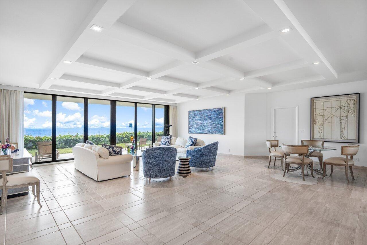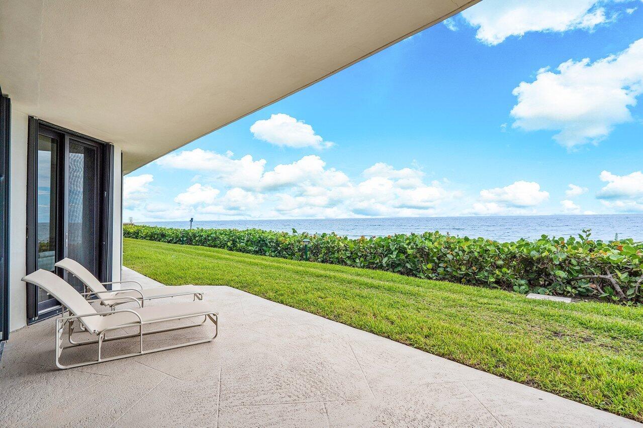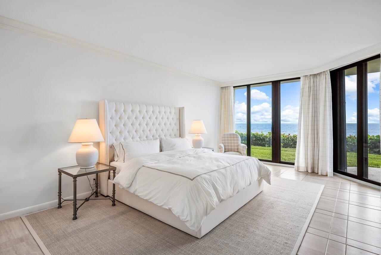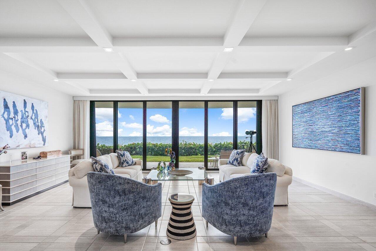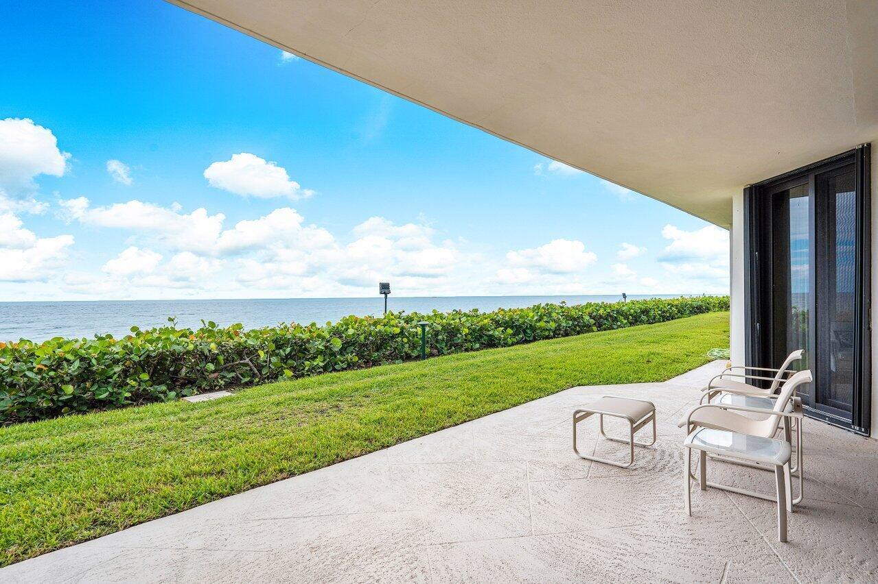 Take in unending crystal blue ocean views from this stunningly renovated first floor condominium in sought after Sloans Curve. A gracious foyer leads to the kitchen, dining and living spaces, beautifully illuminated through the large hurricane impact sliding doors extending from the new marble floors to the coffered ceilings. The new kitchen features a granite topped island, stainless steel appliances, and built-in wine cooler. The spacious master suite is adorned with automatic drapes, wood floors and quartz bathroom counters.