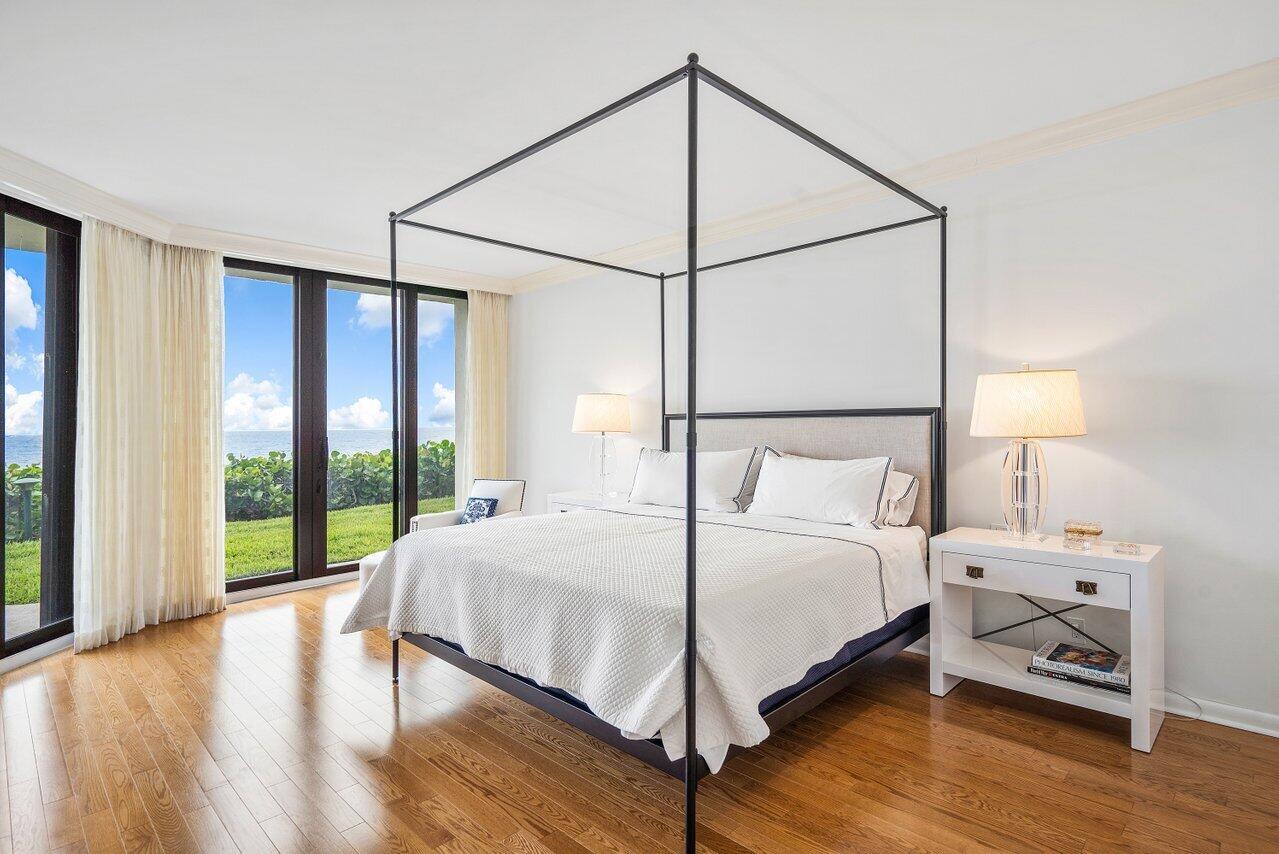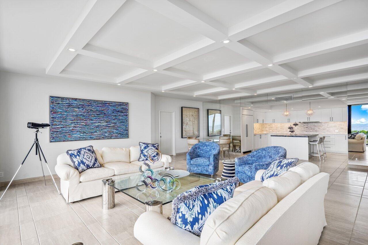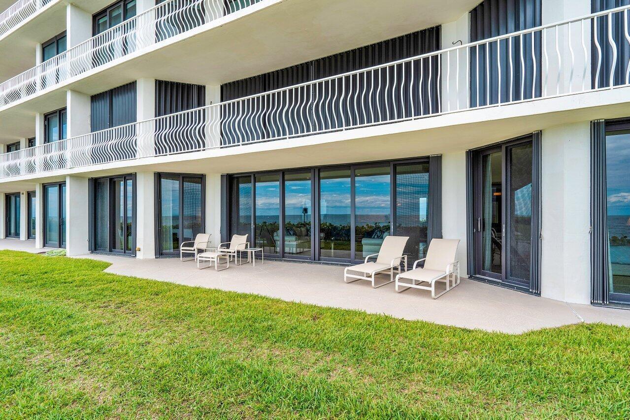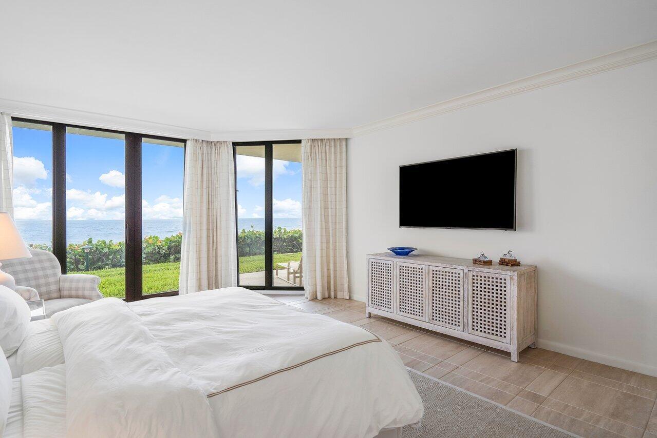 Take in unending crystal blue ocean views from this stunningly renovated first floor condominium in sought after Sloans Curve. A gracious foyer leads to the kitchen, dining and living spaces, beautifully illuminated through the large hurricane impact sliding doors extending from the new marble floors to the coffered ceilings. The new kitchen features a granite topped island, stainless steel appliances, and built-in wine cooler. The spacious master suite is adorned with automatic drapes, wood floors and quartz bathroom counters.
