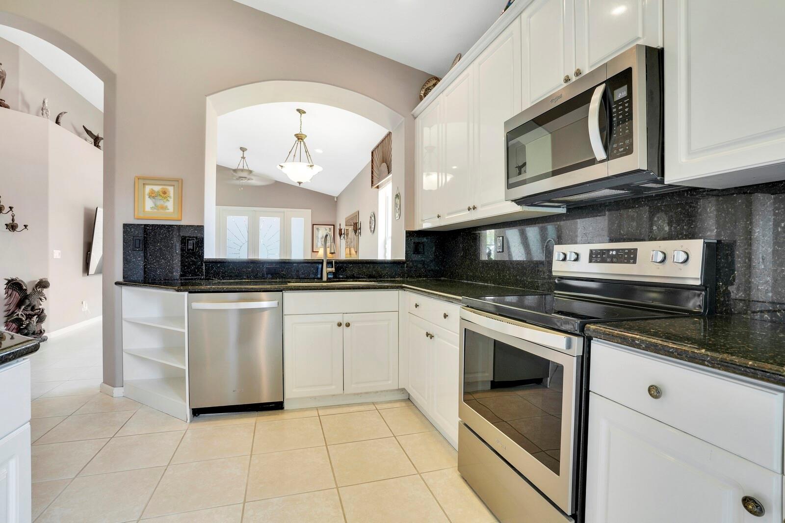Immaculately maintained home with a NEW 2023 roof, situated on one of the largest corner lots in the community. This home features vaulted ceilings, a split floor plan, and a renovated kitchen with granite countertops, 42-inch cabinets, and newer appliances. It also offers full hurricane protection, including an upgraded hurricane-rated garage door, amazing curb appeal, upgraded lighting, a lit-up driveway, and a screened-in patio with a privacy glass wall. The third bedroom, currently used as a den, lacks a closet but is ideal as a second living room or office. The AC unit was replaced in 2020, and the water heater was updated in 2016. Experience true resort-style living with access to an updated clubhouse, tennis courts, bocce, pickleball, a fitness center, and a pool.