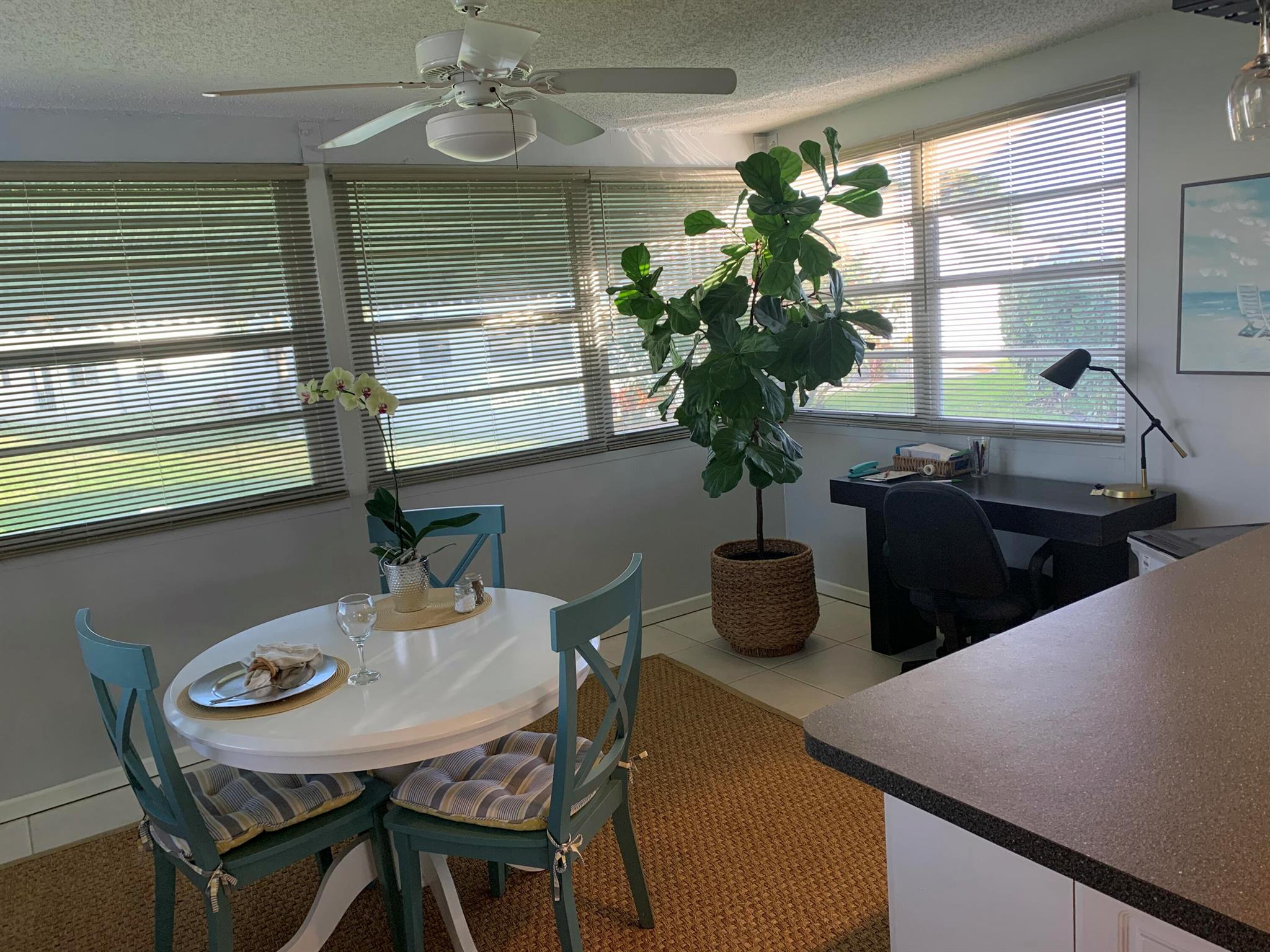 Why buy a condo when you can live in a 2 bedroom house with a garage that has a 2022 A/C, 2020 new roof, plantation shutters, updated electrical boxes and updated kitchen. This beautifully appointed home can be bought with or without the furniture – everything down to the silverware!! Truly a move in ready home. You will not be disappointed in viewing this property.
