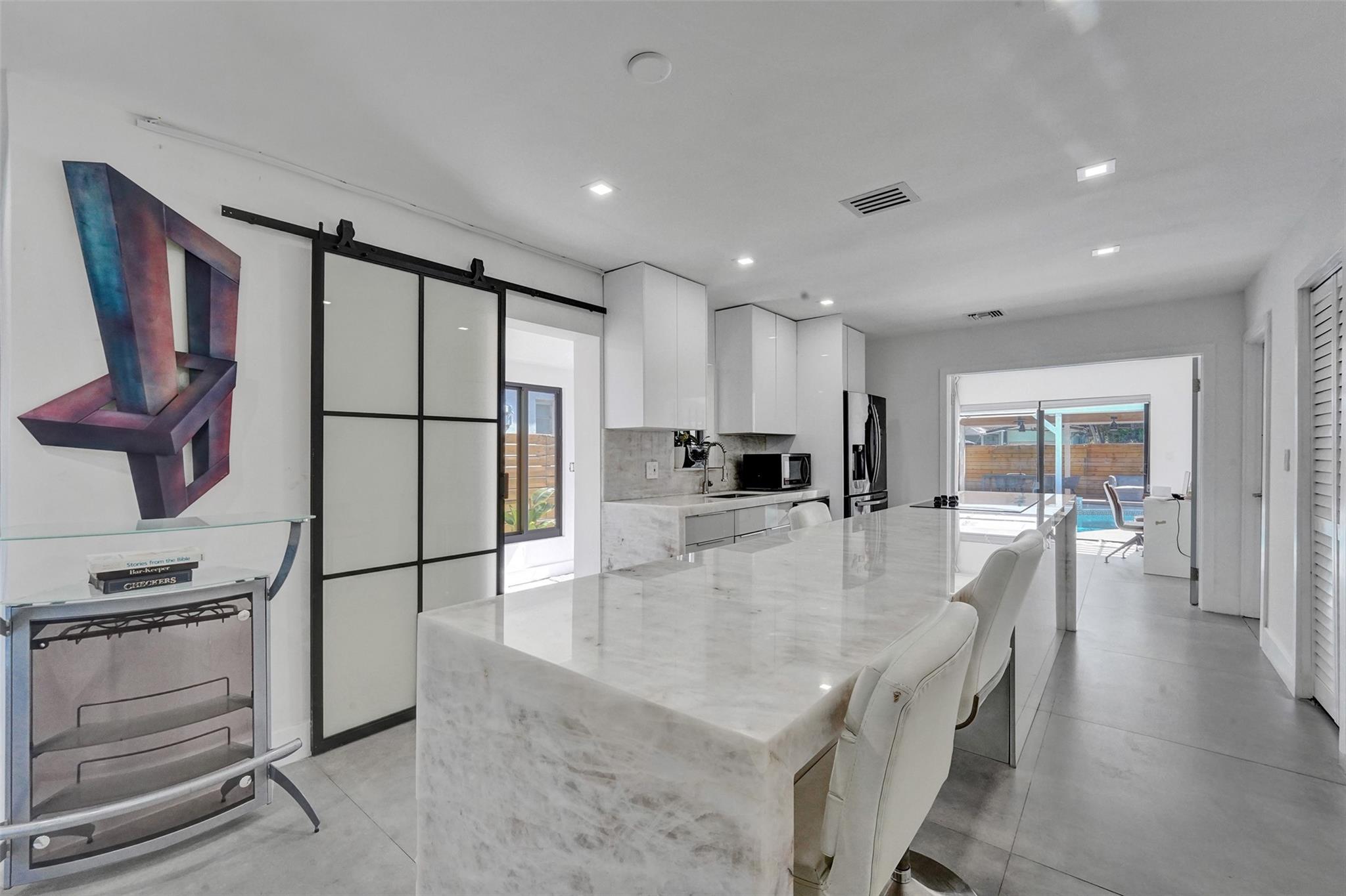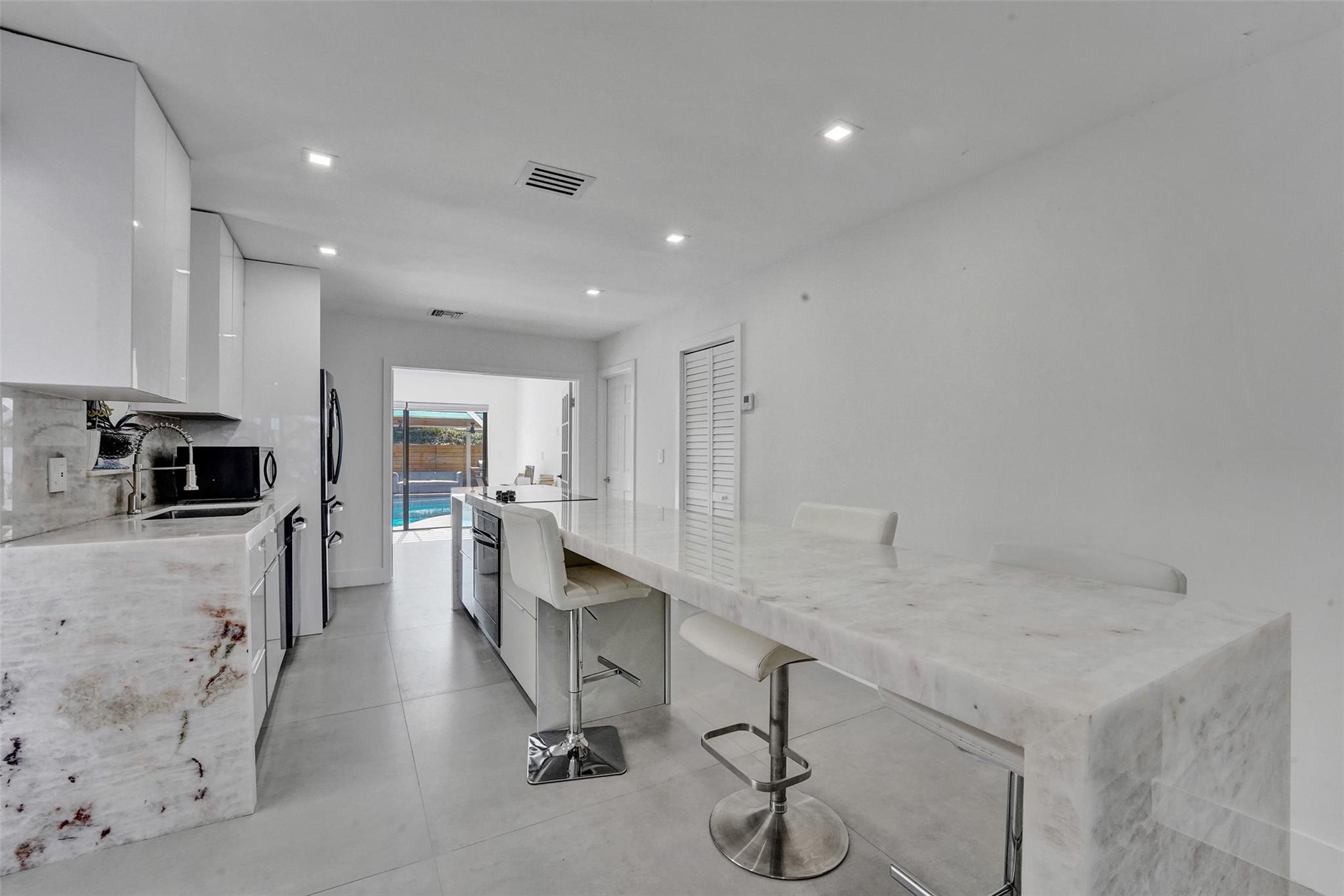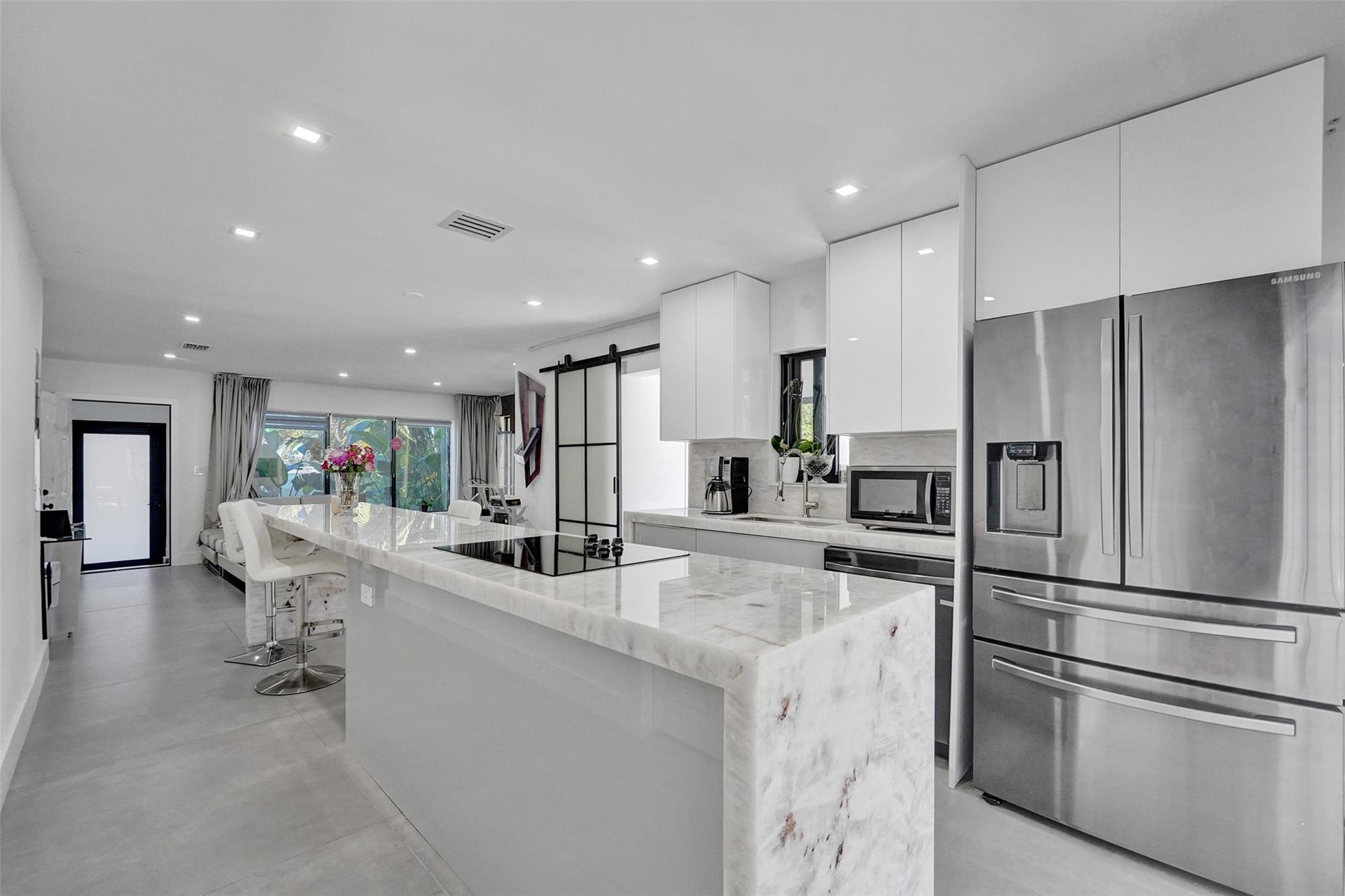 Step into modern luxury in this exquisite home in vibrant East Hollywood, just minutes from the beach. The open layout features a custom Italian kitchen with quartz countertops and state-of-the-art appliances. Large impact windows illuminate the space, enhancing both beauty and security. Relax in the spa-like bathroom with a sophisticated clawfoot tub and elegant finishes. Outdoors, enjoy a private oasis with a custom pergola and stunning Versace-style pool—perfect for entertaining. The marble pool deck adds an extra touch of elegance. This turnkey home also boasts custom closets and upgraded PVC plumbing. Seller financing available, making it an attractive opportunity for buyers.