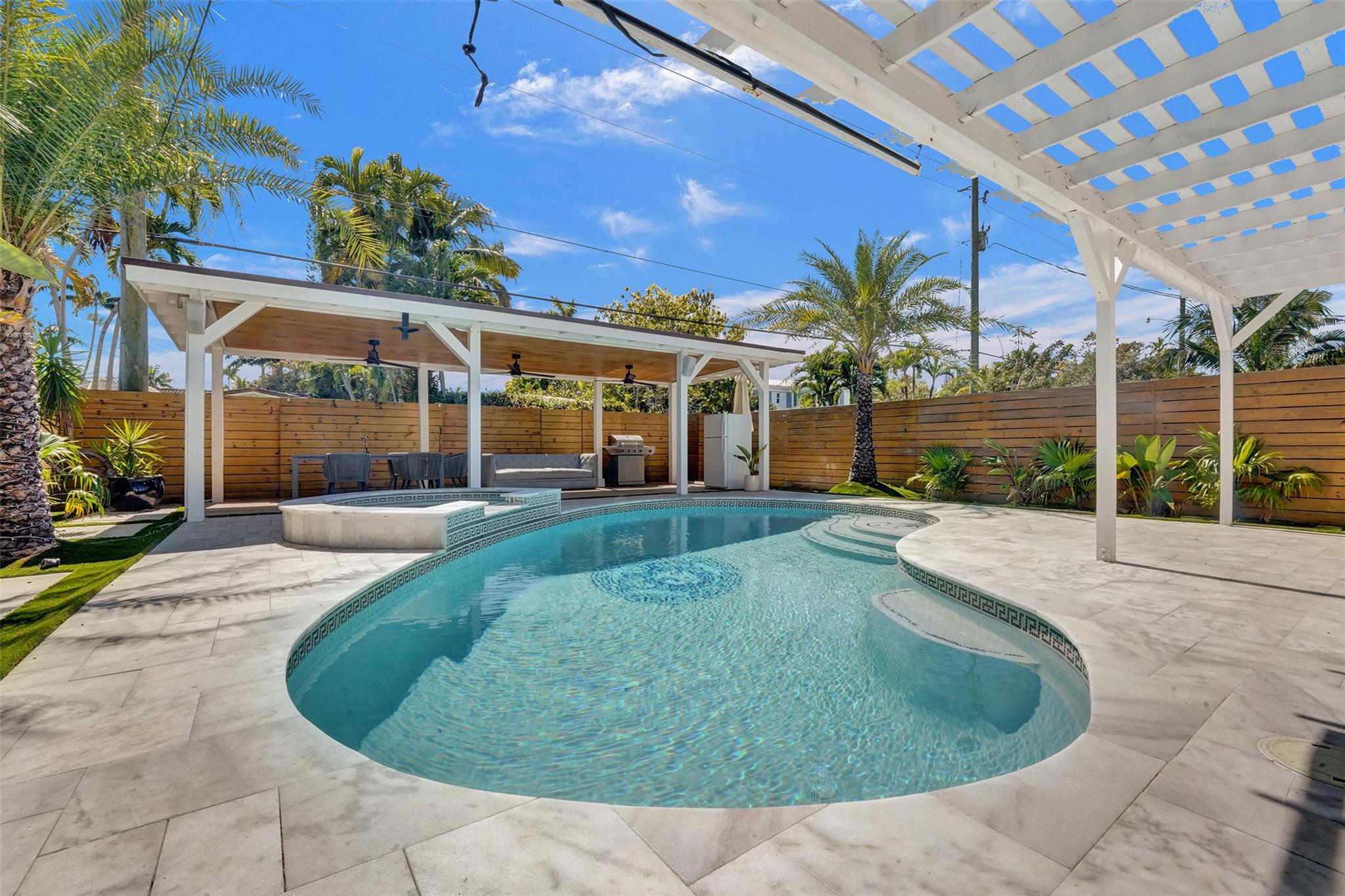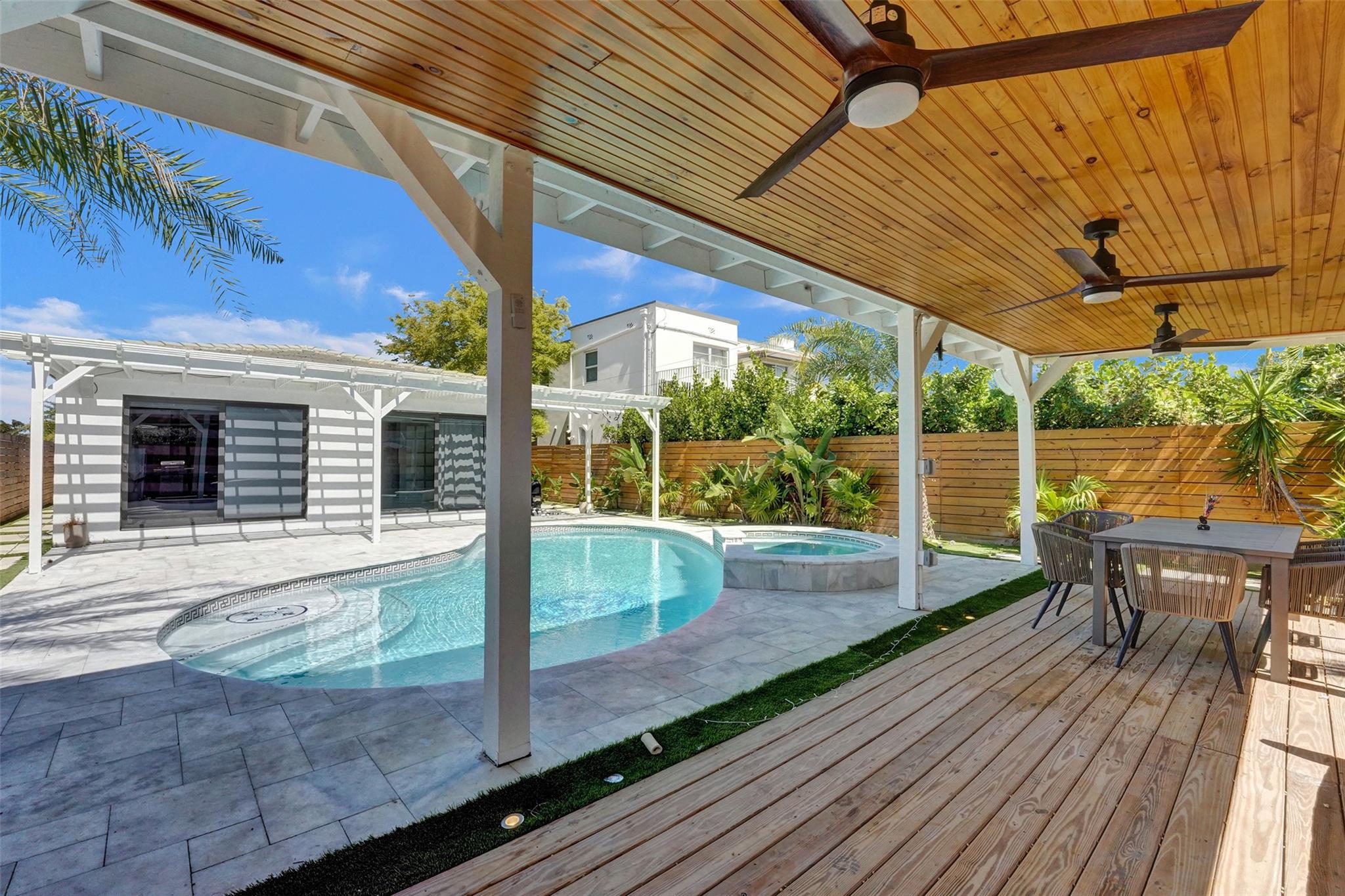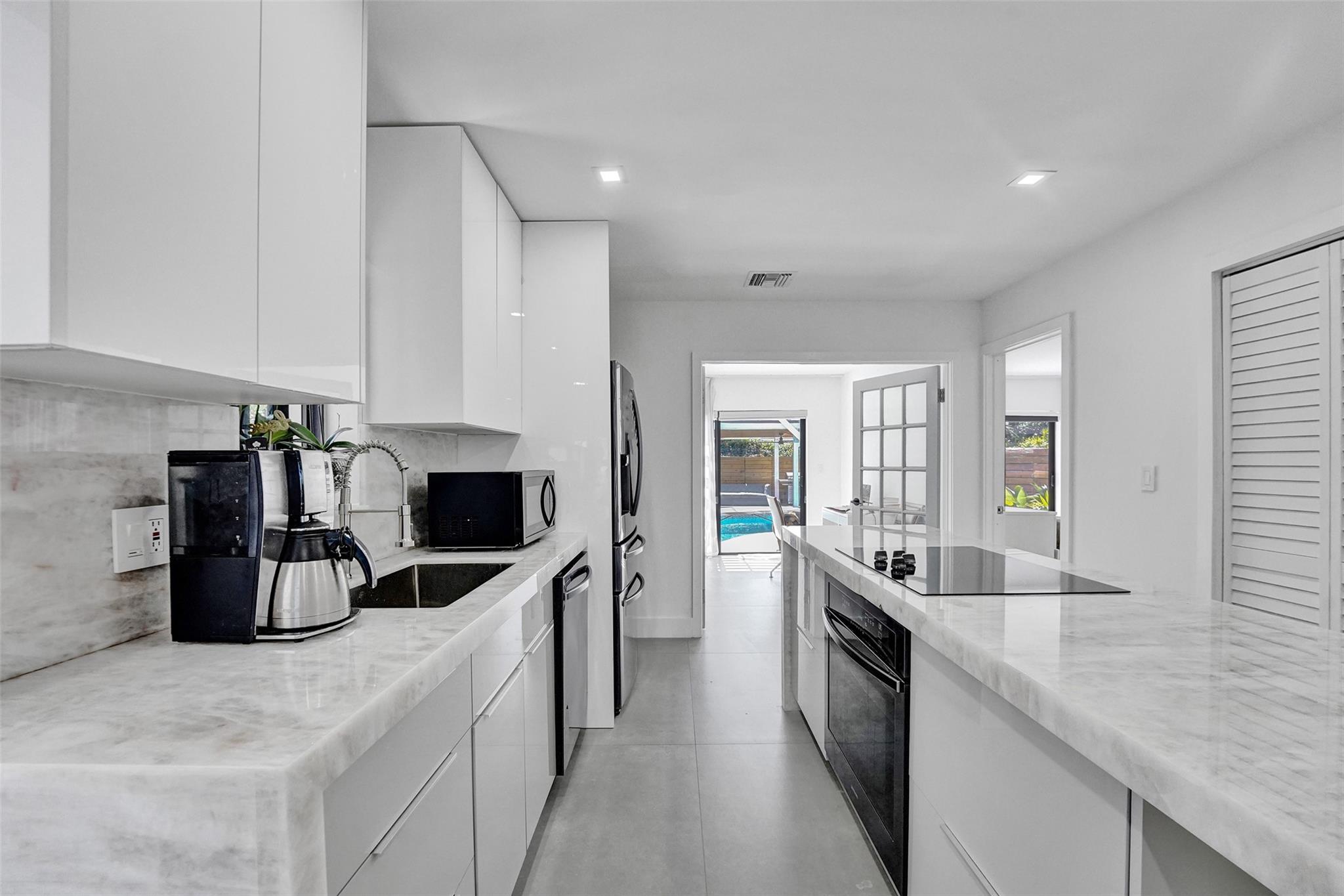 Step into modern luxury in this exquisite home in vibrant East Hollywood, just minutes from the beach. The open layout features a custom Italian kitchen with quartz countertops and state-of-the-art appliances. Large impact windows illuminate the space, enhancing both beauty and security. Relax in the spa-like bathroom with a sophisticated clawfoot tub and elegant finishes. Outdoors, enjoy a private oasis with a custom pergola and stunning Versace-style pool—perfect for entertaining. The marble pool deck adds an extra touch of elegance. This turnkey home also boasts custom closets and upgraded PVC plumbing. Seller financing available, making it an attractive opportunity for buyers.