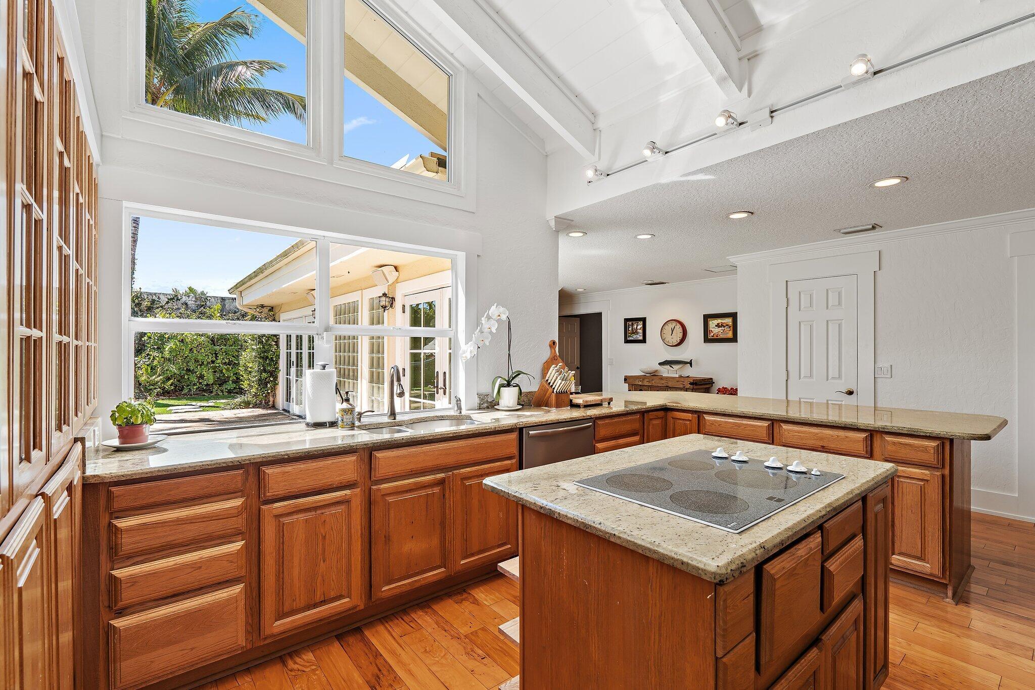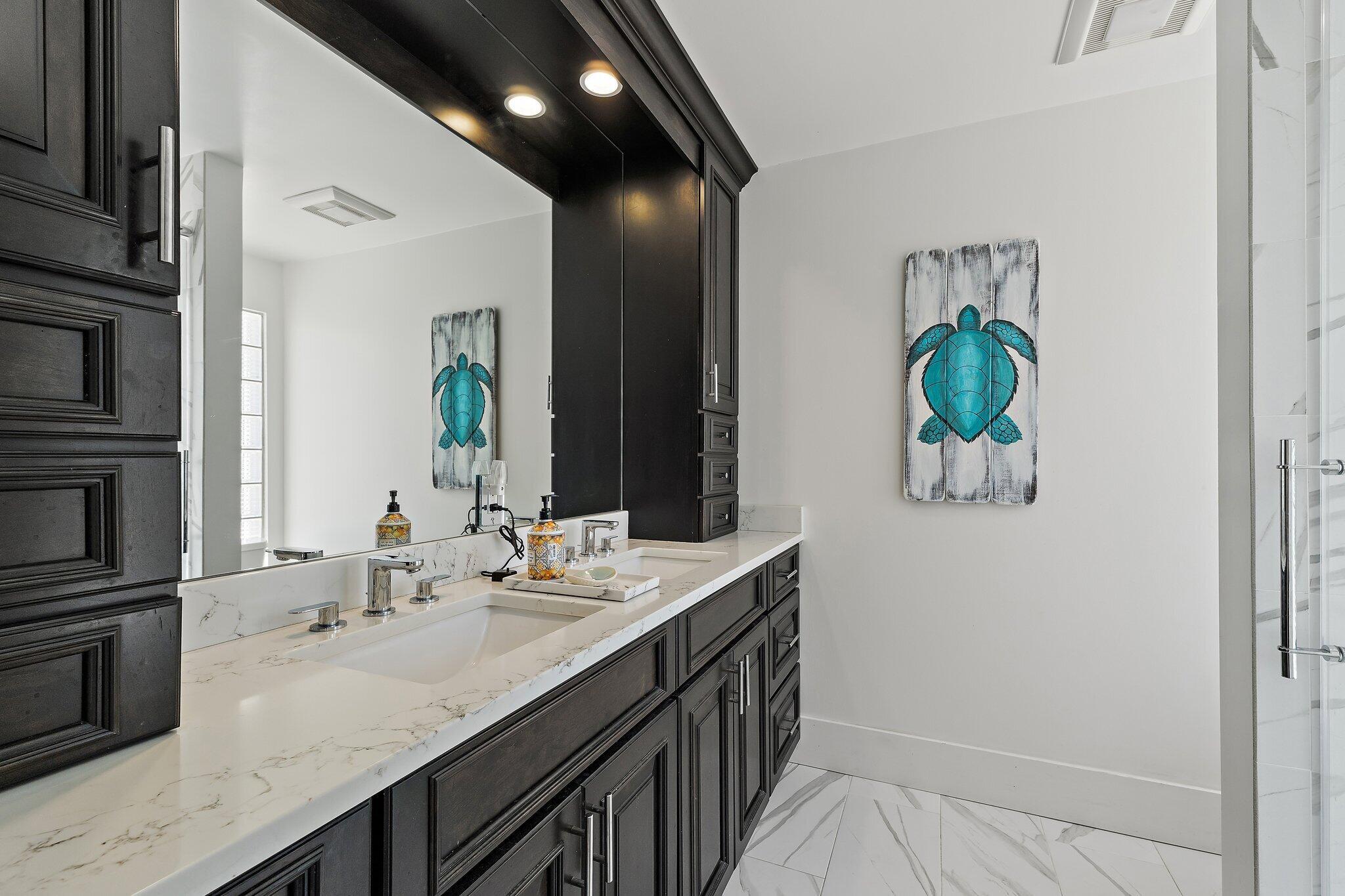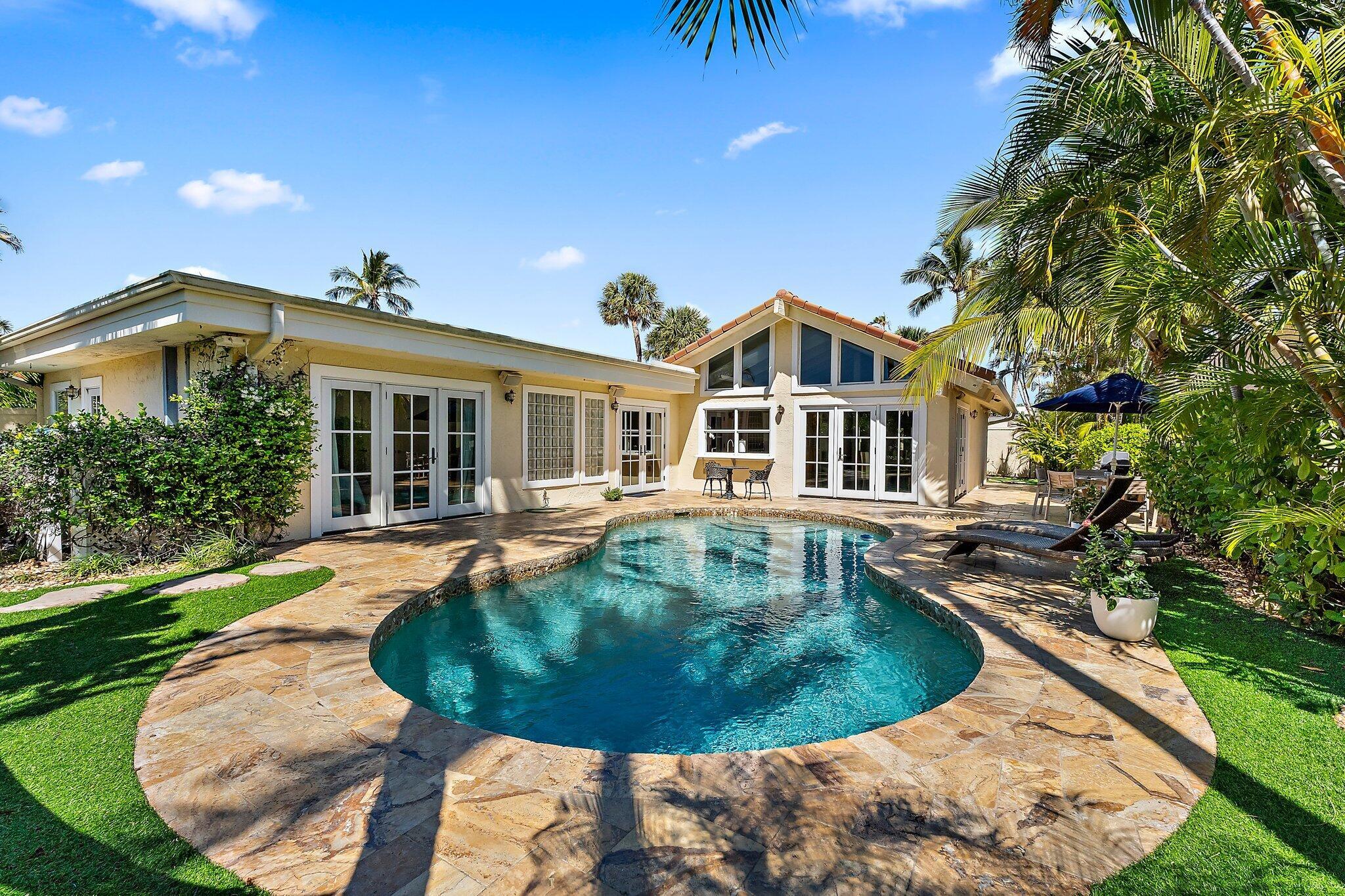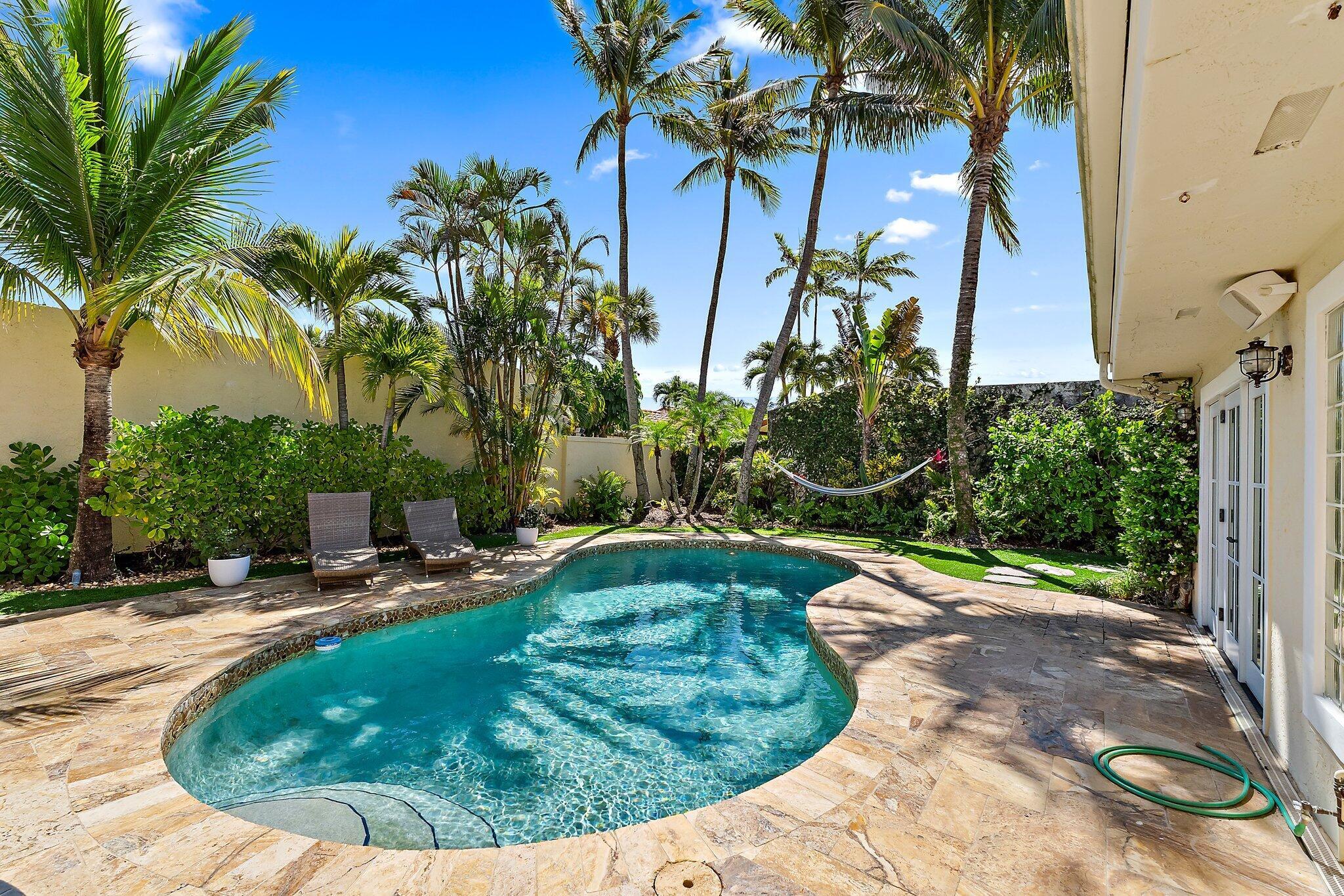 Charming beach home within steps to the Atlantic! Beautiful bright one story model with oversized master bedrooms (that can be converted back into a 3rd BR), with ensuite bathrooms and a bonus 1/2 bath. Open kitchen with huge countertop with stools. Hardwood floors. The private landscaped backyard includes travertine tiles and a summer kitchen with artificial turf throughout.
