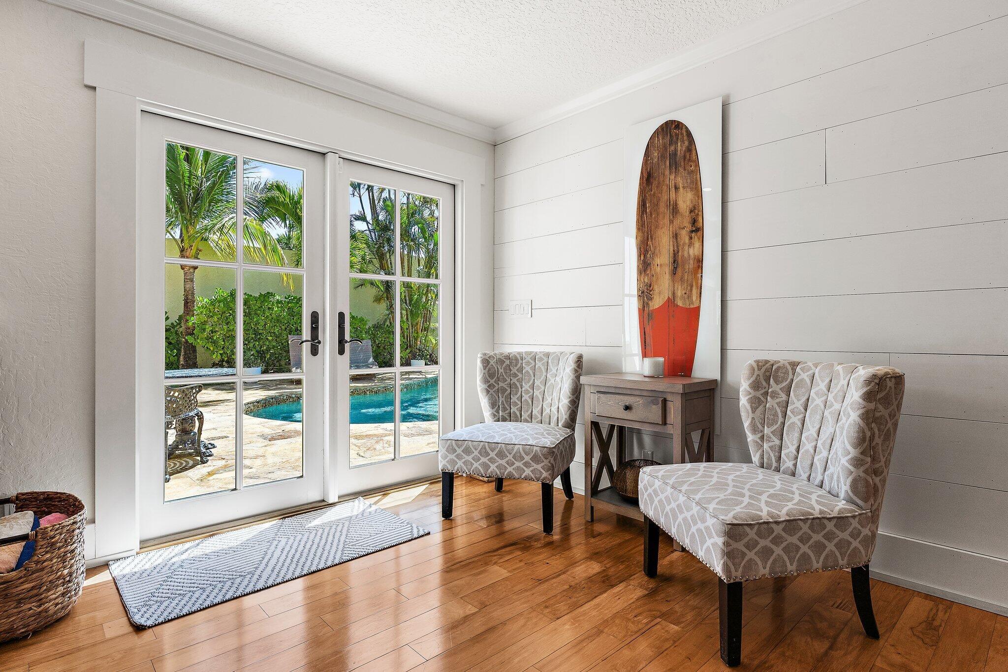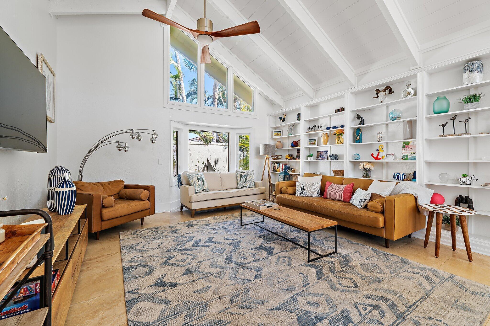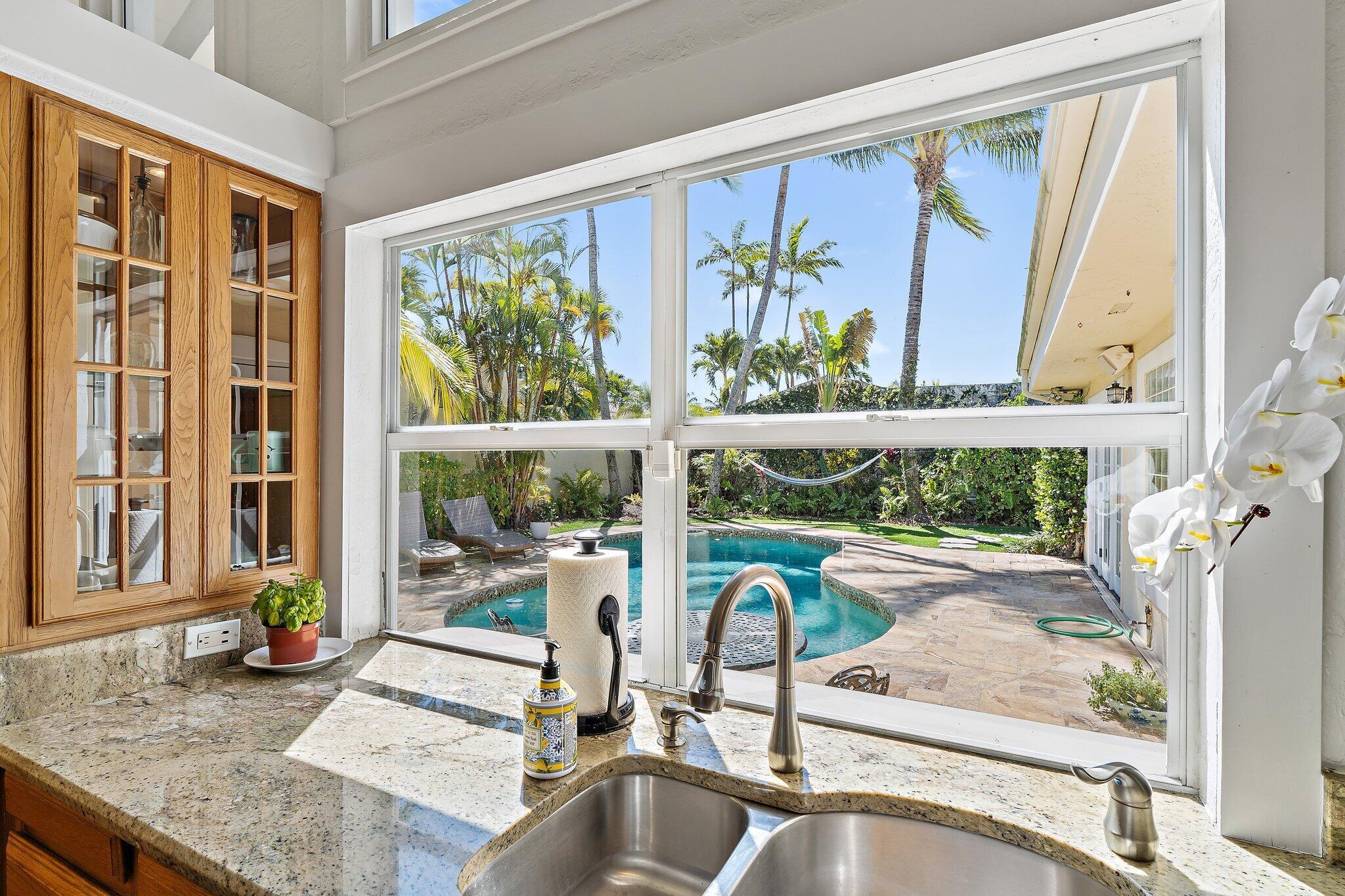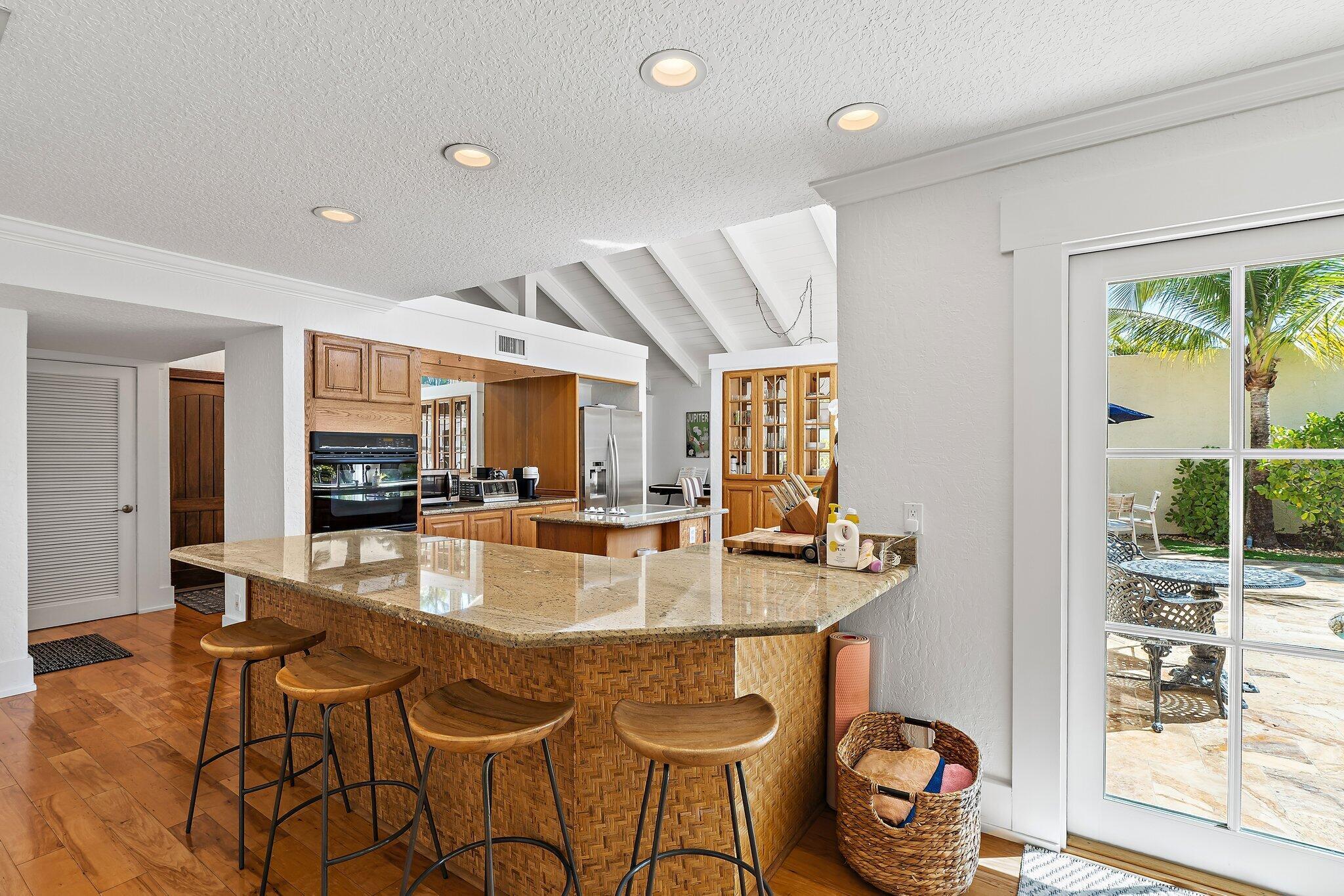 Charming beach home within steps to the Atlantic! Beautiful bright one story model with oversized master bedrooms (that can be converted back into a 3rd BR), with ensuite bathrooms and a bonus 1/2 bath. Open kitchen with huge countertop with stools. Hardwood floors. The private landscaped backyard includes travertine tiles and a summer kitchen with artificial turf throughout.