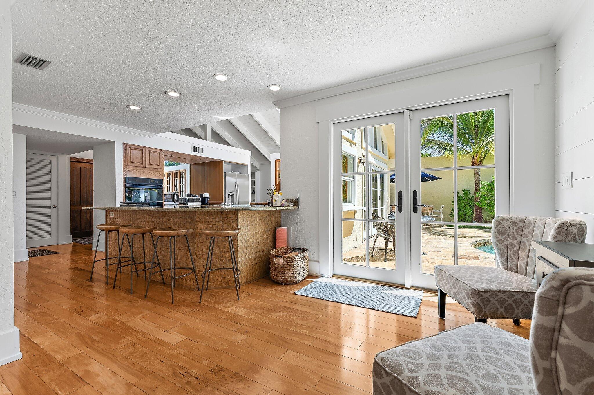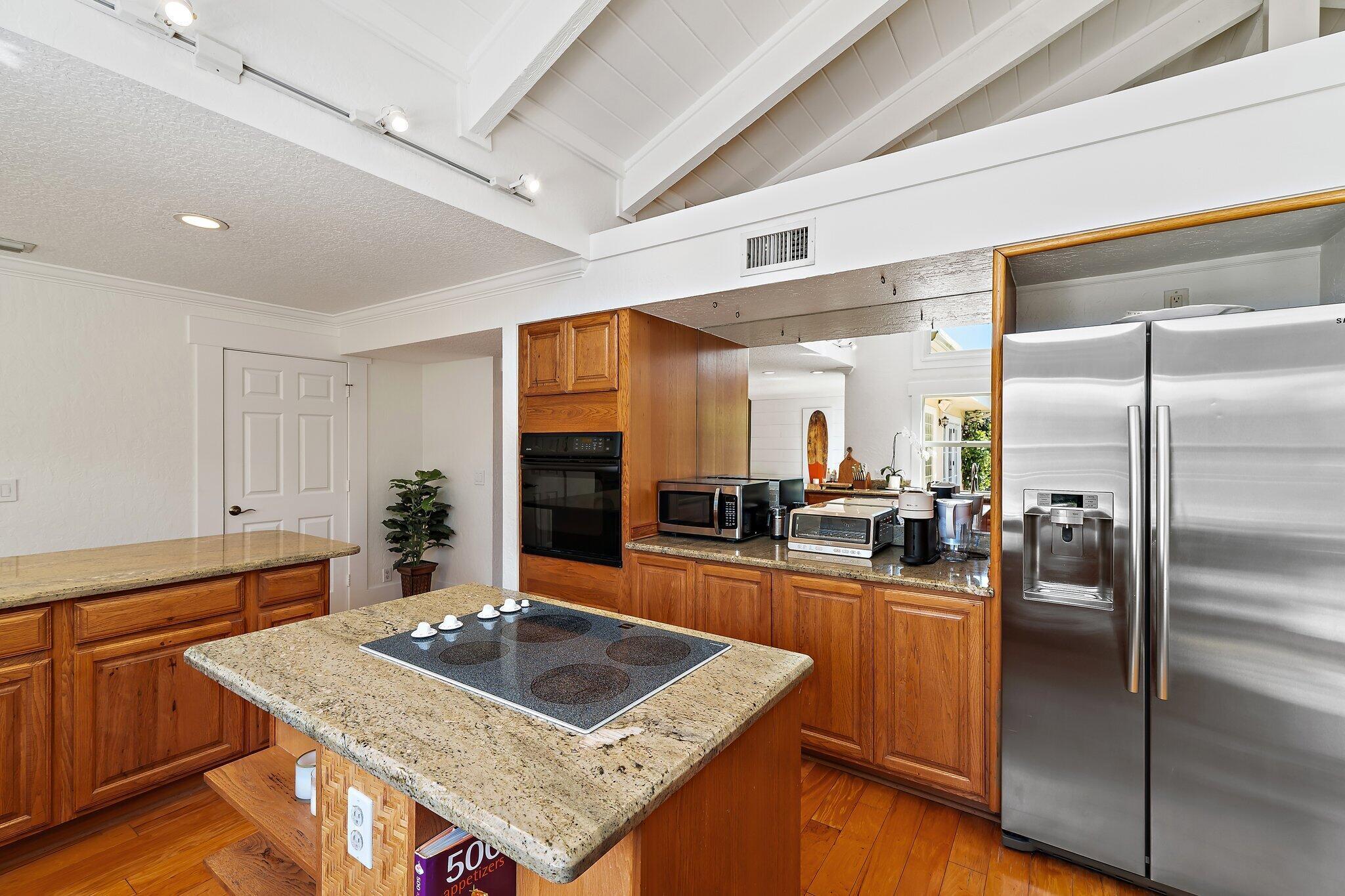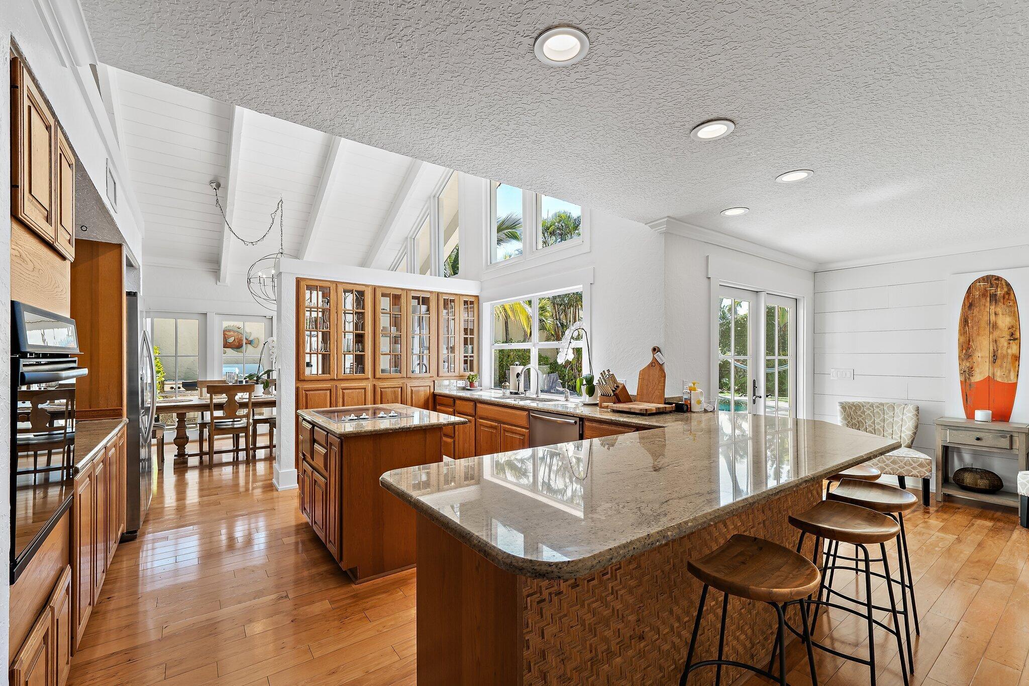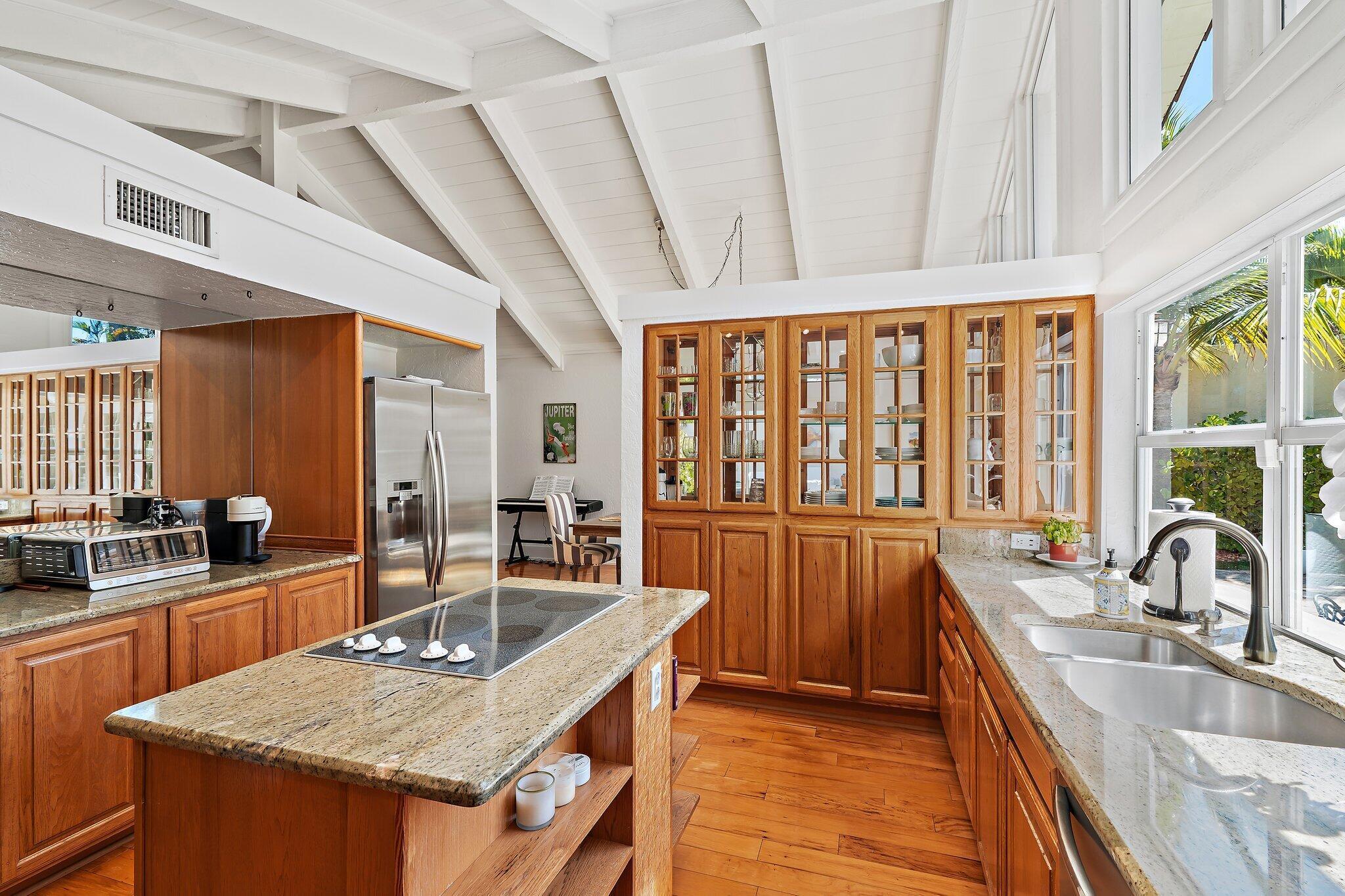 Charming beach home within steps to the Atlantic! Beautiful bright one story model with oversized master bedrooms (that can be converted back into a 3rd BR), with ensuite bathrooms and a bonus 1/2 bath. Open kitchen with huge countertop with stools. Hardwood floors. The private landscaped backyard includes travertine tiles and a summer kitchen with artificial turf throughout.