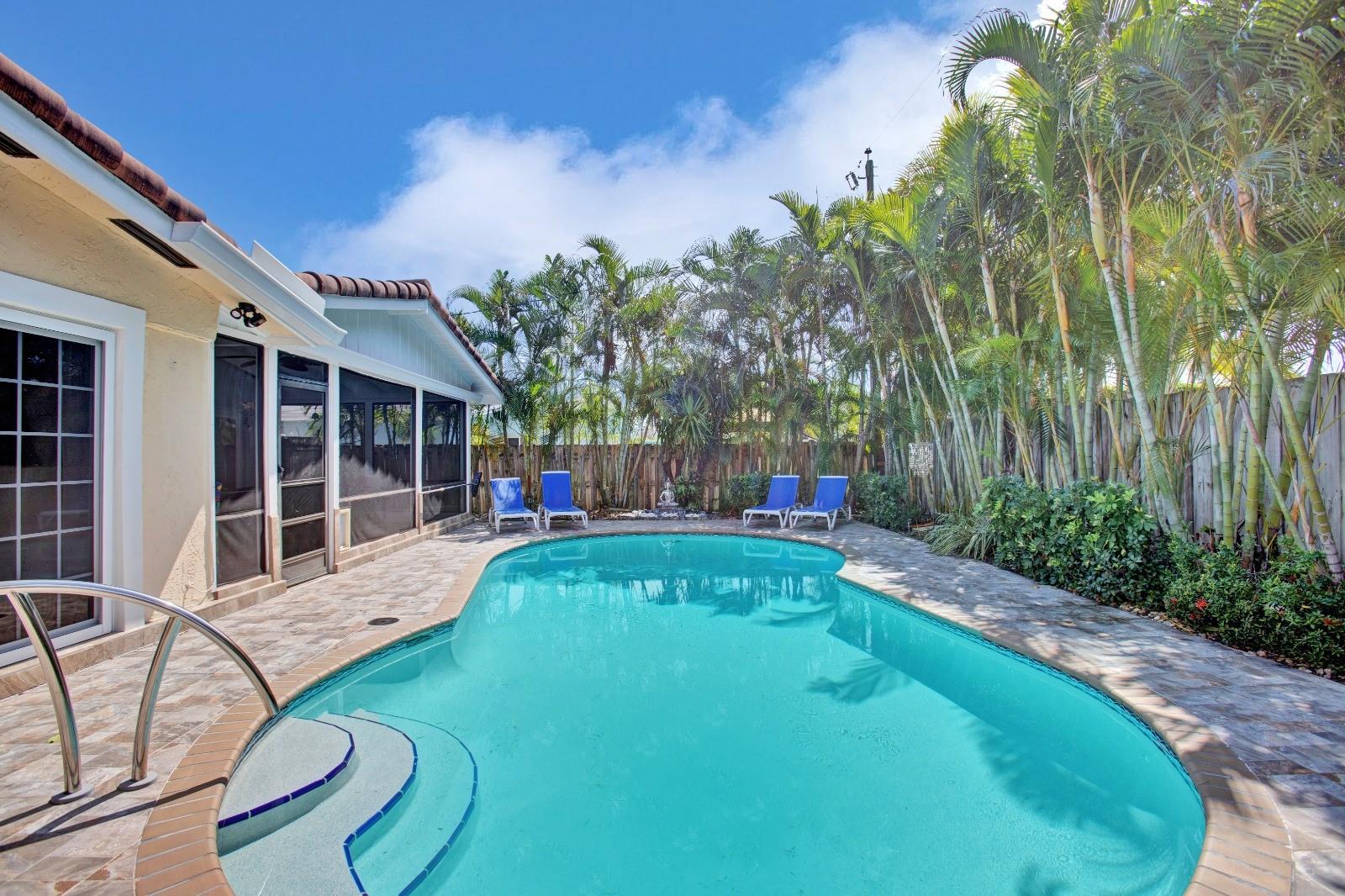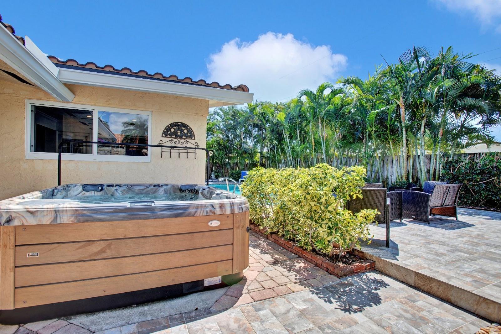 “THE COVE” Less than a mile to the BEACH, COMPLETLEY FURNISHED down to the sheets! Impeccably maintained 3 Bed 2 Bath Pool Home in the Cove. Too much to list, Circular Drive way & 1 Car Garage, bright open floor plan, IMPACT windows, Doors & Garage door, CUSTOM DESIGNED Double Impact Front Door, Custom Built in Closet, Large Screened Patio overlooking the amazing Salt Water/HEATED pool, Hot Tub, Lush tropical landscaping, HUGE walk in Shed & MUCH, MUCH More. Did I mention all the AMAZING Furniture less than a year old that comes with it? This house is ready to move into or start your own 5 Star Rated AIRBNB Business. No HOA Means NO restrictions on renting & No Fees. Take a short Bike ride or Golf cart to the Beach. Grocery stores, restaurants, bars, gas stations are all walking distance.