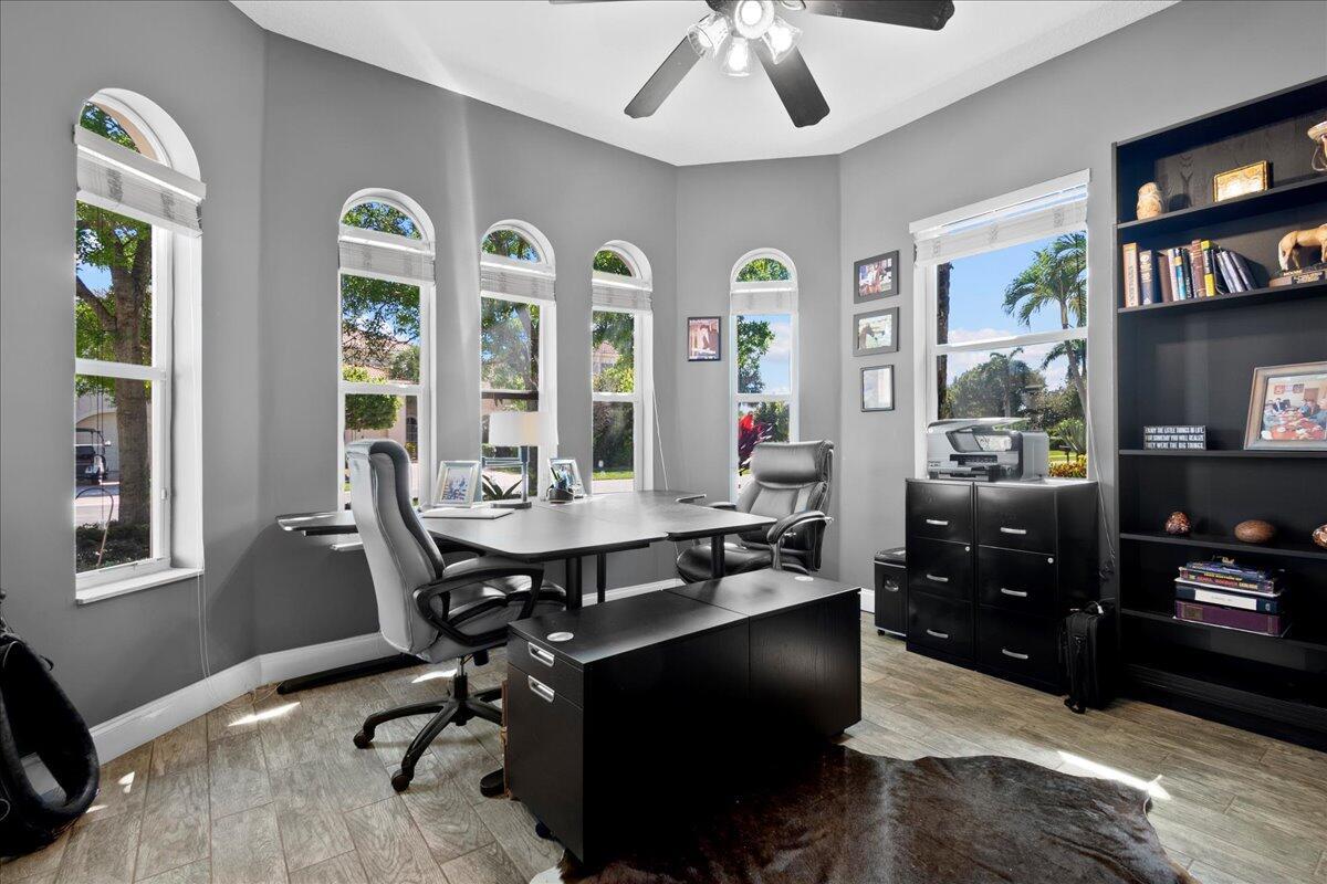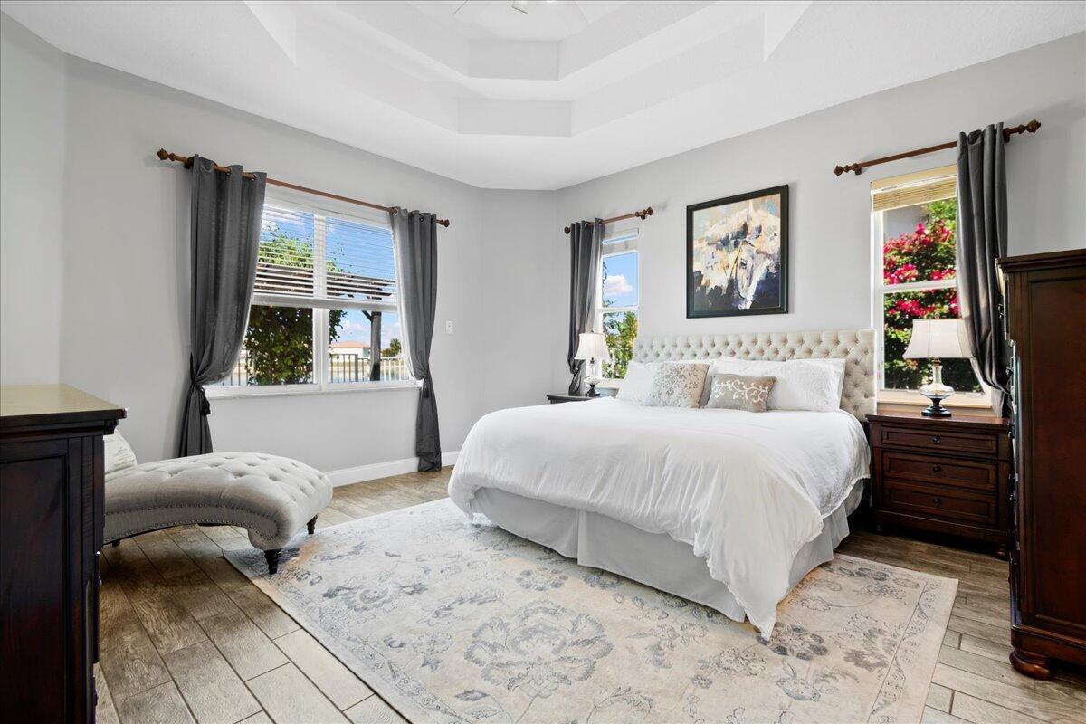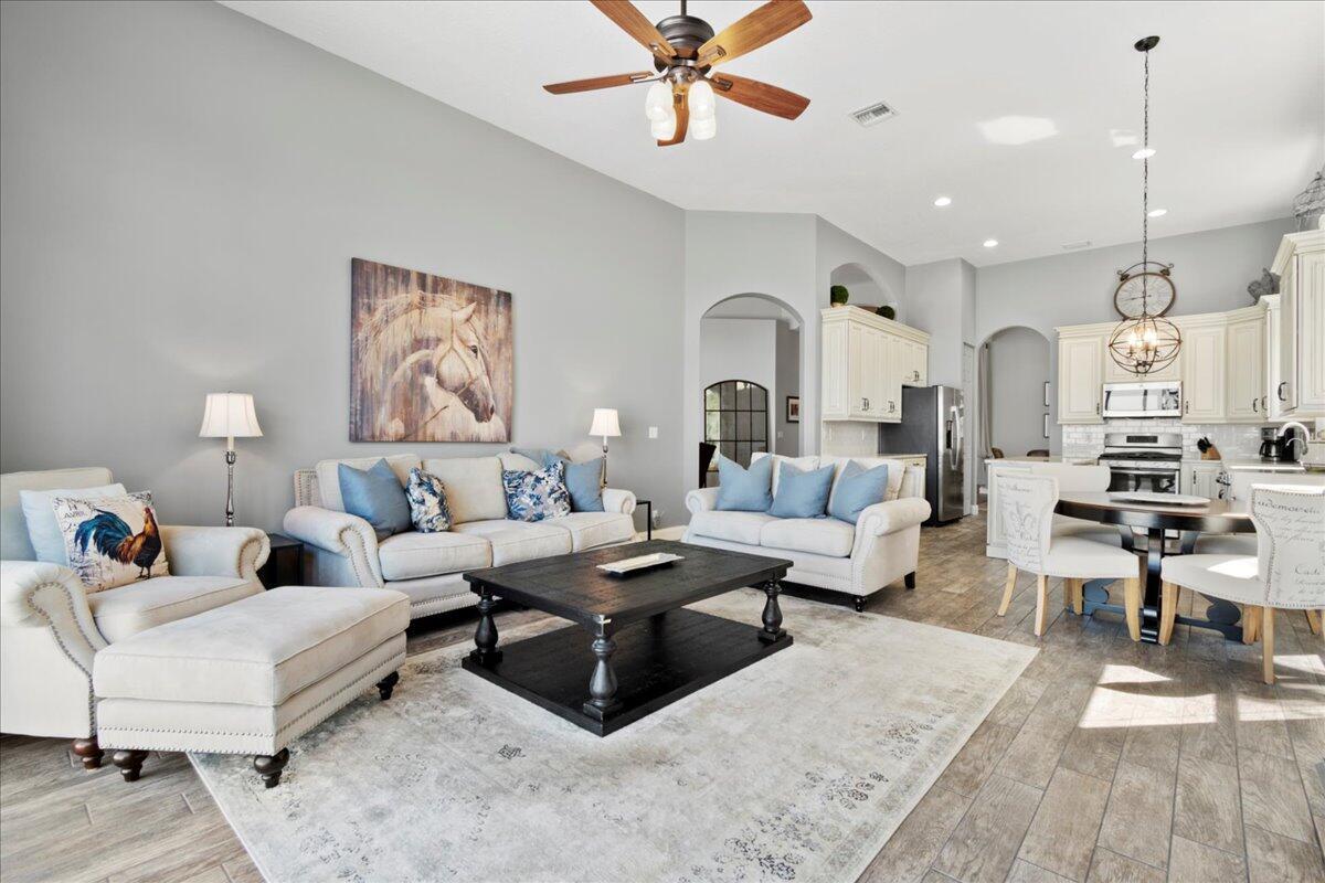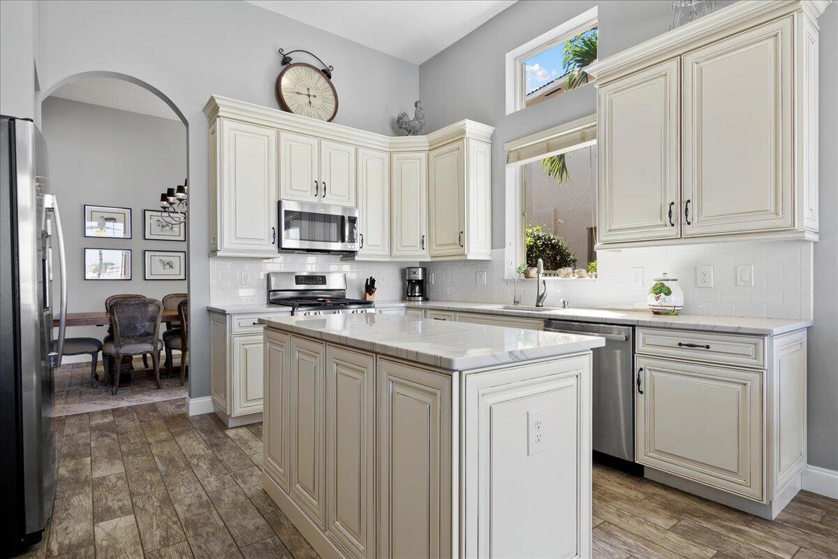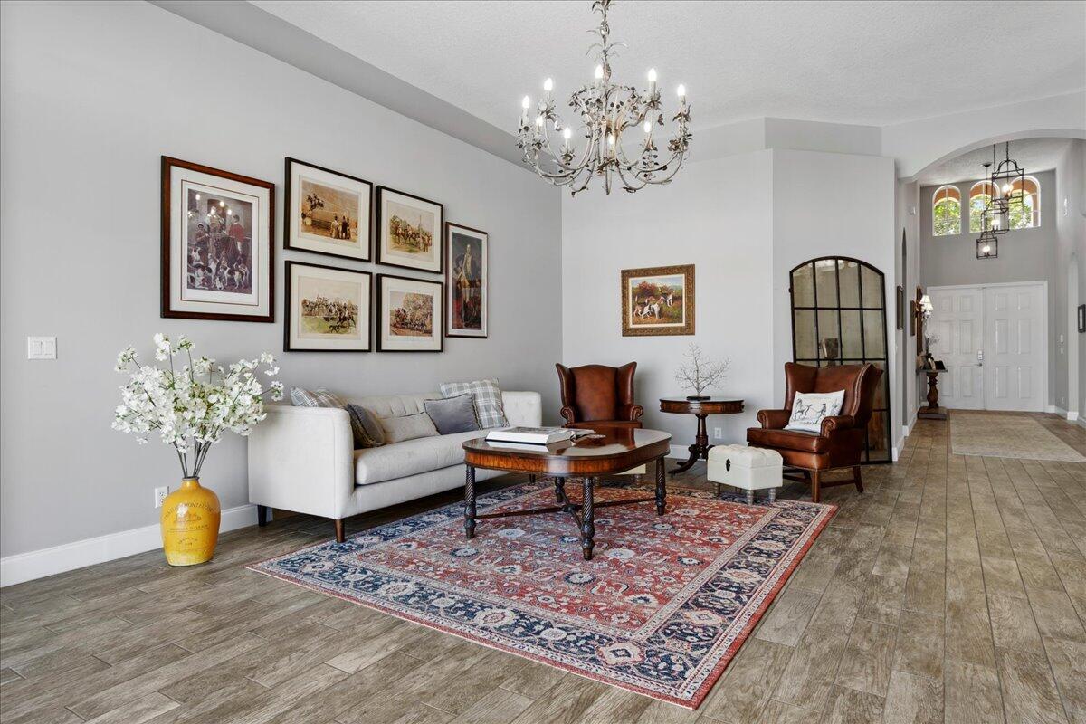 Welcome to Bay View Way! This designer renovated, western facing lake view pool home offers an abundance of natural light throughout, vaulted 15 foot ceilings and spacious floor plan. Newer AC, hot water heater & pool pump. All new porcelain tile floors! Layout consists of a split floor plan ,3 bedrooms plus a den/office that can be a 4h bedroom and 2.5 baths. Laundry room inside with sink leads you the oversized 3 car garage. Multiple living spaces with gorgeous views & a custom chefs kitchen with gas range, Brazilian quartzite countertops, pantry & island. A fully fenced in yard lined with lush foliage and blooming bushes for the perfect way to end your days. Conveniently located on SR 7 close to dining, A+ rated schools, shopping & equestrian facilities. A must see!