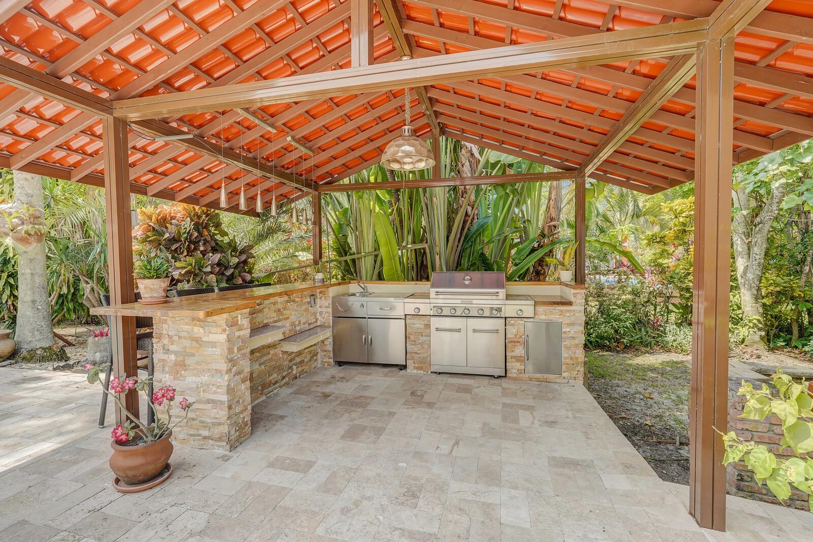 Welcome to this elegant residence nestled in Plantation Acres. Set on an oversized corner lot of 2/3 of an acre with limited neighbors making for a quiet residence in busy Broward County. At just under 3,000 square feet of living space this stunning home features a sparkling pool, a charming BBQ area, and a large entertainment kitchen perfect for hosting large gatherings. An extremely large master suite with private office is accompanied with 4 additional bedrooms and large living/dining with a working fireplace, this home is spacious and versatile for large families or groups of vacationers. Brand new roof 2024, dual zone AC units replaced in 2022 & 2023, outside and inside freshly painted making it move in ready. Don’t miss out on the opportunity to own this Florida dream home!