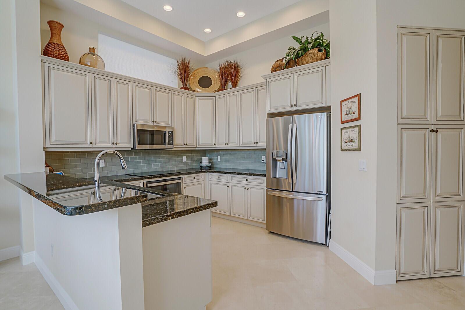 This is what you’ve waited for – located on a quiet street this stunning waterfront Seaborn model has it all! Upon arrival you’ll be greeted by a peaceful courtyard area & then from the moment you walk through the double entry glass doors of this impeccable home you’ll see what makes it so special. Offering 3 bedrooms, each w/ their own bathroom & a den w/ striking glass French doors this beautiful home also features IMPACT GLASS, a captivating open floor plan, high volume ceilings, travertine marble on the diagonal, plantation shutters & LED (sealed) dimmable lighting throughout. The oversized kitchen boasts a NEWER GE Profile Microwave(2022), Induction Cooktop(2022), Twin Flex Oven(2022), Bosch Dishwasher(2022) & an LG Refrigerator(2019), NEW Delta touch control faucet, NEW Kohler …