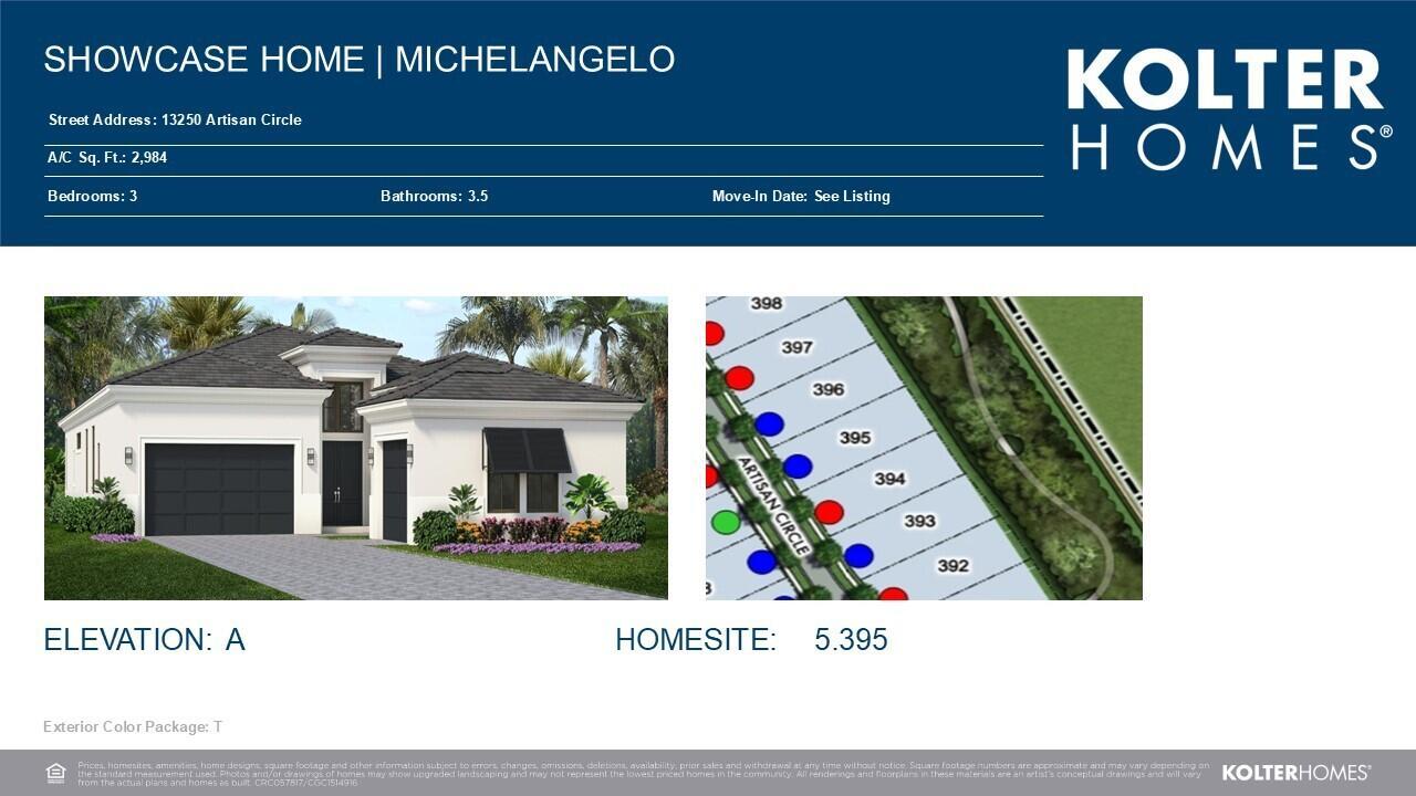 **New Construction** Model photos used for reference. This brand new Michaelangelo floorplan is situated on a private, preserve view homesite within Artistry Palm Beach. This home offers 3-bedroom suites, each with their own bathroom, an additional half bathroom and a 2-car garage. This Michaelangelo also includes gas cooking in the kitchen, 2nd tier upper cabinets, quartz backsplash, and under cabinet LED lighting. The primary bath has an added free standing soaking tub. The house has a gas connection for a future pool heater, a tankless water heater, as well as gas, electric and water connection for an outdoor summer kitchen.