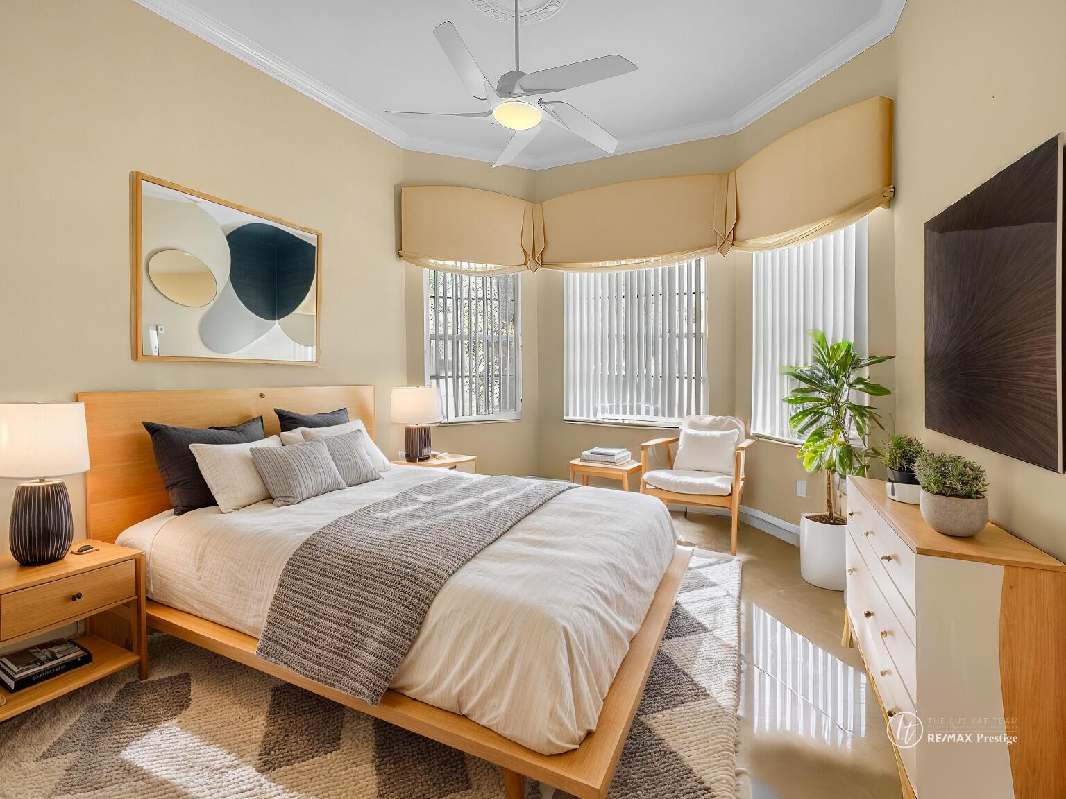 Breathtaking Waterfront Views | Elegant Novarro Model in BellagioWake up to stunning, uninterrupted Zen-like water views in this highly desirable Novarro floorplan, offering 3 spacious bedrooms and 2 beautifully appointed bathrooms. From the moment you enter, you’re welcomed by serene panoramic views of the lake that stretch across the entire rear of the home.Highlights include:Gleaming 24” diagonal marble flooringTray ceilings with custom detailingDesigner lighting throughoutGourmet kitchen with elegant cabinetry and brand-new Bosch & GE appliancesAccordion shutters for peace of mindLaundry room with utility sink for added functionalityThe HOA covers lawn maintenance, exterior painting, cable, and alarm monitoring.
