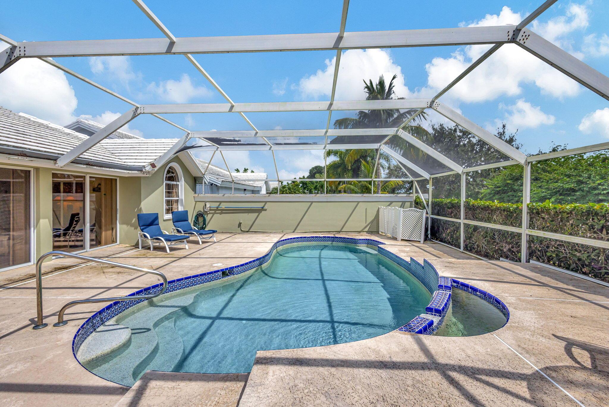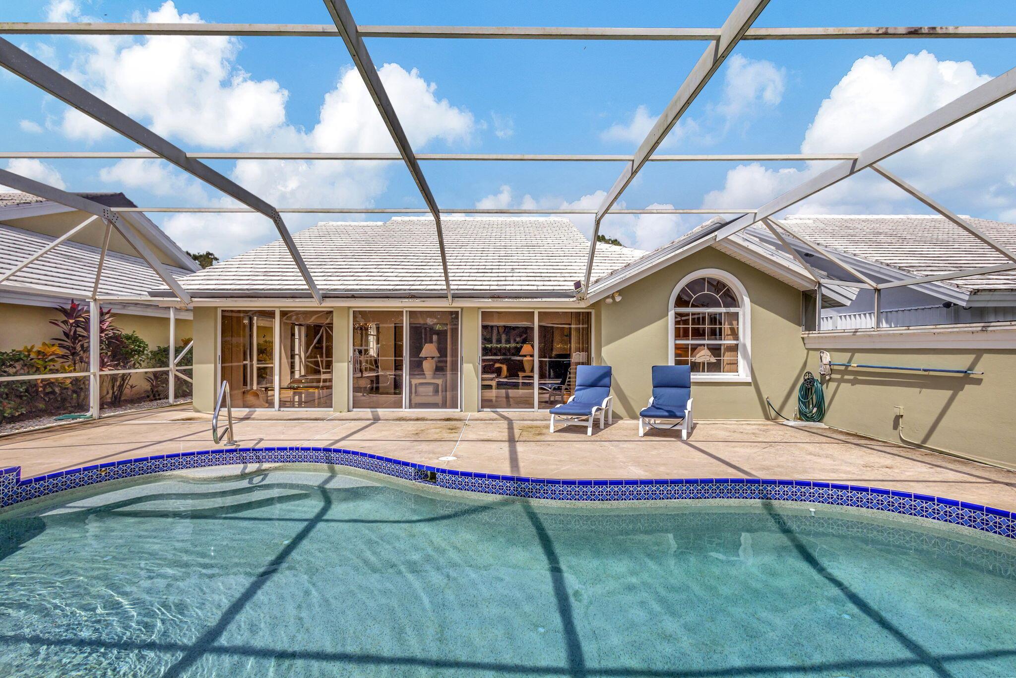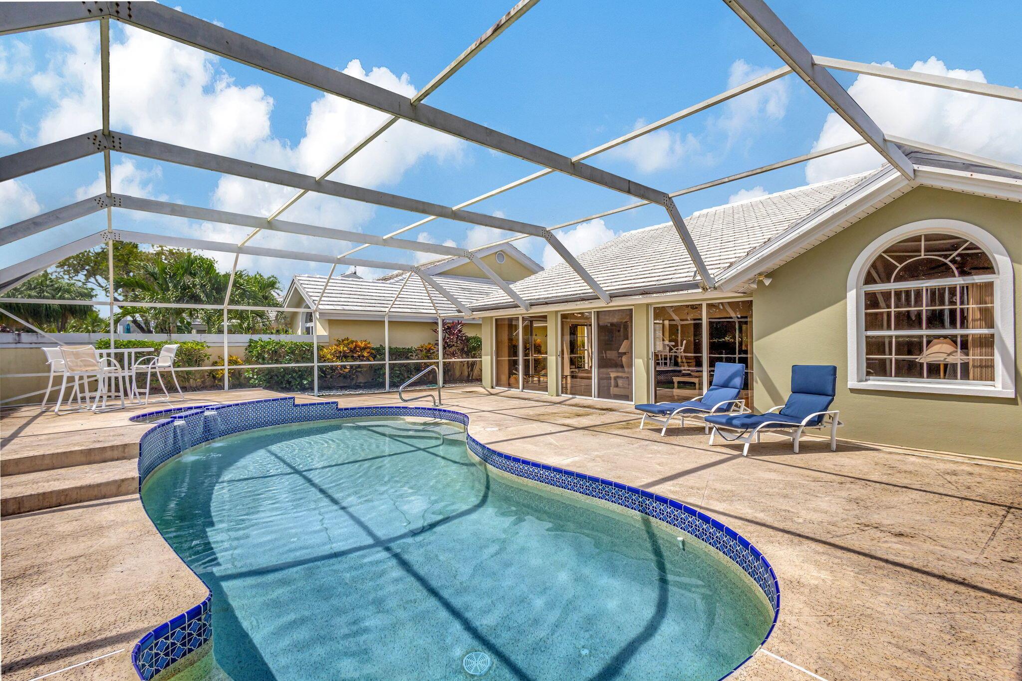 Enoy South Florida living from this incredible POOL home privately nestled on spectacular golf course lot! Located in the gated (and highly desirable) DiVosta-built community of Saratoga Bay, this expanded model features 3 bedrooms, 2 baths, nearly 2,300 SF of living area, vaulted ceilings, built-in entertainment center, expansive screened patio, and heated pool. Spacious kitchen with cozy breakfast area, separate great room and extended lanai offers tons of space – perfect for office/den, kid’s playroom, or media/reading room. Expansive sliders allow for tons of natural light and showcase your oversized screened patio, raised sun deck, heated pool with waterfall feature, all surrounded by lush landscaping. Generous master suite features 2 large closets and master bath equipped