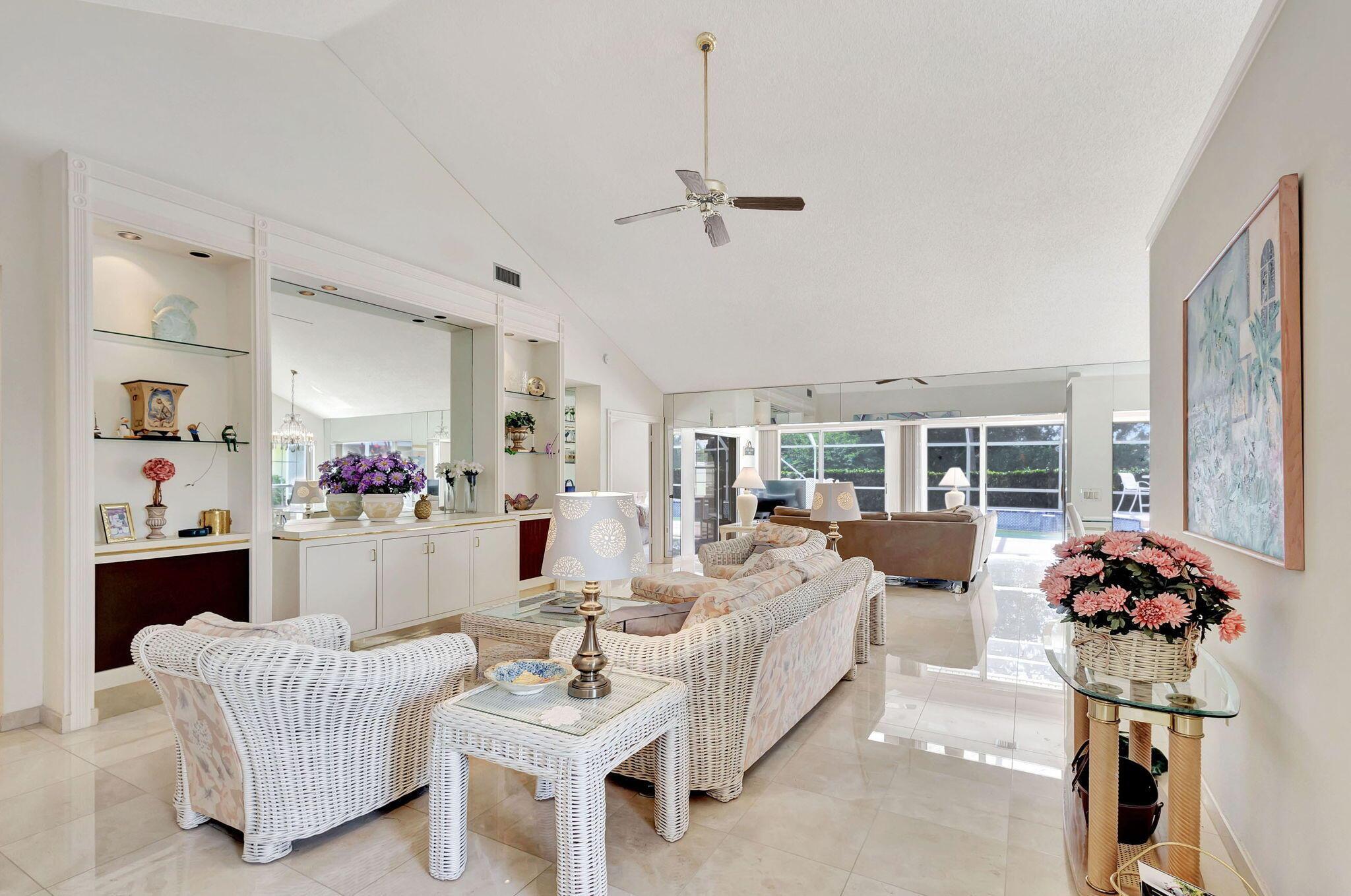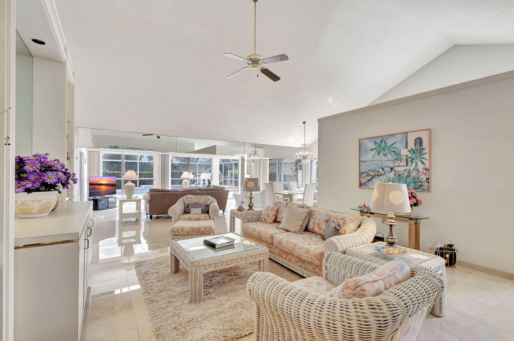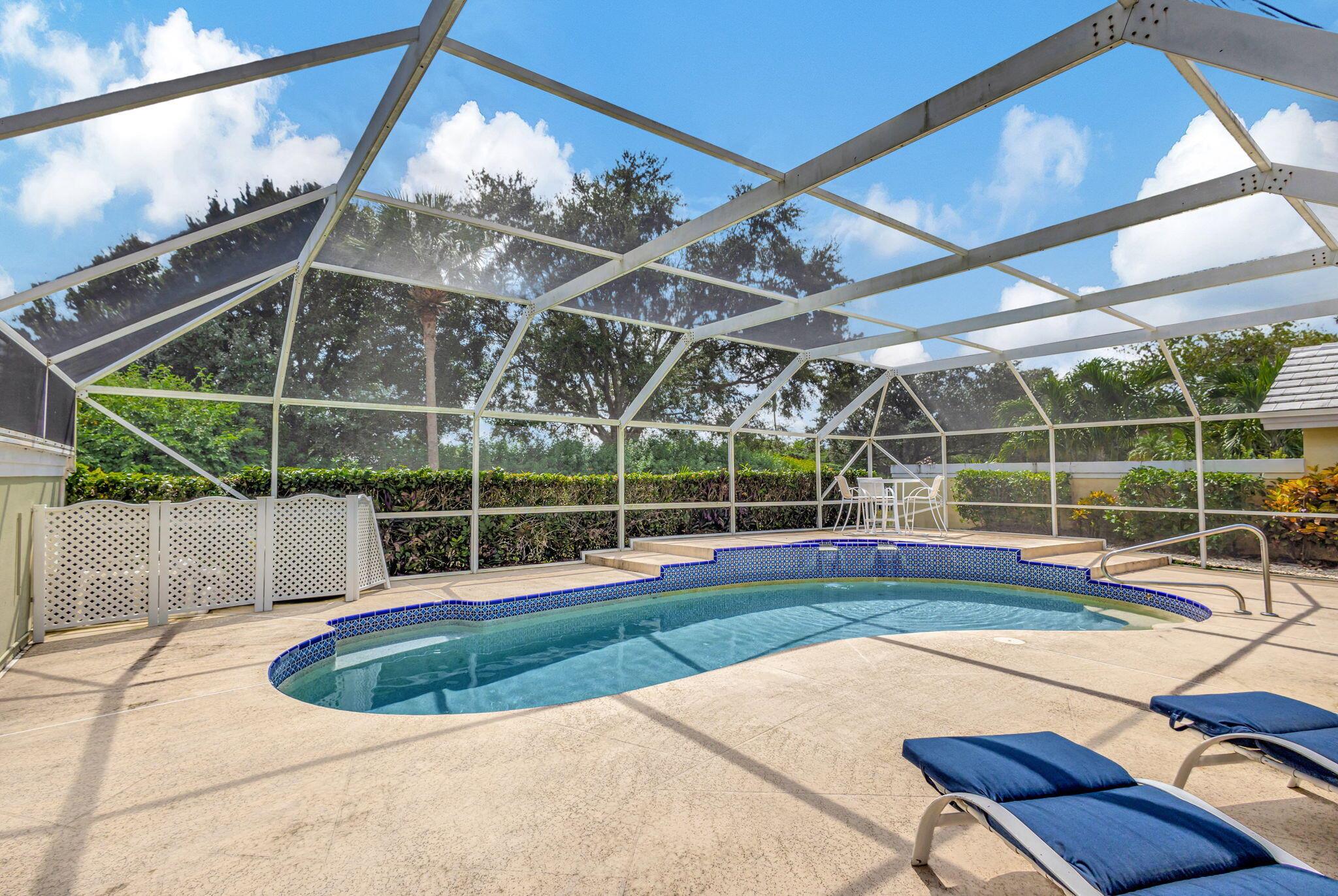 Enoy South Florida living from this incredible POOL home privately nestled on spectacular golf course lot! Located in the gated (and highly desirable) DiVosta-built community of Saratoga Bay, this expanded model features 3 bedrooms, 2 baths, nearly 2,300 SF of living area, vaulted ceilings, built-in entertainment center, expansive screened patio, and heated pool. Spacious kitchen with cozy breakfast area, separate great room and extended lanai offers tons of space – perfect for office/den, kid’s playroom, or media/reading room. Expansive sliders allow for tons of natural light and showcase your oversized screened patio, raised sun deck, heated pool with waterfall feature, all surrounded by lush landscaping. Generous master suite features 2 large closets and master bath equipped