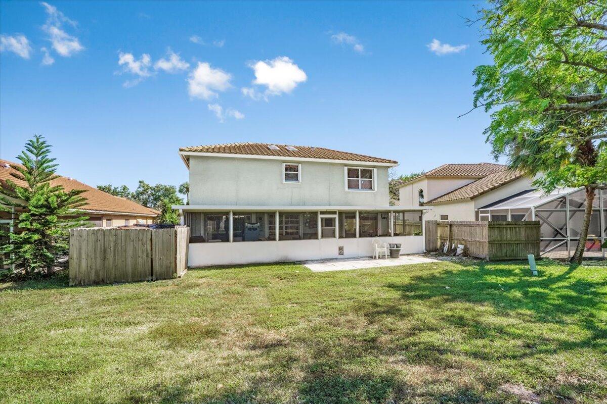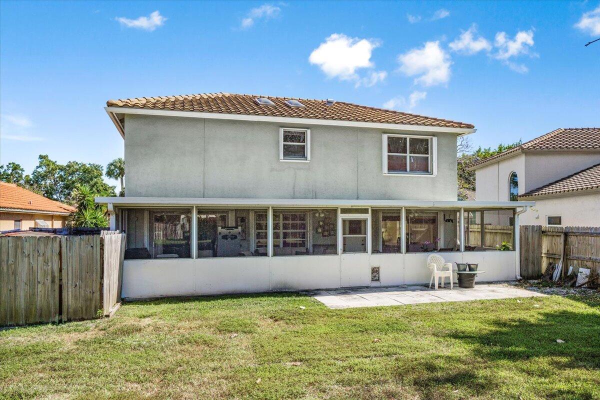 Welcome to this stunning two-story home in the gated Windchime Lakes community. Featuring 4 bedrooms and 3 bathrooms, this home offers a large kitchen ideal for entertaining and a covered, screened porch with lake views and hurricane shutters. Recent updates include a roof (8 years old), A/C (2 years old), and accordion shutters (3 years old). The spacious backyard is perfect for outdoor activities and a future pool. Enjoy community amenities like a clubhouse, pool, and tennis courts, plus walking distance to Crystal Lakes Elementary and a house of worship. Located in an A-rated school district.