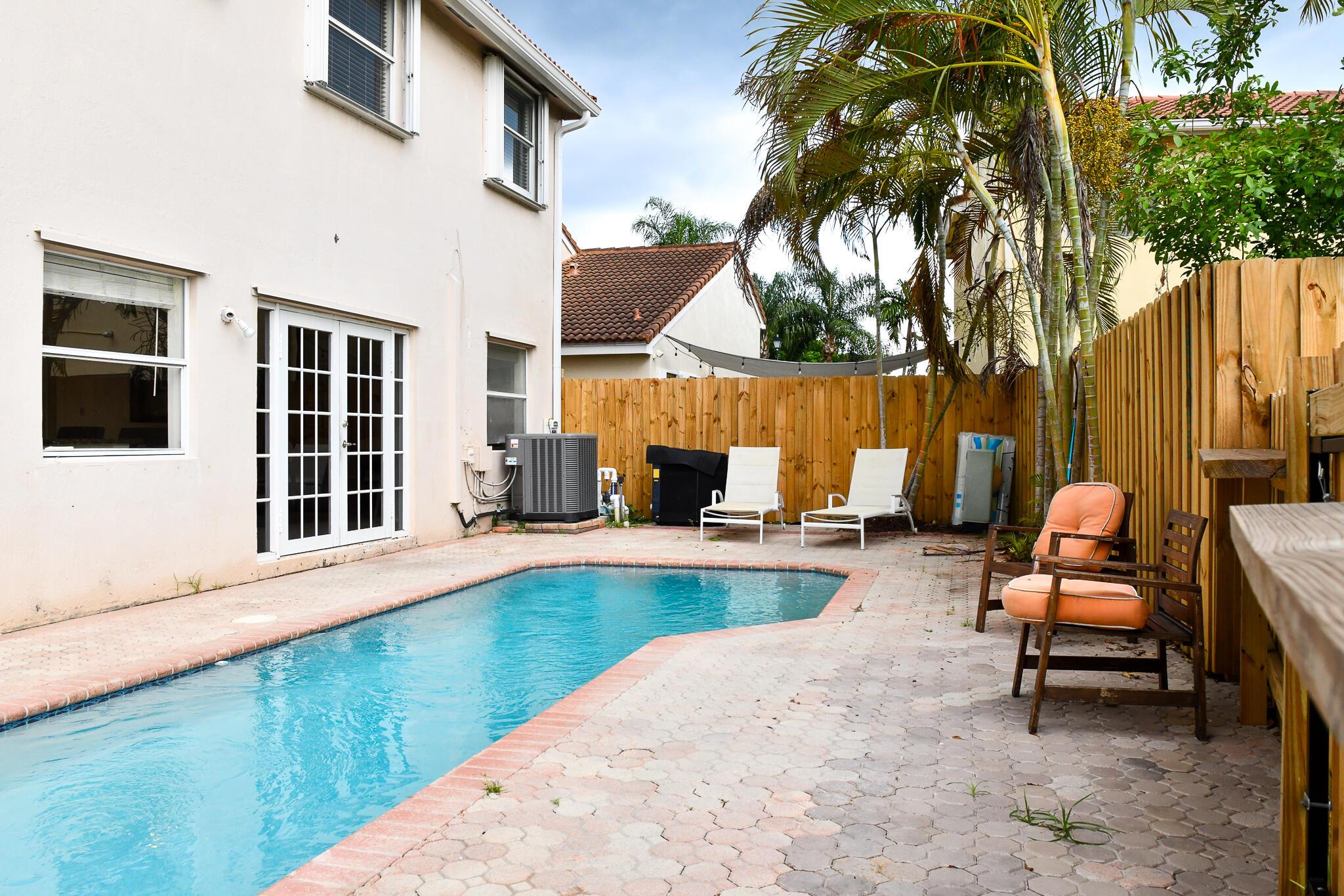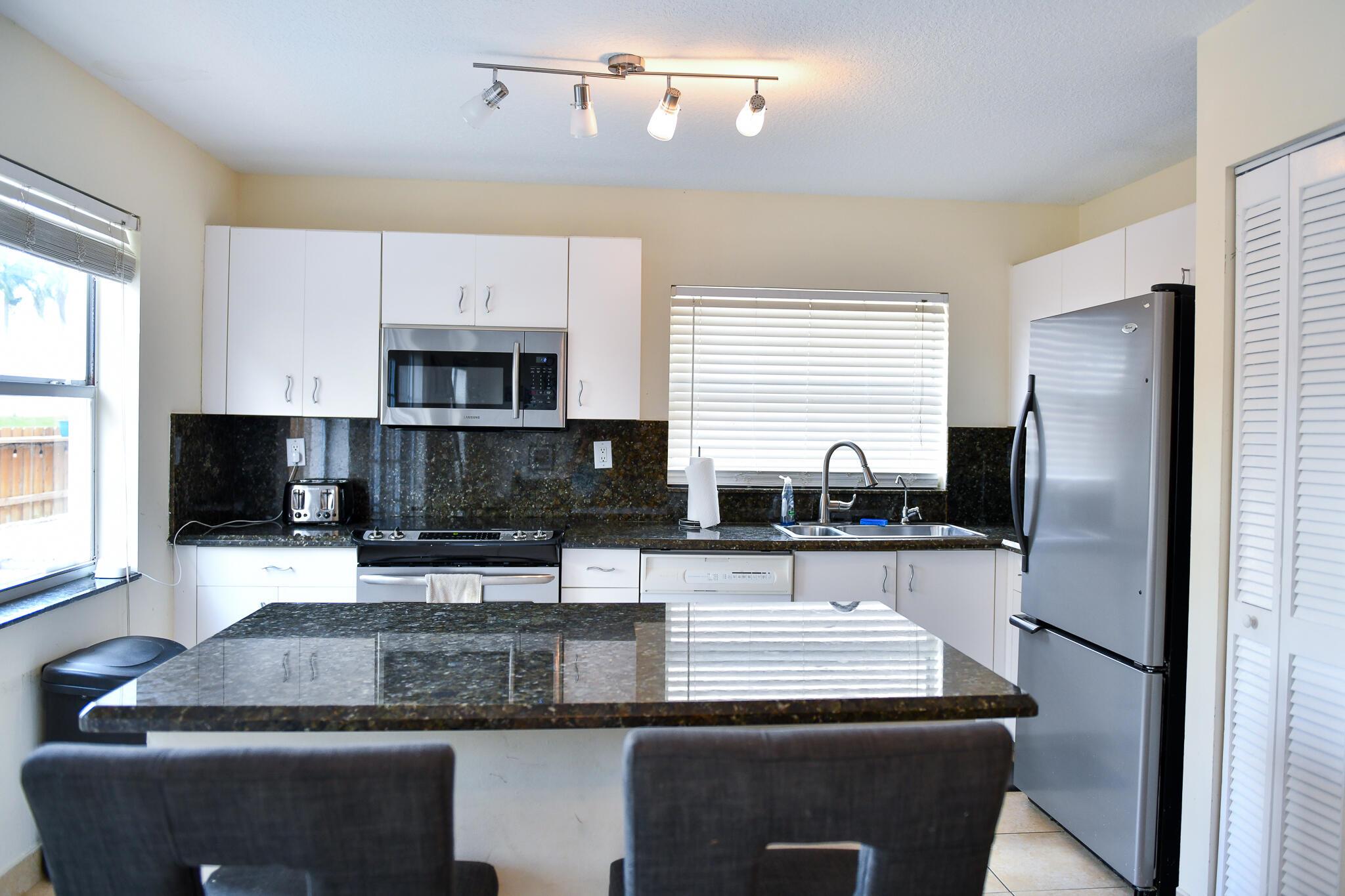 Come see this beautiful 3 bedroom 2.5 bath home in Sorbet Winston Park. Bright living room with tall ceilings. The kitchen boasts a center island, granite countertops, and plenty of counter space for all your cooking and entertaining. The master bedroom features a walk-in closet for ample storage. Two additional bedrooms provide flexible living space. Step outside to a fenced backyard with a heated salt water pool, pool was resurfaced 2022. Roof replaced in 2020, newer electric panel. Hurricane shutters included.