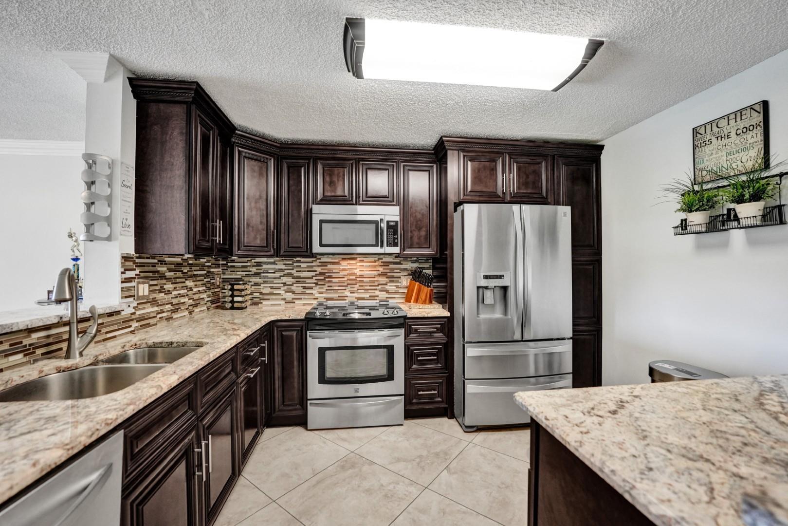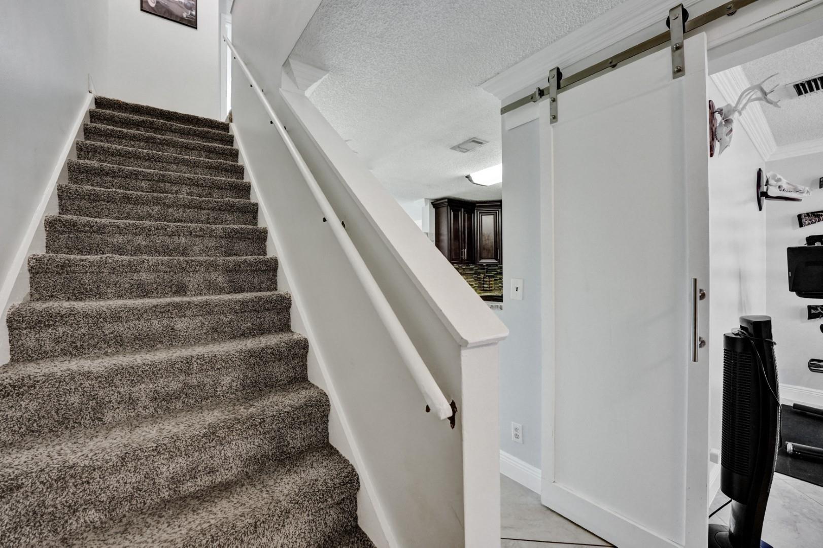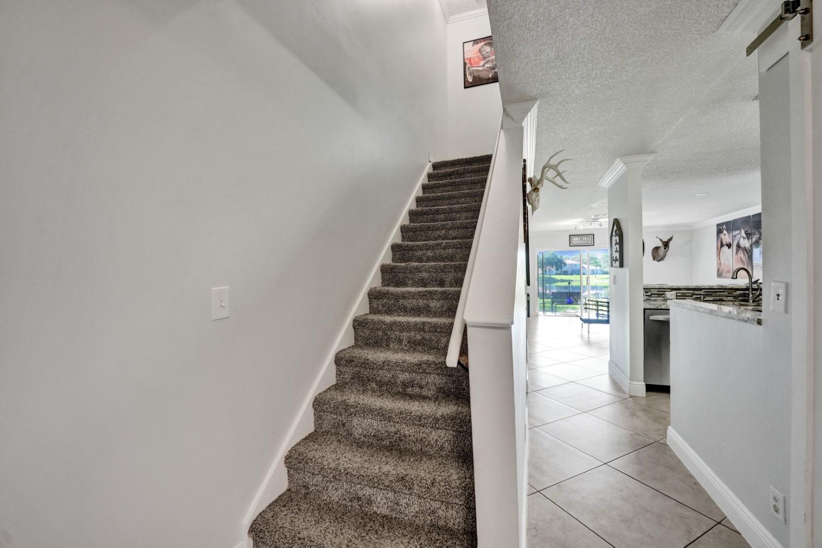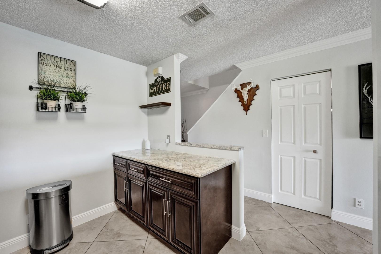 Stunning 3-bed, 2.5-bath townhouse, breathtaking lake views and new roof!! This beautifully remodeled home is FHA-friendly and perfect for modern living. The spacious kitchen boasts dark wood cabinets, granite countertops, stainless steel appliances, and more. The ground floor features large tile, with a convenient half bath. Barn doors lead to a versatile bedroom/den space. The open concept living and dining areas are ideal for entertaining. The master bath features a double-sink vanity and seamless shower doors. HO6 insurance so insurance is very low. Additional highlights include elegant custom blinds, crown molding, hurricane accordion shutters, and an impact-resistant front door. Pets are welcome! Don’t miss out on this gem.
